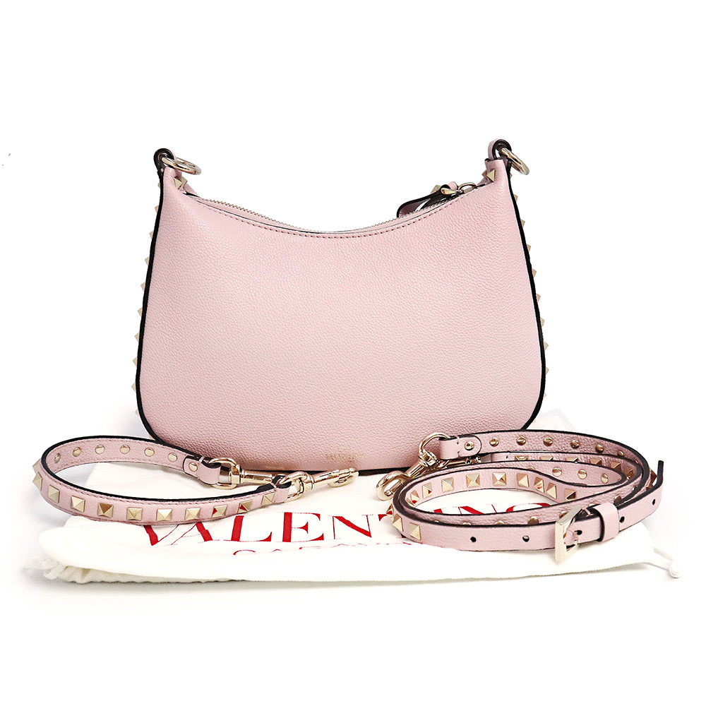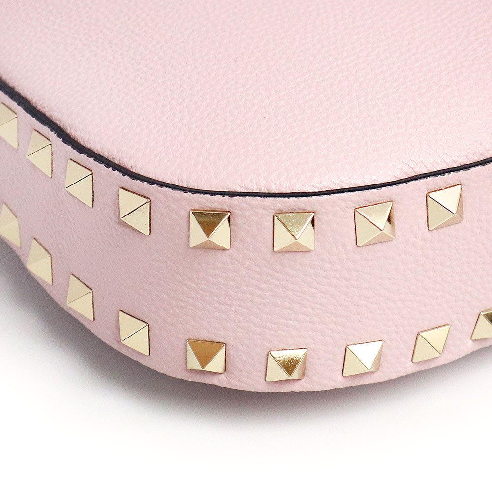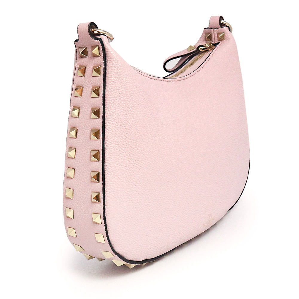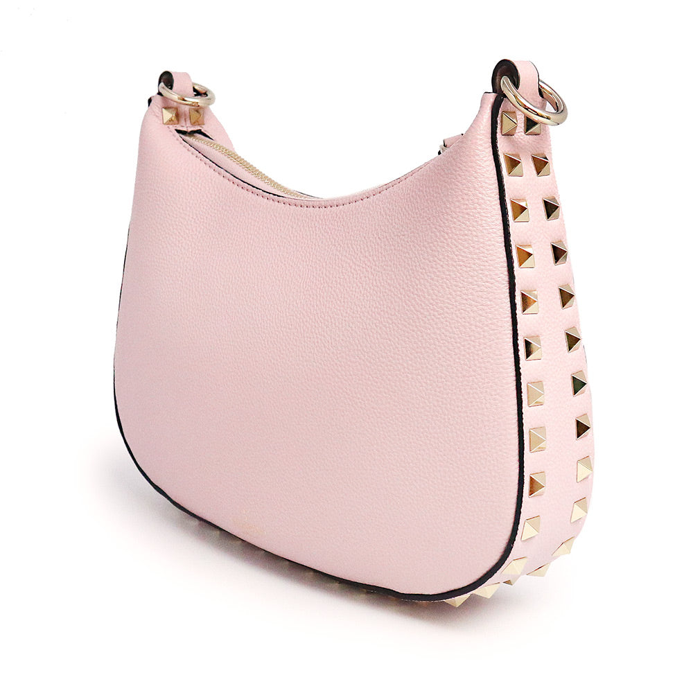【未使用 展示品】ヴァレンティノ ガラヴァーニ Valentino Garavani ロックスタッズ スモール ホーボー 2WAY ショルダー ハンドバッグ 斜め掛け グレインカーフレザー プードル ピンク ゴールド金具 4W2B0M37TAG