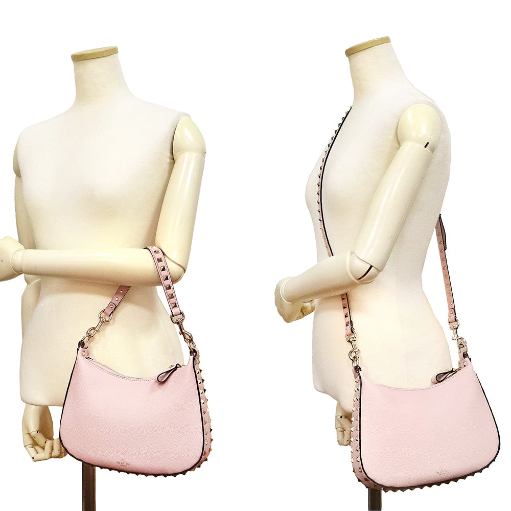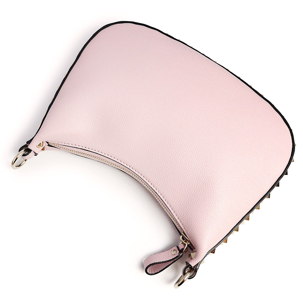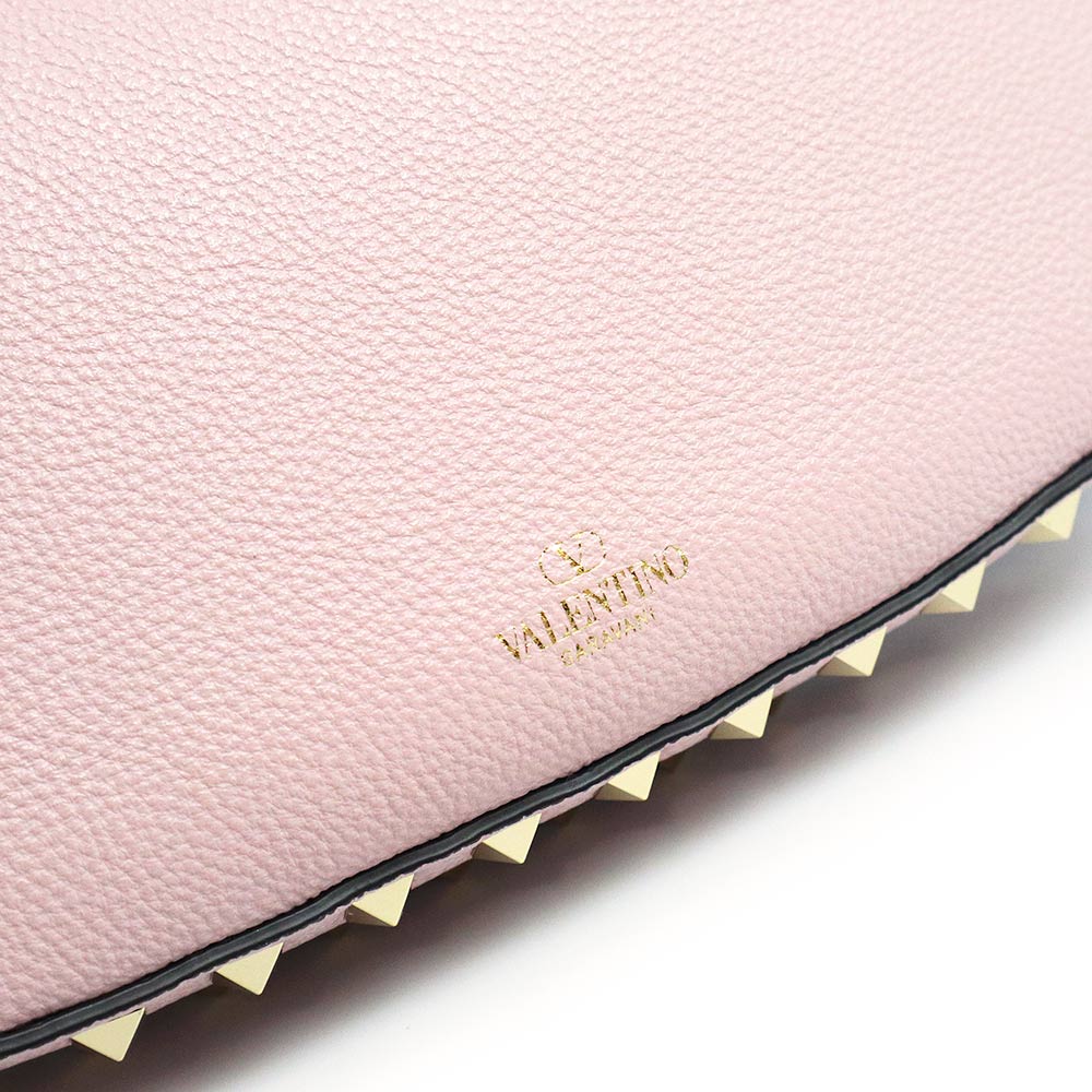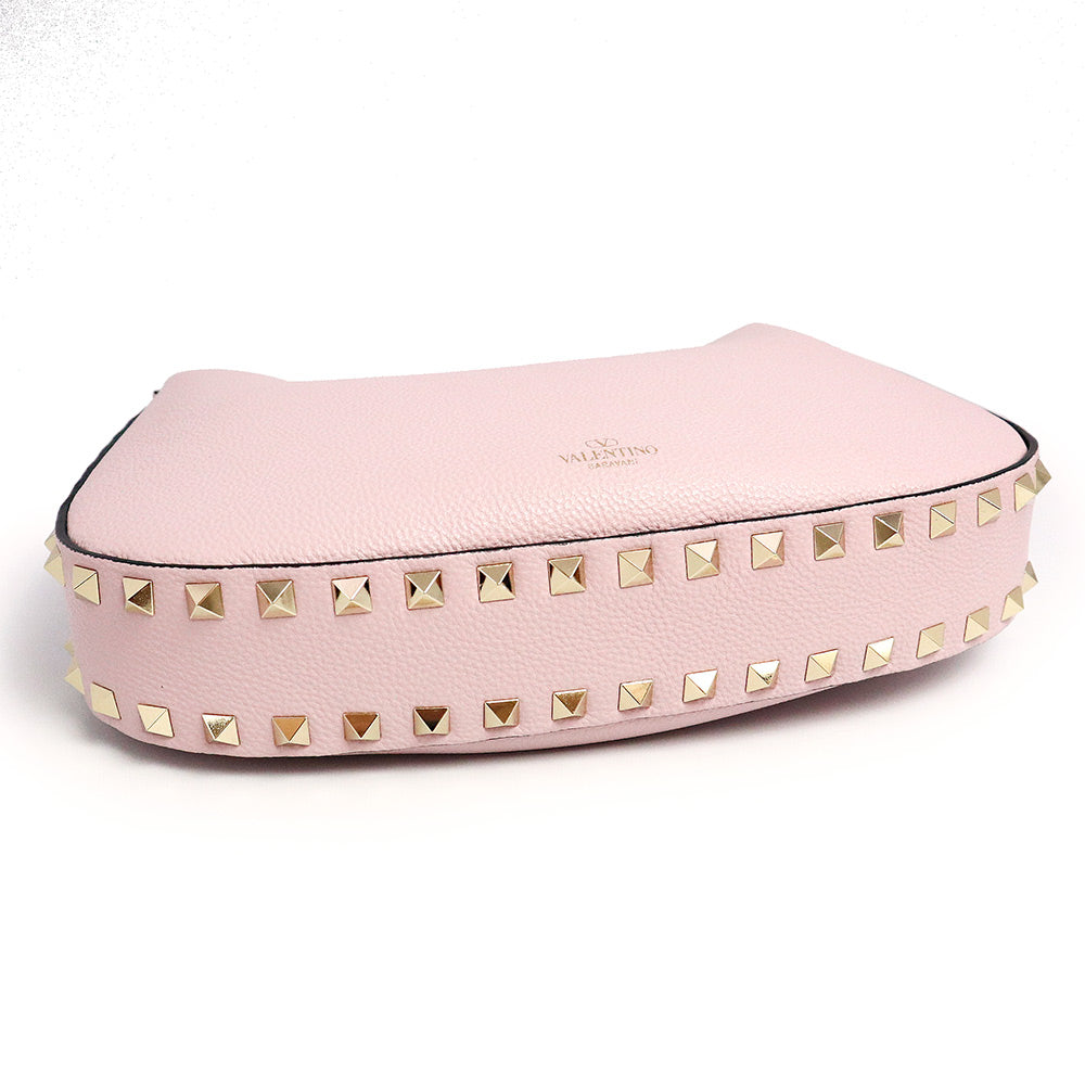 【未使用 展示品】ヴァレンティノ ガラヴァーニ Valentino Garavani ロックスタッズ スモール ホーボー 2WAY ショルダー ハンドバッグ 斜め掛け グレインカーフレザー プードル ピンク ゴールド金具 4W2B0M37TAG