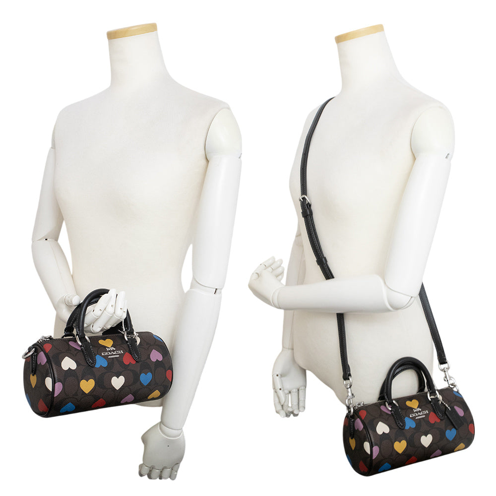 【未使用 展示品】コーチ COACH シグネチャー ハート 2Way 斜め掛け ショルダー ハンドバッグ コーティングキャンバス ブラウン ブラック マルチカラー シルバー金具 CO999SVN2R