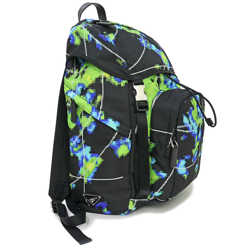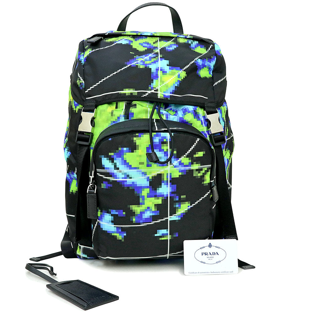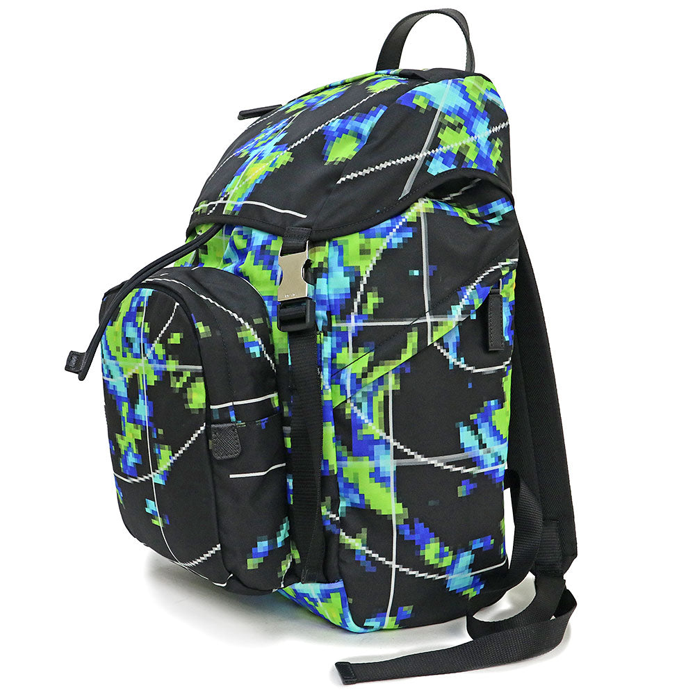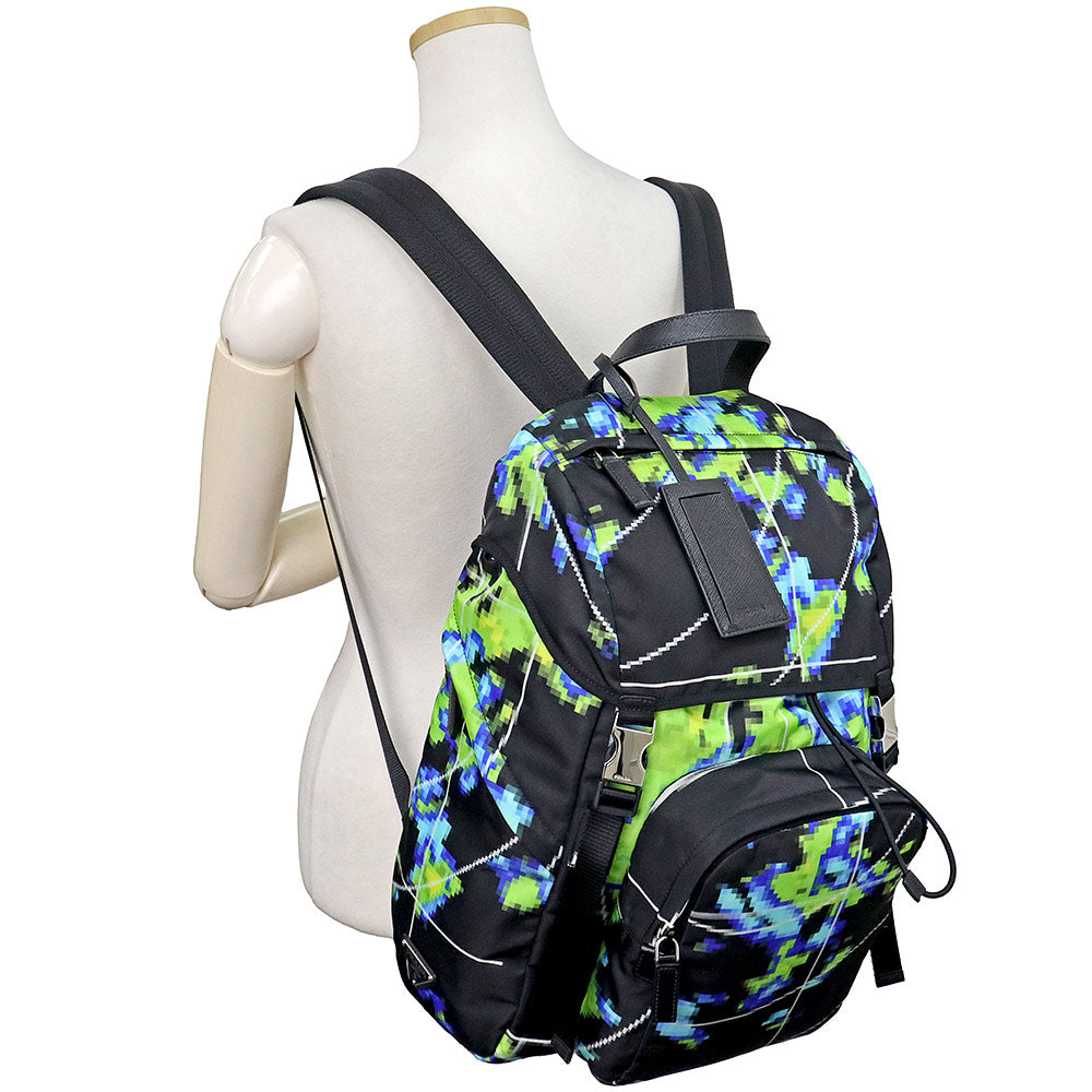 【未使用 展示品】プラダ PRADA ナイロン マルチカラー リュック デイパック バックパック TESSUTO RADAR ブルー グリーン ブラック シルバー金具 2VZ135