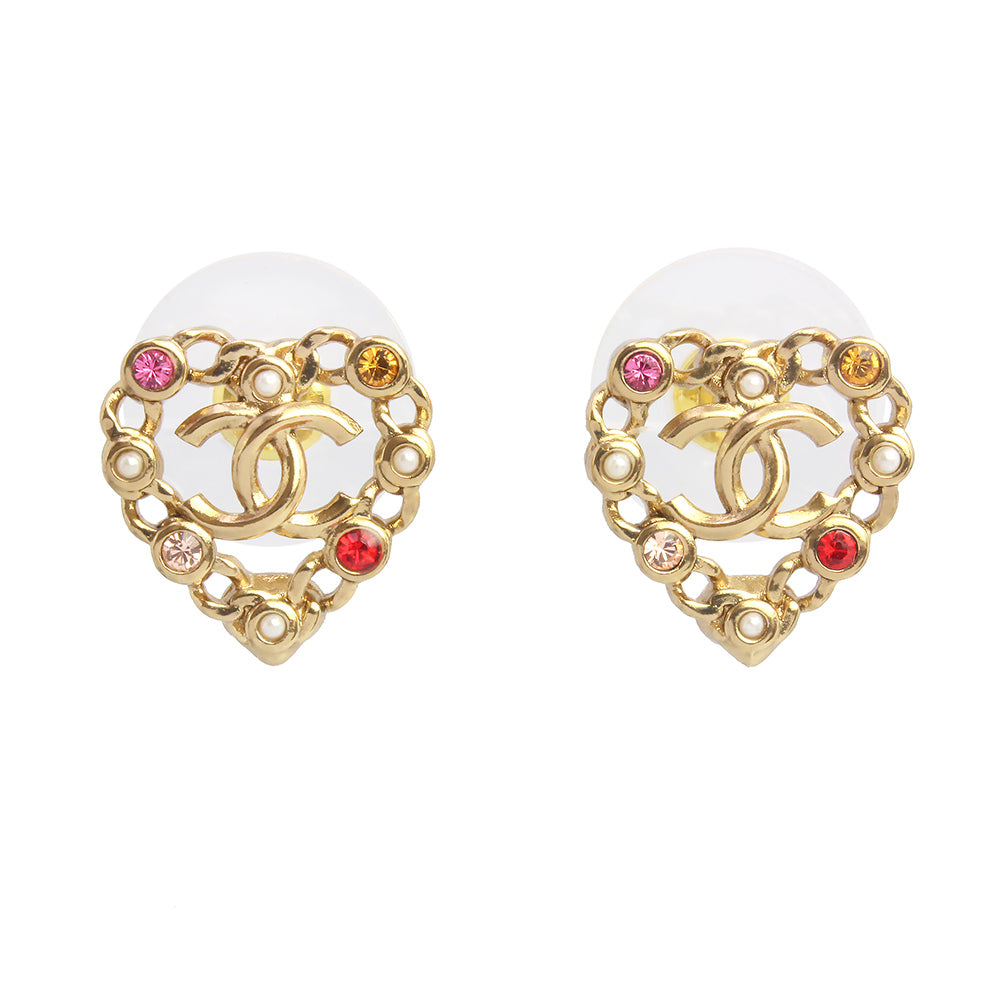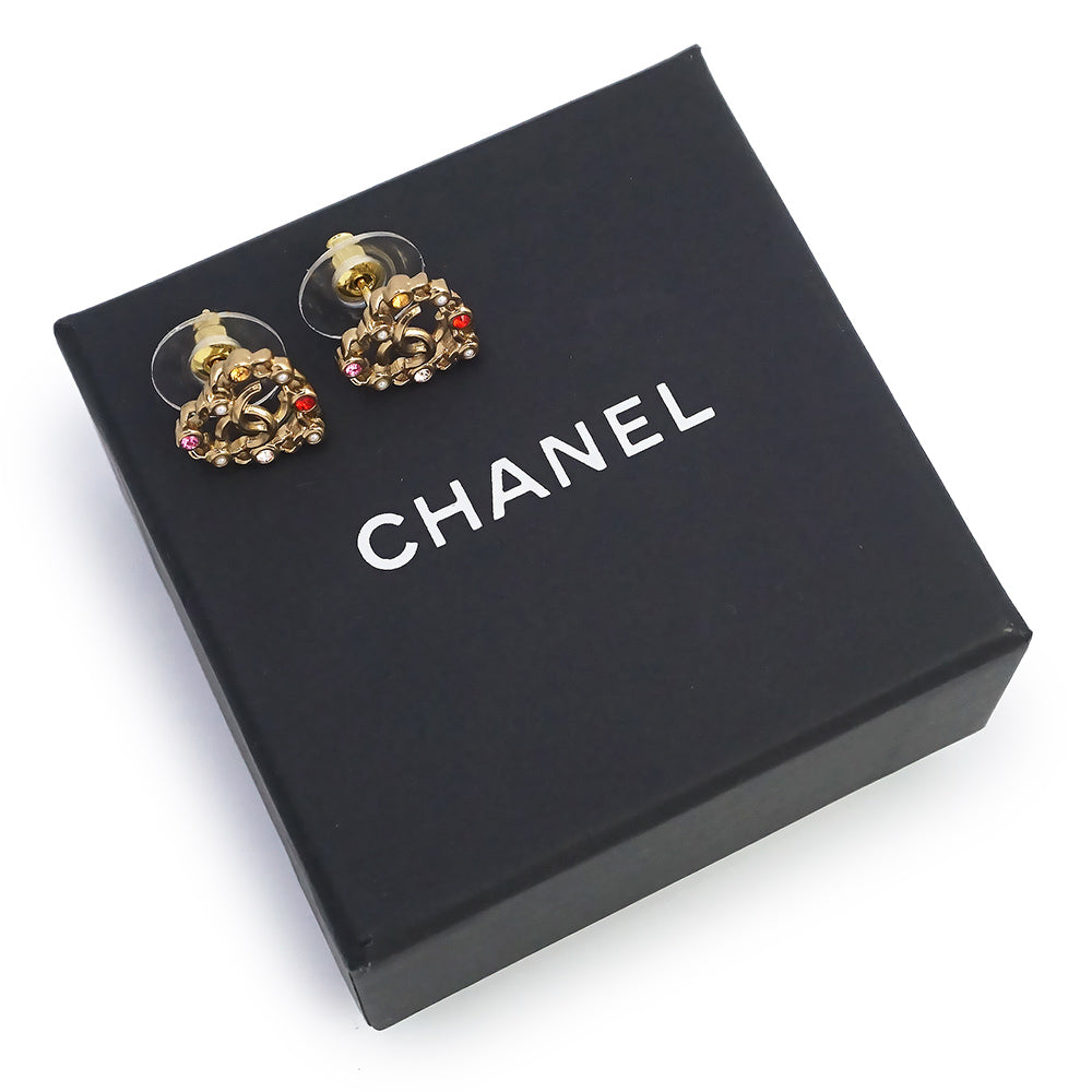 【新品・未使用品】CHANEL シャネル AB5894 ハート ココマーク パール ラインストーン シャンパンゴールド ピアス 箱付