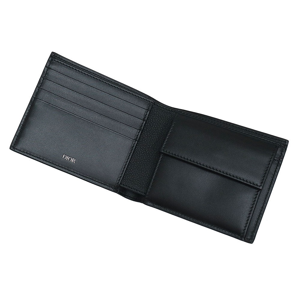 【新品・未使用品】クリスチャンディオール Christian Dior 2つ折りウォレット 二つ折り財布 ディオールグラビティレザー カーフスキン ブラック 黒 シルバー金具 2ESBC027FLG