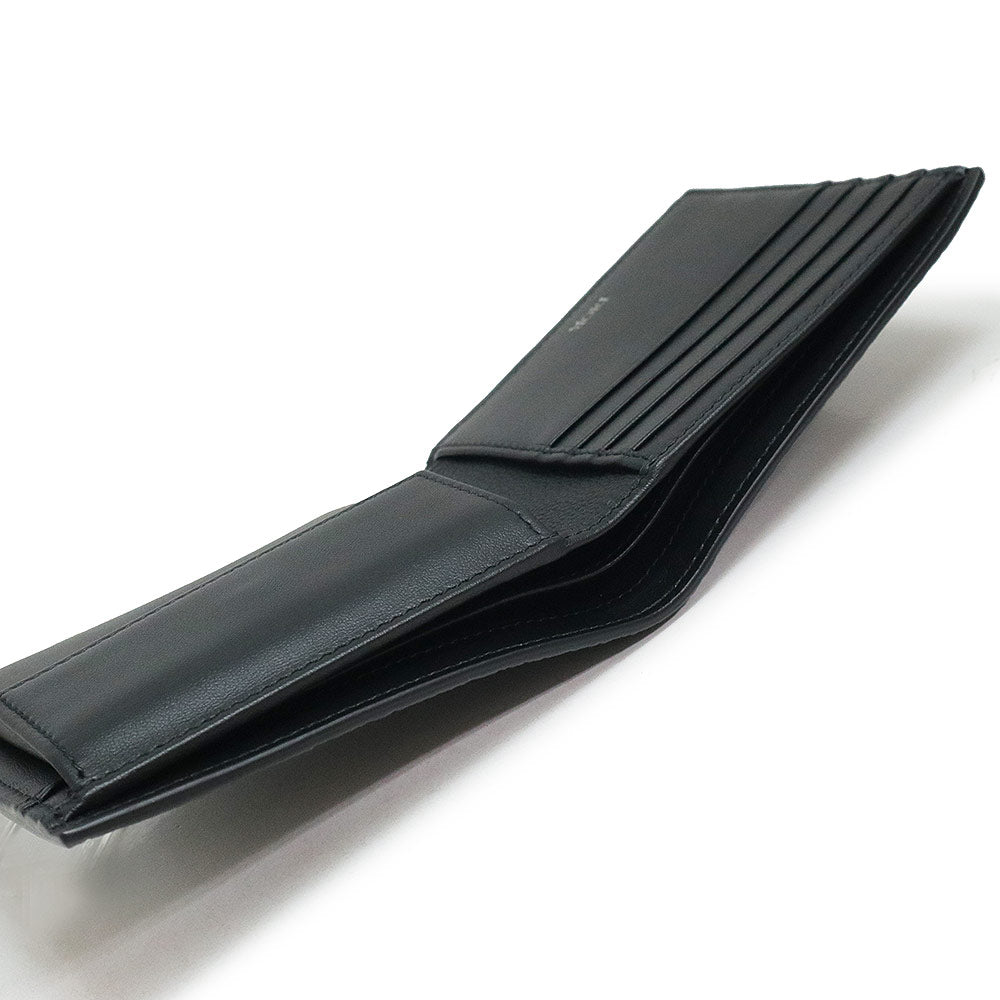 洗練されたデザインの2つ折りウォレット。メゾンのアトリエの卓越した技術を体現する「ディオール グラビティ」レザーが使用されています。ブラックのカーフスキンに繊細なエンボス加工で施された、アイコニックなモチーフが特徴。内側に紙幣用コンパートメント2つ、レシート用スリップポケット2つ、カードスロット4つ、スナップ仕様のコイン用のマチ付きコンパートメント1つを備えています。ポケットやバッグの中にすっきりと収まる2つ折りウォレットです。 |