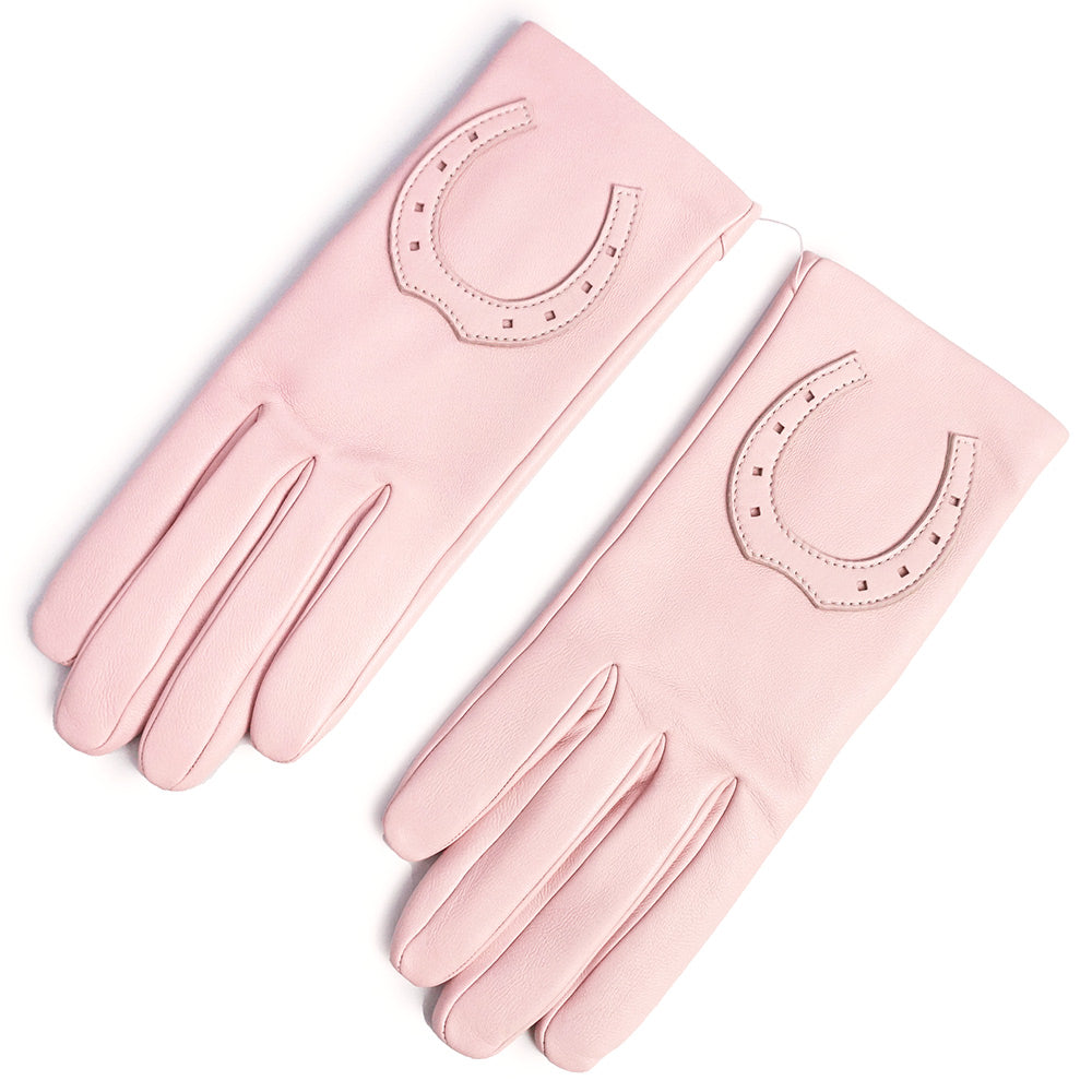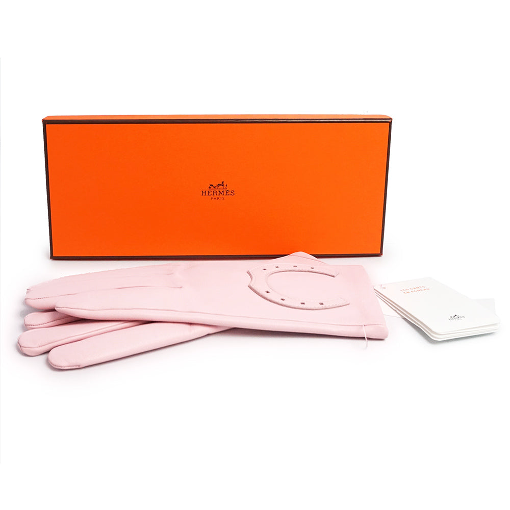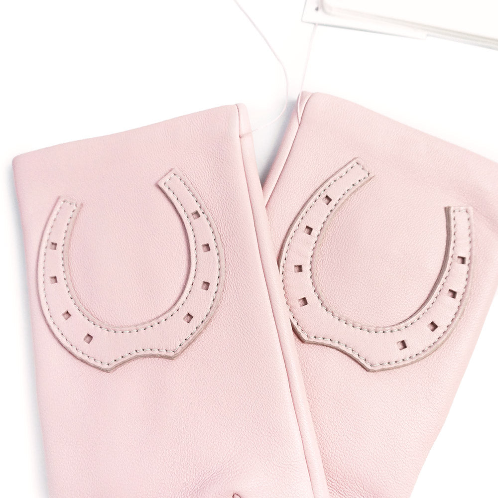 【未使用保管品】エルメス HERMES ホースシュー 馬蹄 蹄鉄 手袋 グローブ #7 ラムスキン レザー ピンク イニシャル入り 箱付