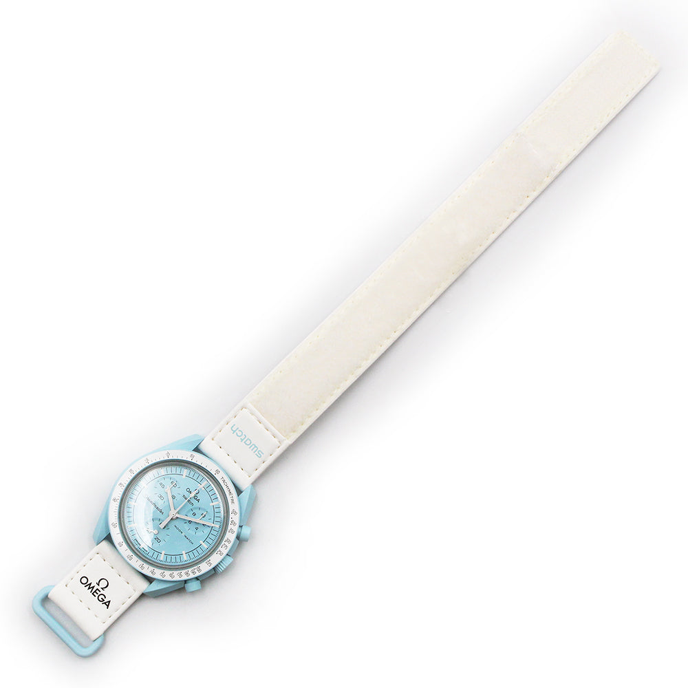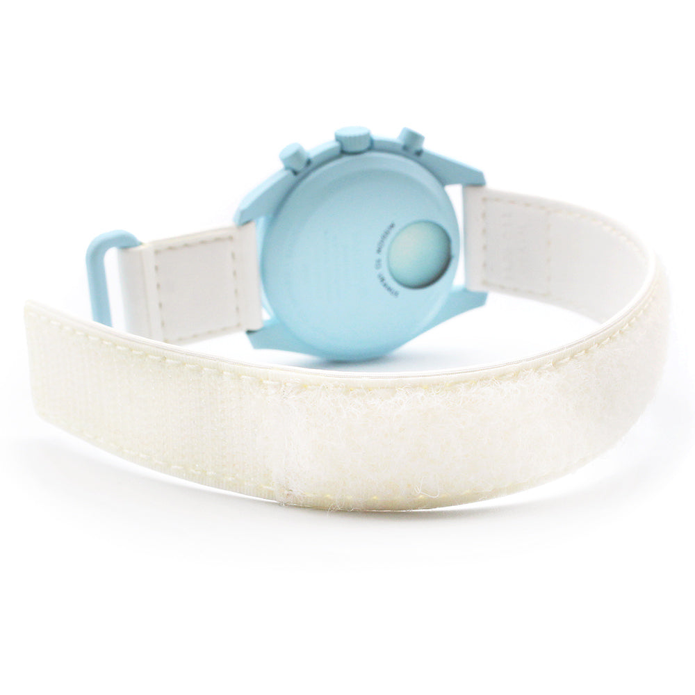 【未使用 展示品】オメガ OMEGA スウォッチ Swatch ミッション トゥ ウラヌス MISSION TO URANUS スピードマスター ムーンスウォッチ クオーツ 腕時計 ナイロン バイオセラミック パステルブルー ホワイト SO33L100 箱付