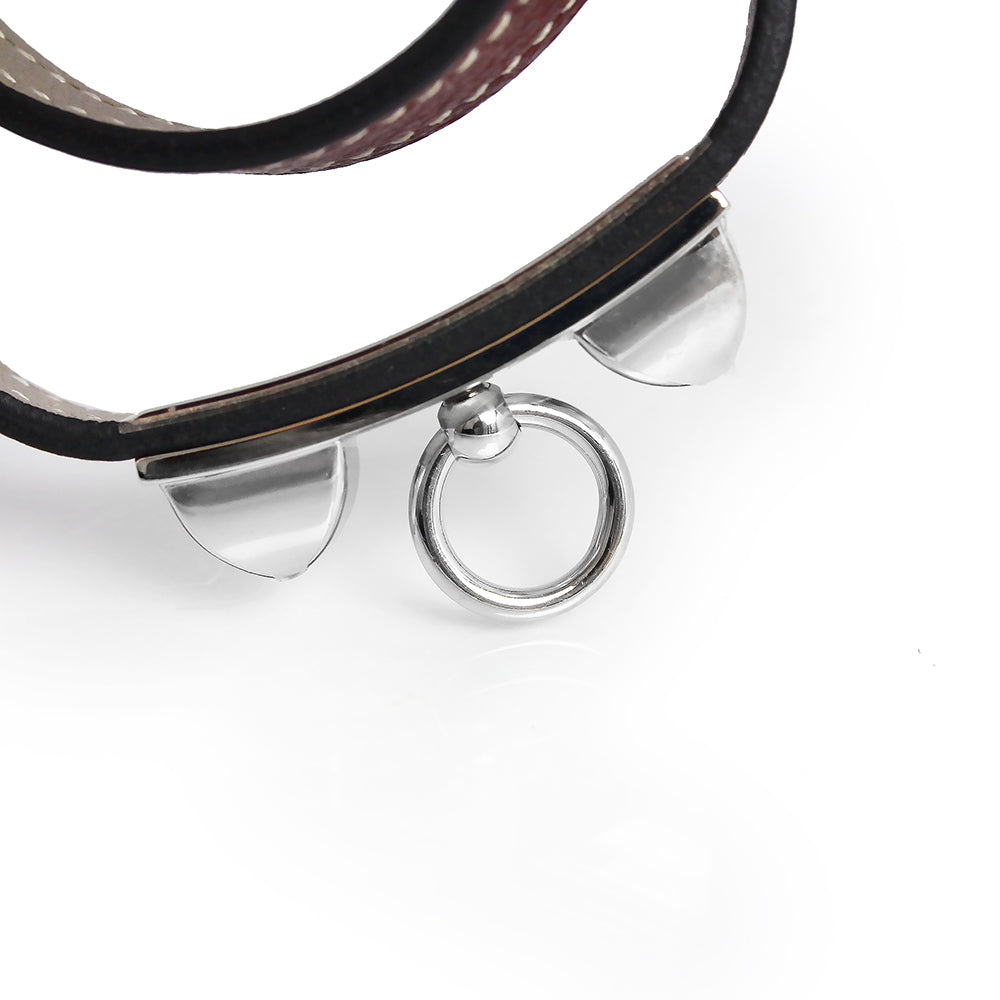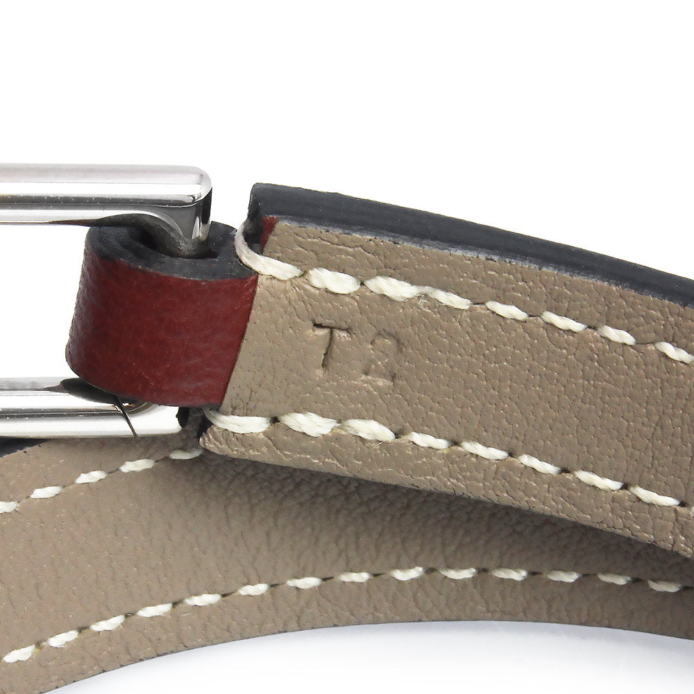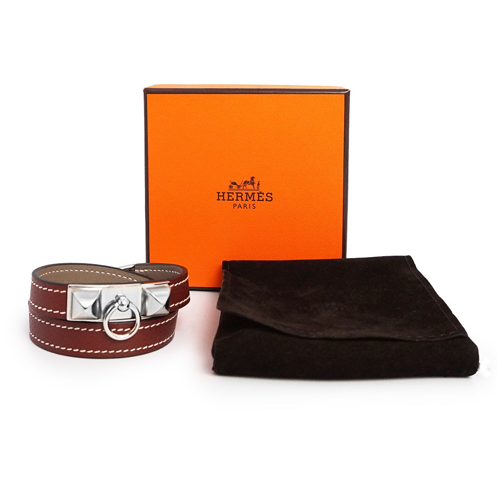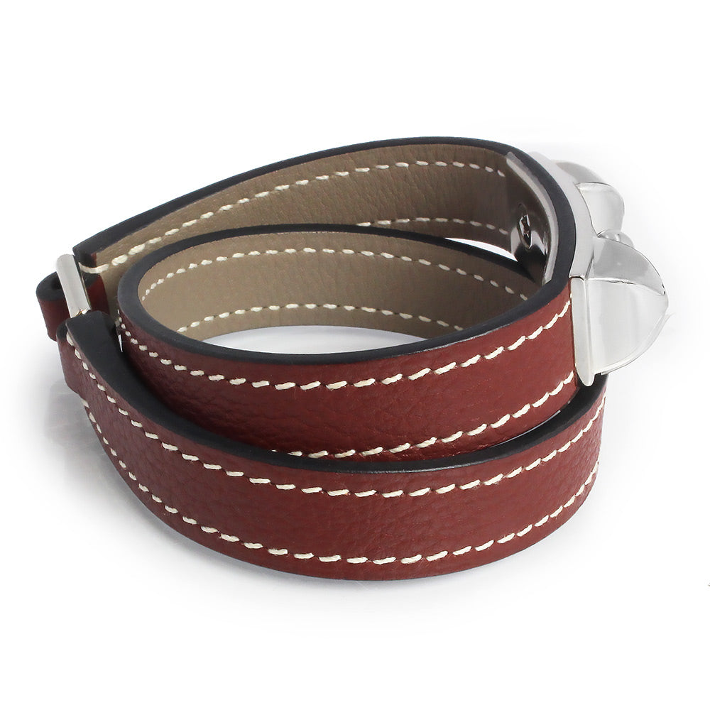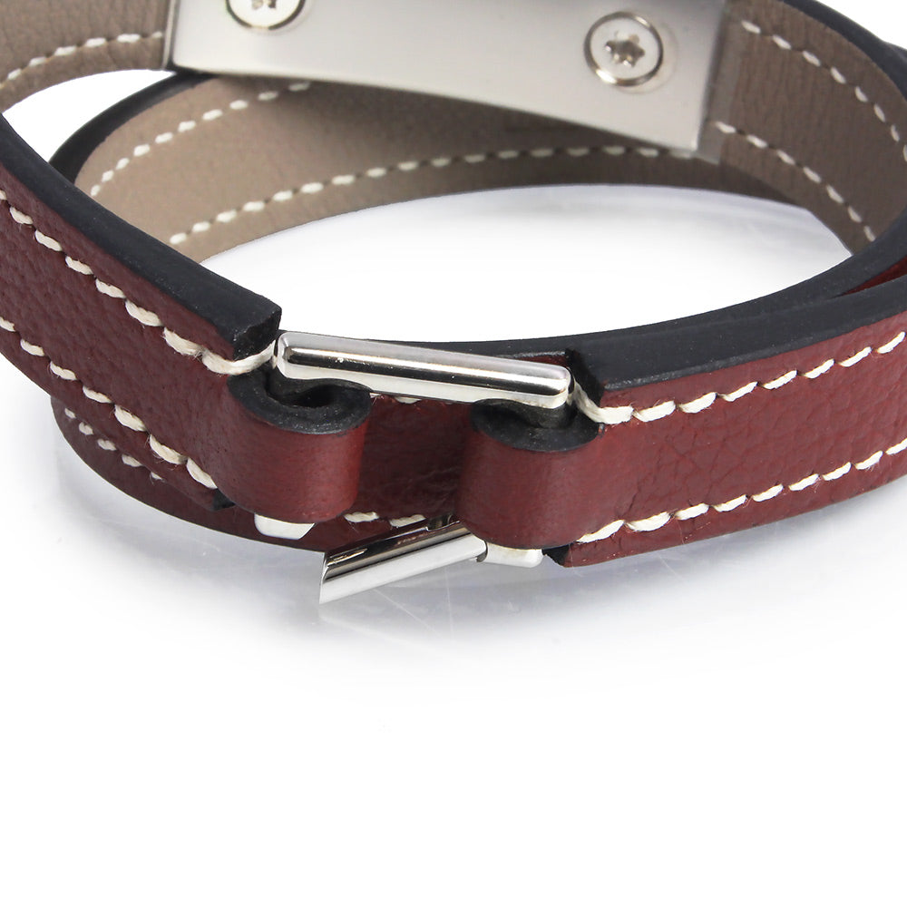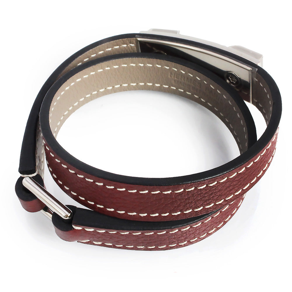 【未使用 展示品】エルメス HERMES リヴァル ドゥブルトゥール スタッズ 2連 ブレスレット T2 ヴォーエバーカラー ヴォースイフト レザー ルージュアッシュ ボルドー シルバー金具 C刻印 箱付