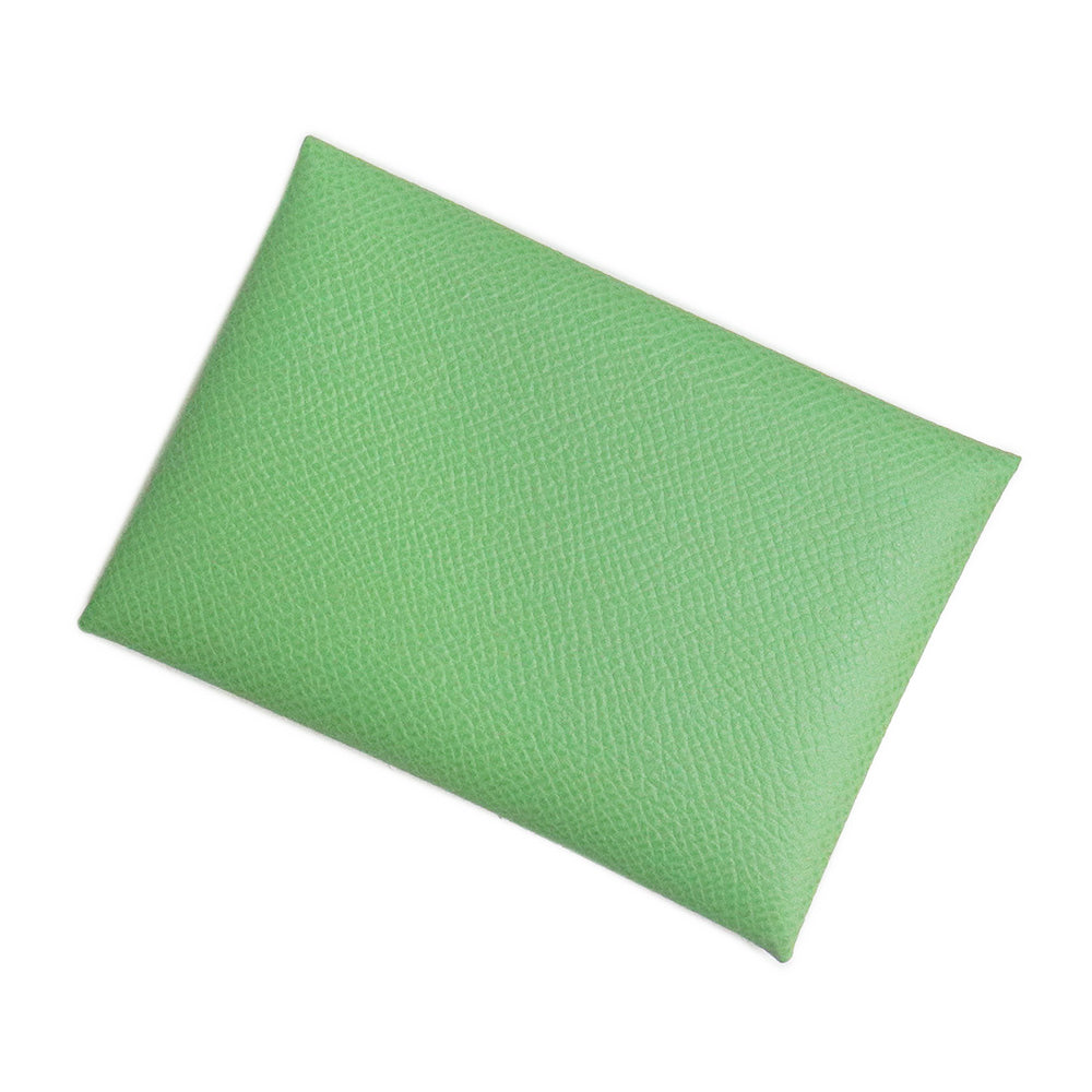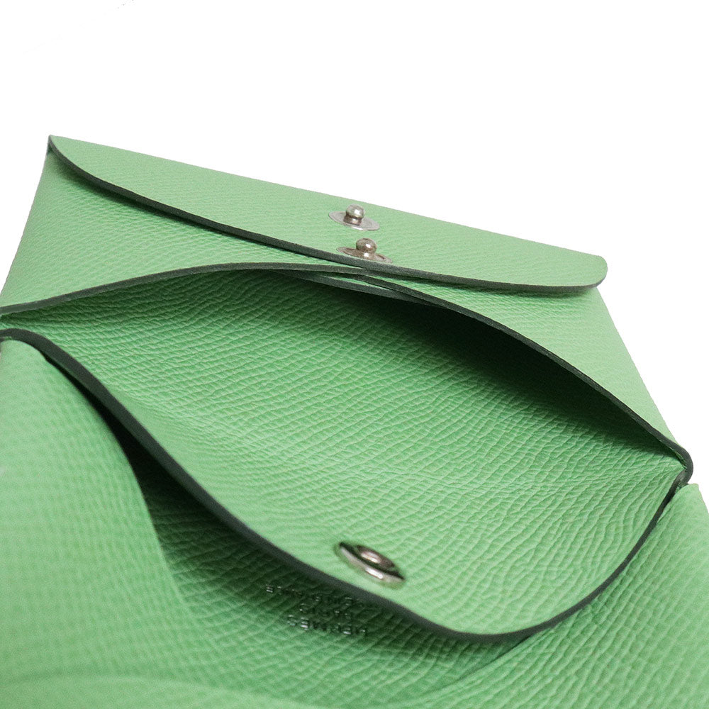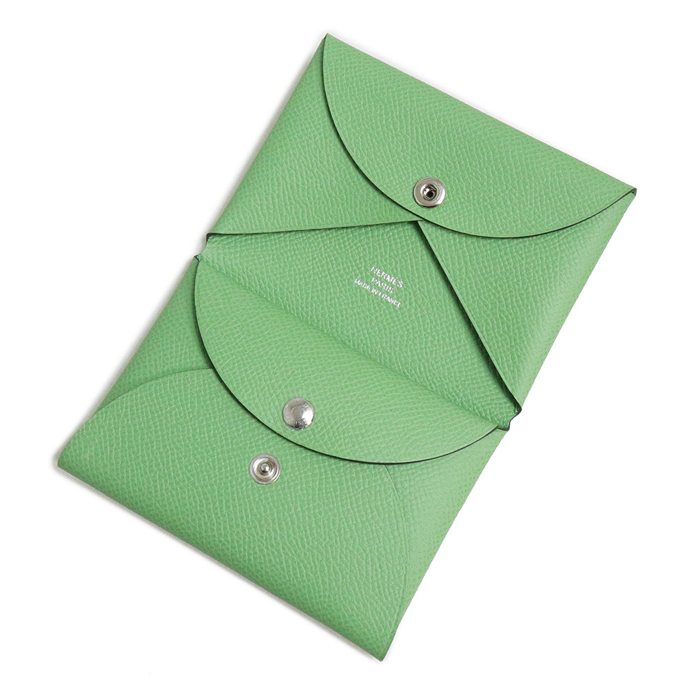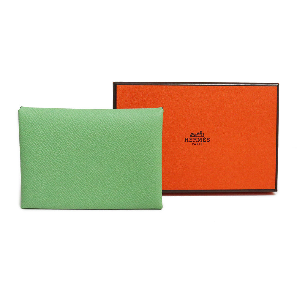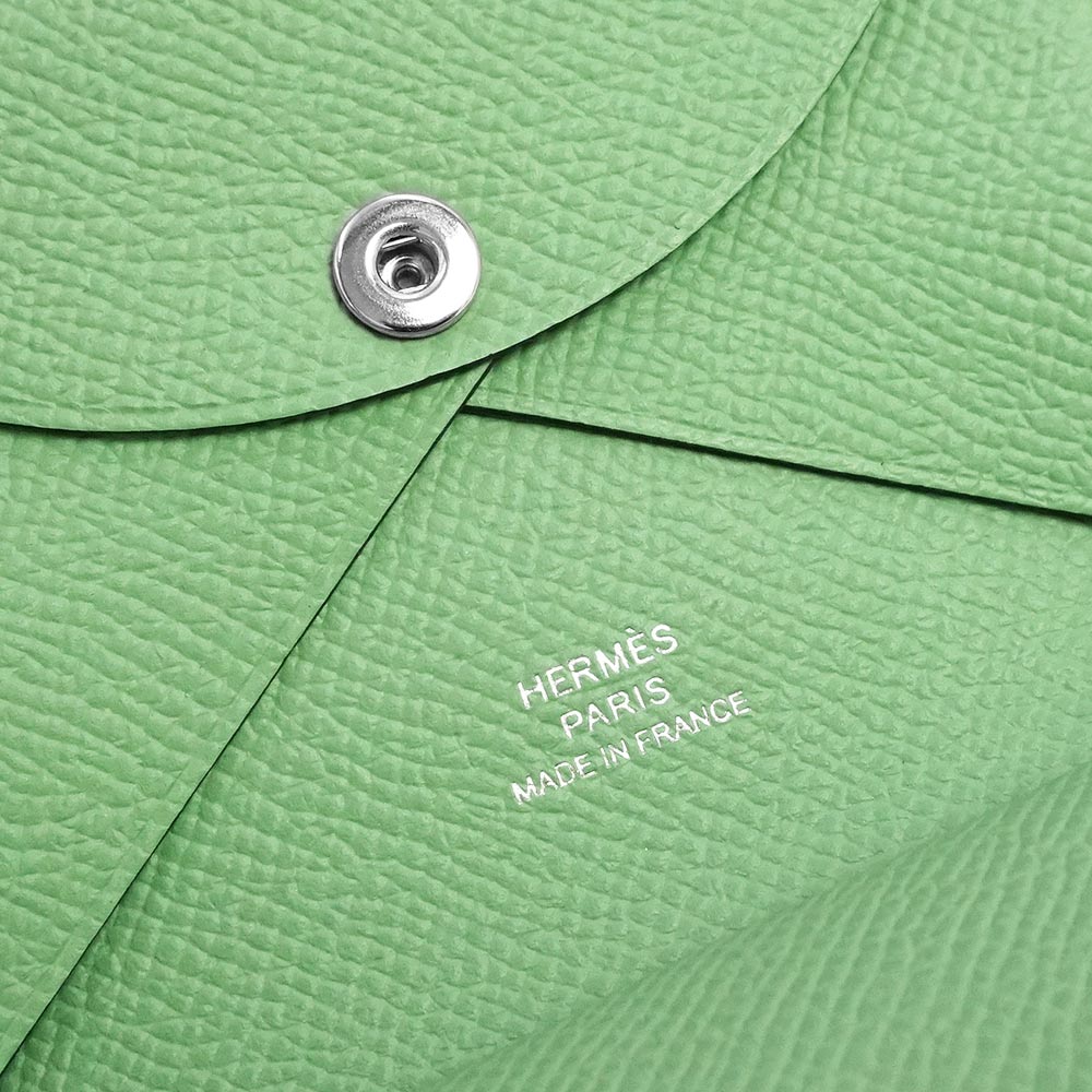 【新品・未使用品】エルメス HERMES カルヴィ デュオ コンパクト カードケース パスケース コインケース 名刺入れ 定期入れ 小銭入れ 財布 ヴォーエプソン レザー ヴェールクリケット ライトグリーン シルバー金具 B刻印 箱付