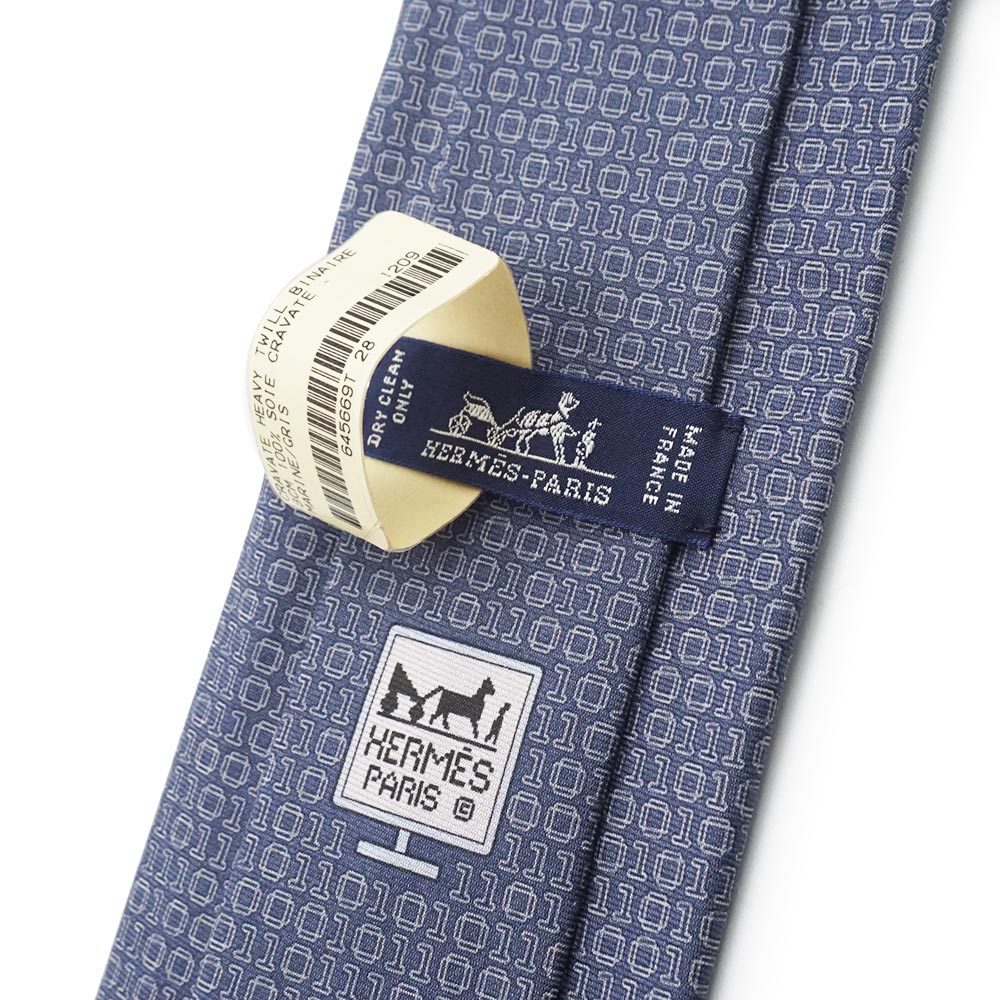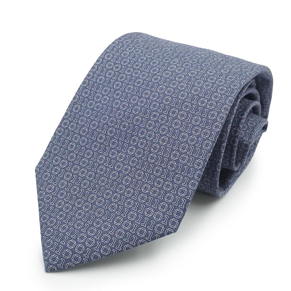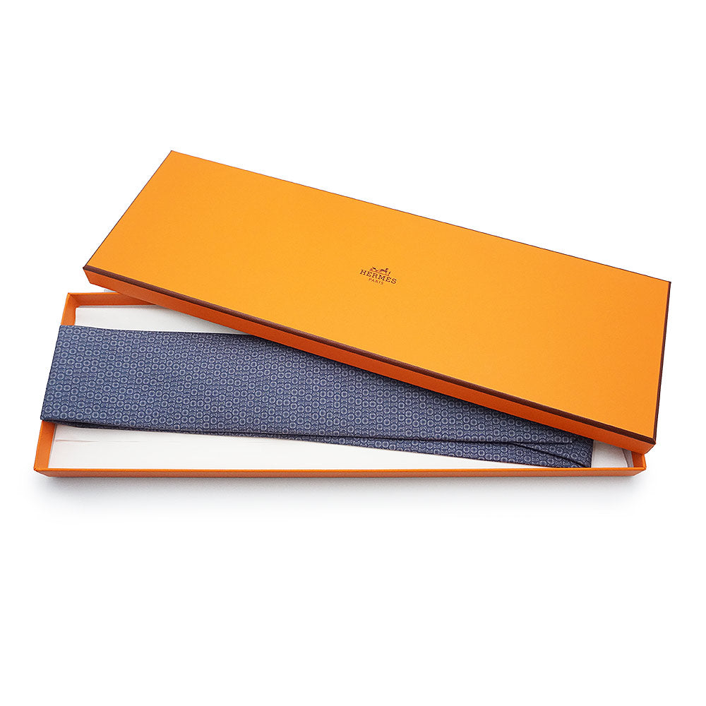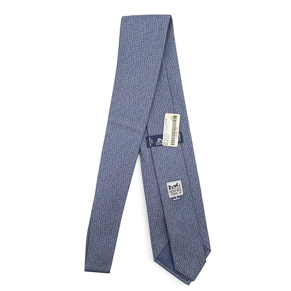 【新品・未使用品】エルメス HERMES BINAIRE ネクタイ 8CM シルク100% マリン マリーヌ グリ ブルー グレー 箱付