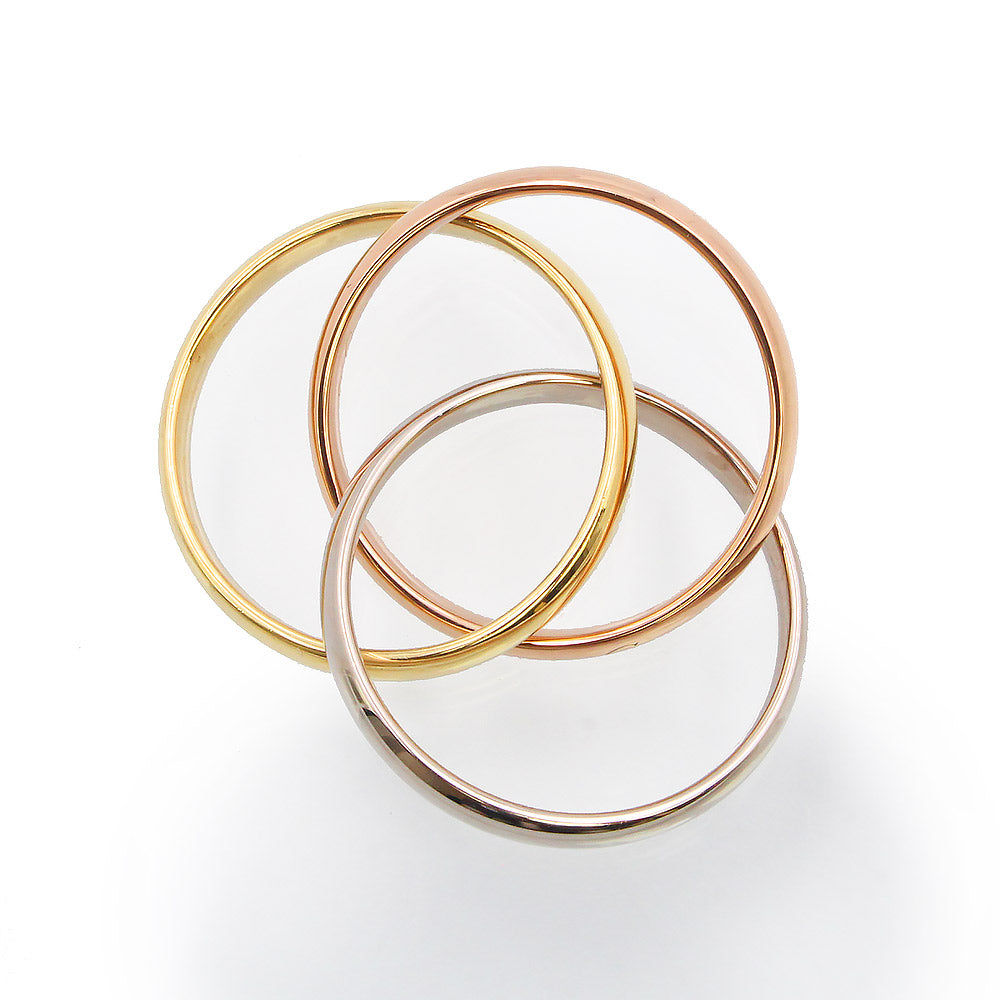 定番人気トリニティ3連リング。シンプルで上品なデザインで、3色のゴールドが輝き、華やかなお手元を演出します。愛情・友情・忠誠を表す3色のリングが躍動し、身につける人それぞれが自由に解釈できるジュエリーです。