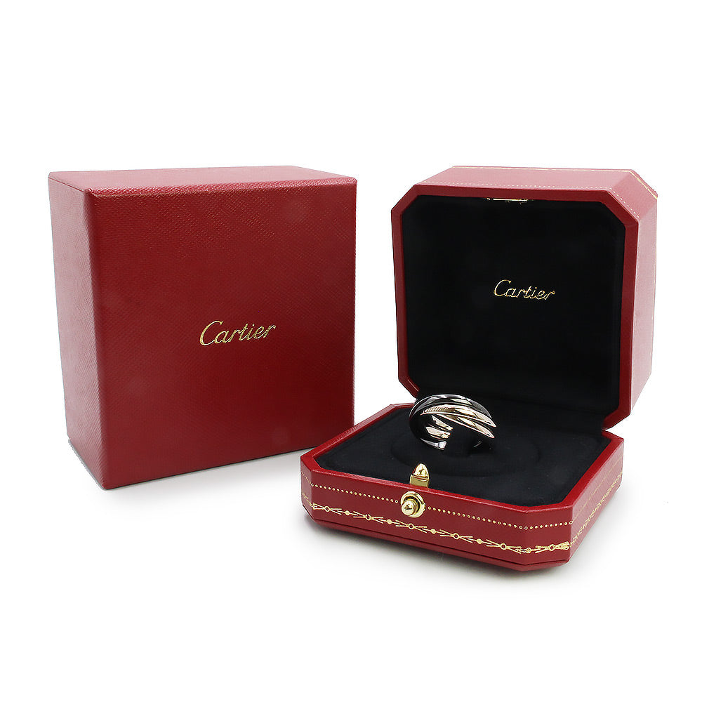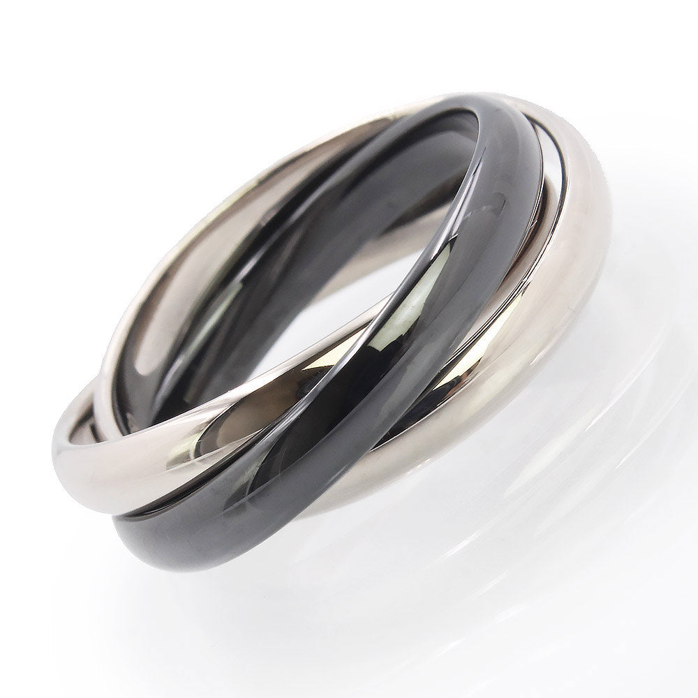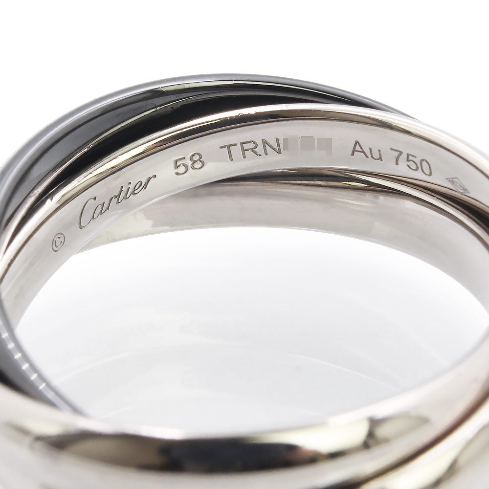 【美品】カルティエ Cartier トリニティ クラシックモデル 3連 リング 指輪 #18 8号 K18WG 750 ブラックセラミック ホワイトゴールド B4234100 箱付