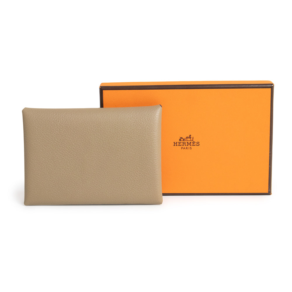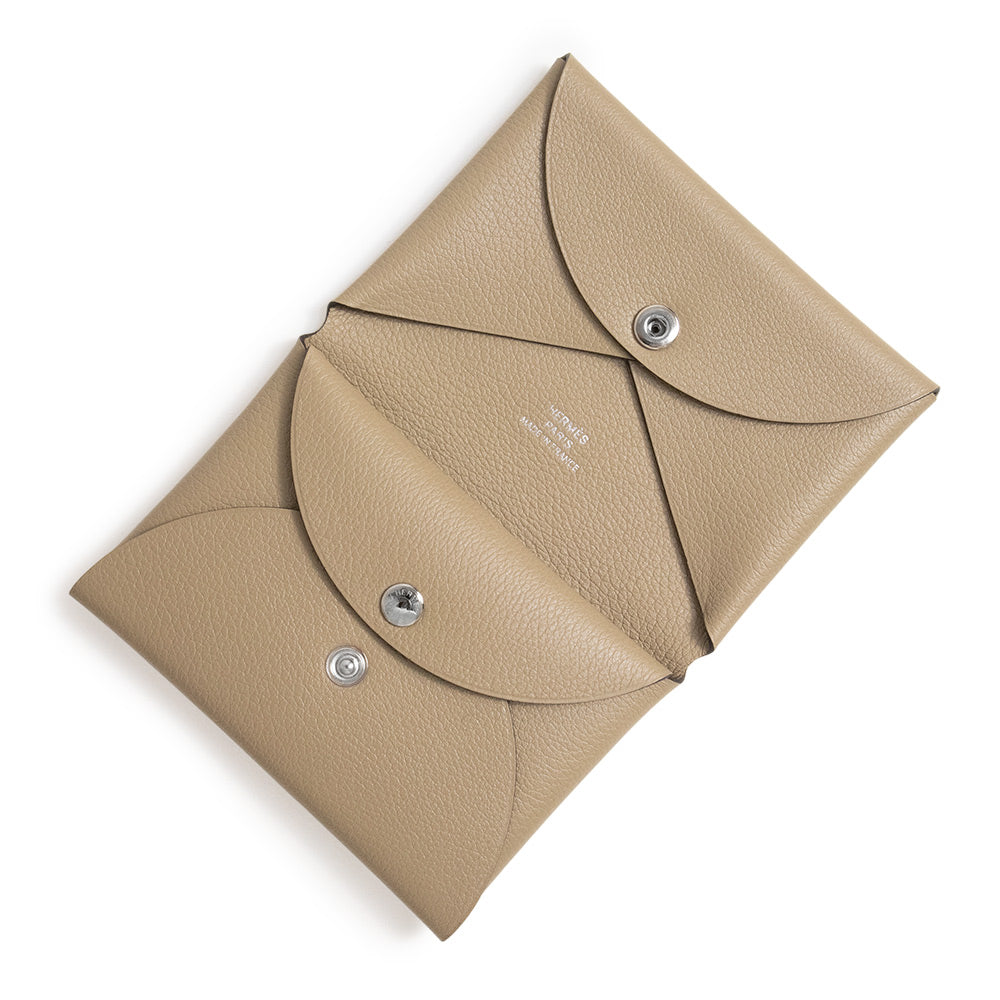 コンパクトなシルエットが特徴のエルメスのカードケース「カルヴィ デュオ」。片側にはコインケース用のポケットを備えた機能的なデザインが魅力です。
