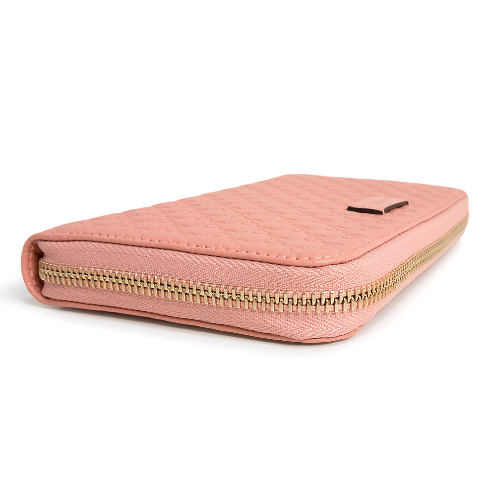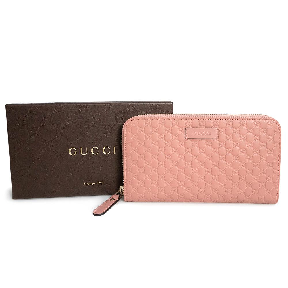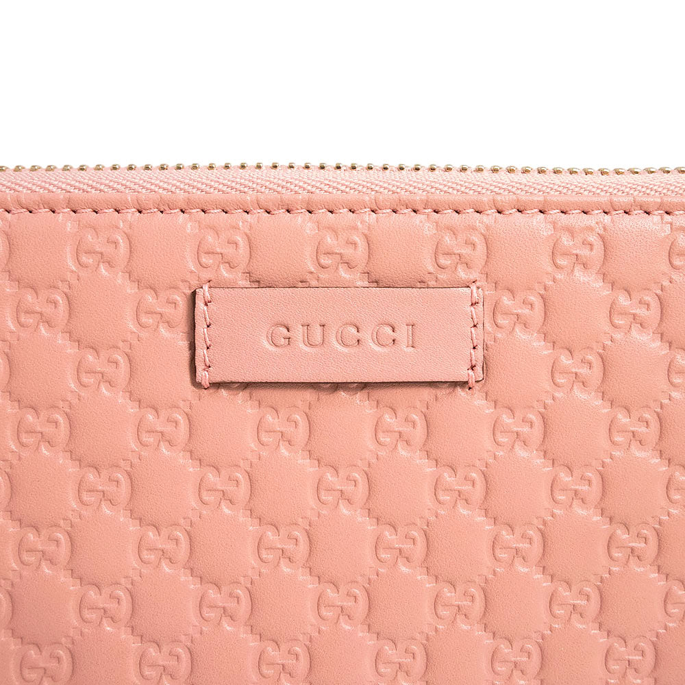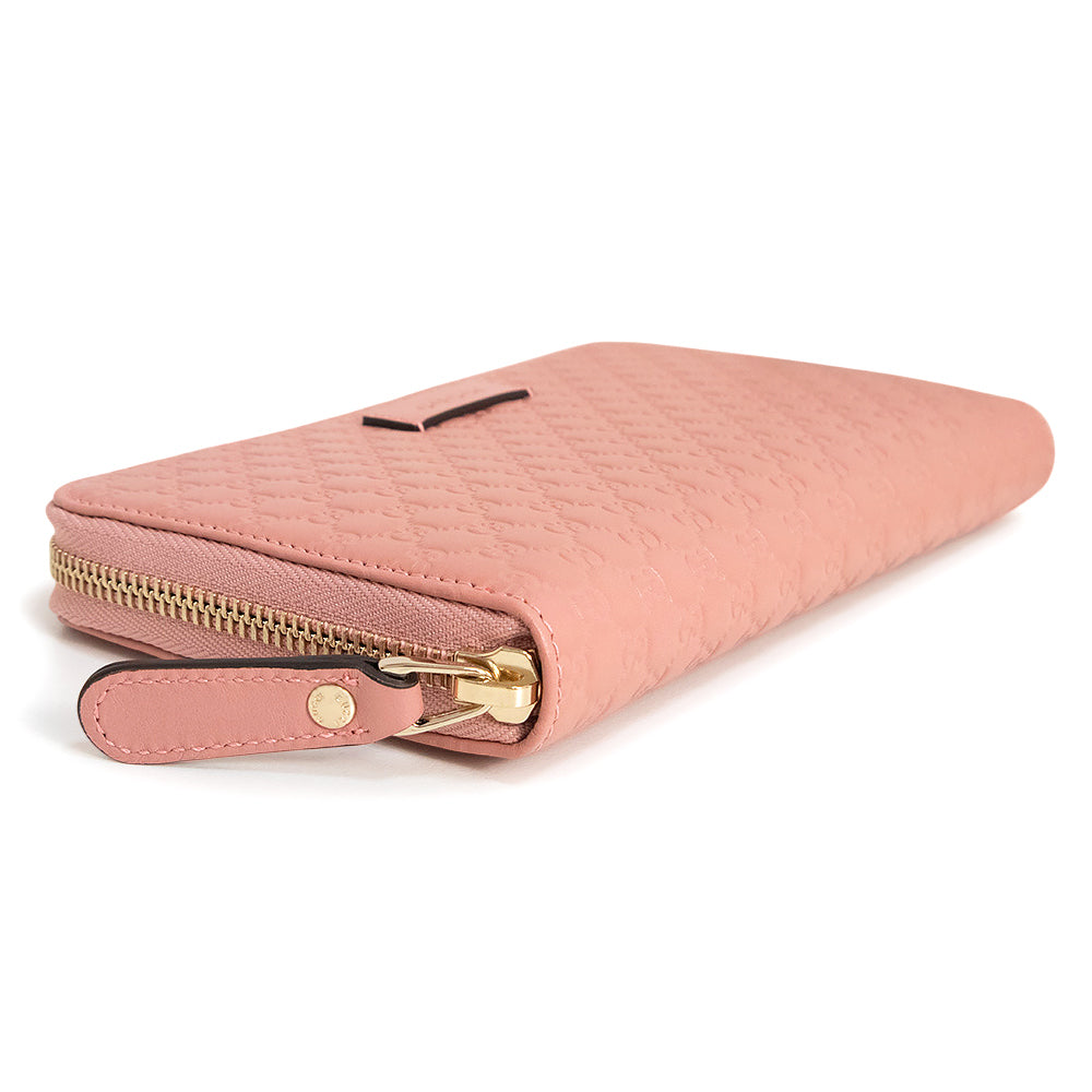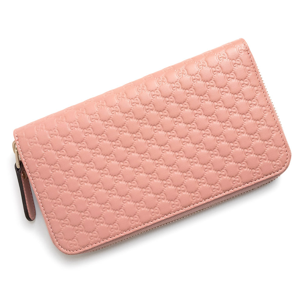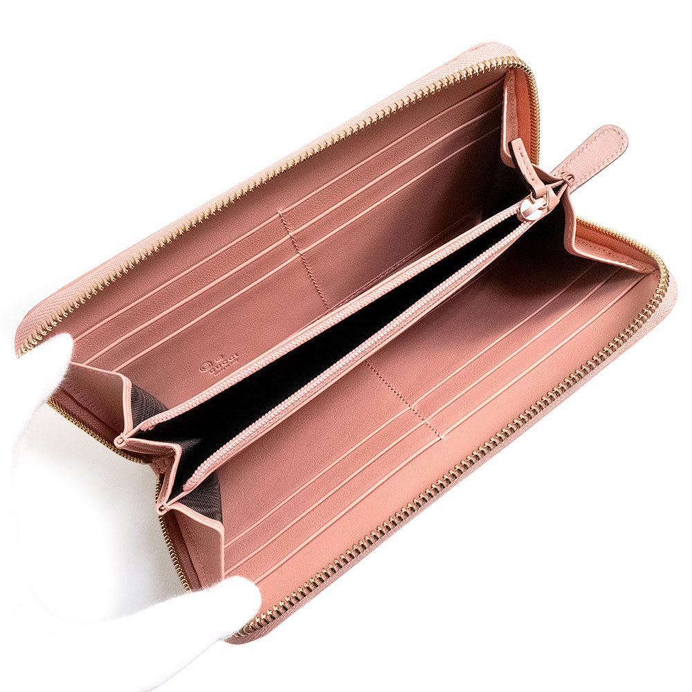 【新品・未使用品】グッチ GUCCI シグネチャー ラウンドファスナー ジップ 長財布 マイクログッチシマレザー ピンク ゴールド金具 449391 箱付