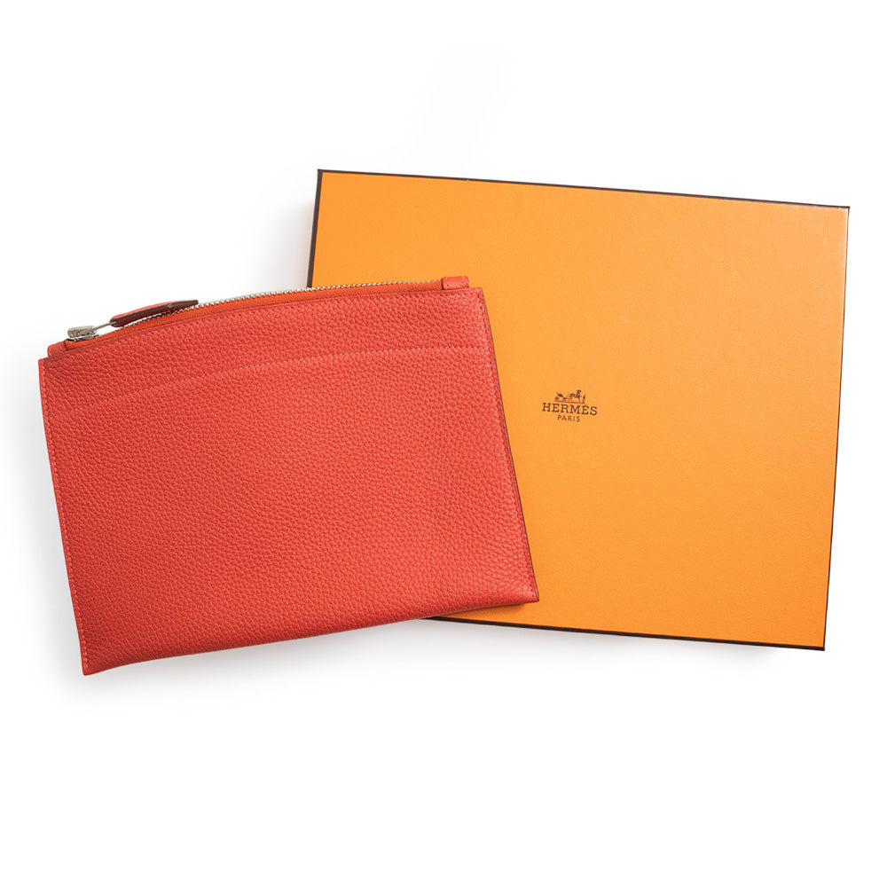 【未使用保管品】エルメス HERMES バザール ミニ マルチ フラットポーチ トゴ レザー ルージュ ピヴォワンヌ レッド シルバー金具 □R刻印