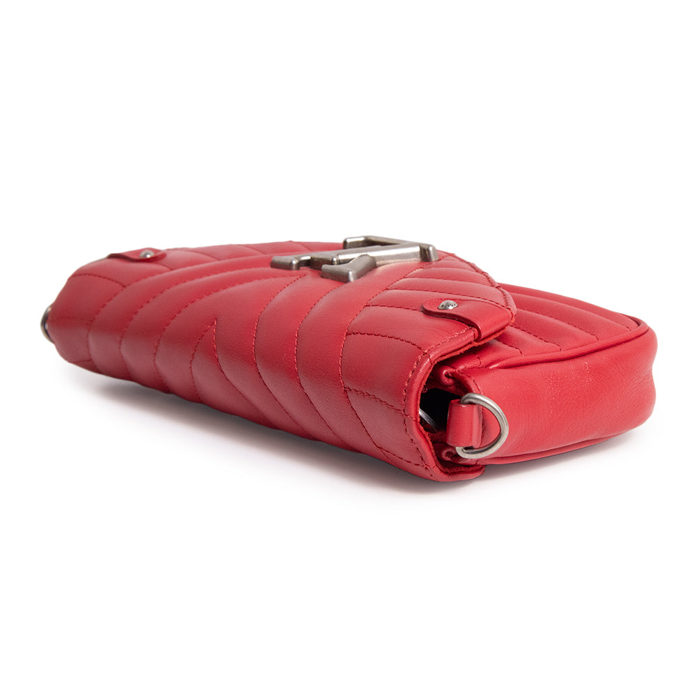 【美品】LOUIS VUITTON ルイ ヴィトン M63956 ニューウェーブ ポシェット スムースカーフレザー レッド チェーンウォレット 斜め掛け 財布 アンティークシルバー金具