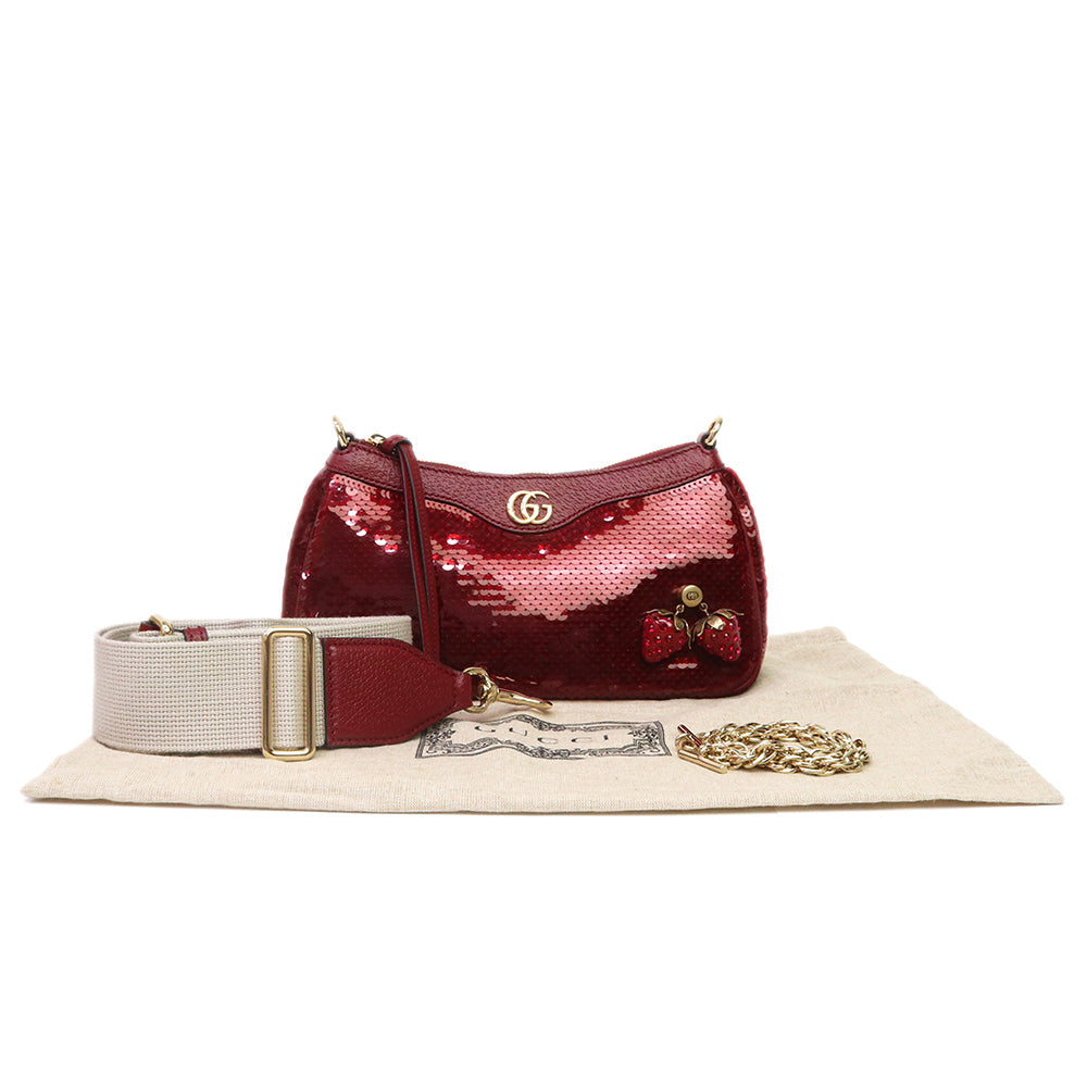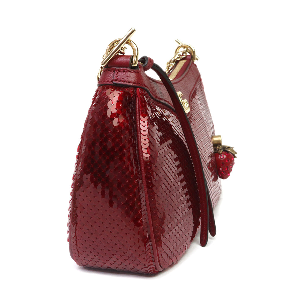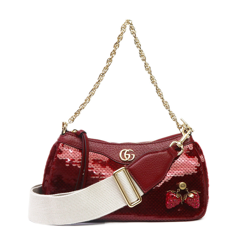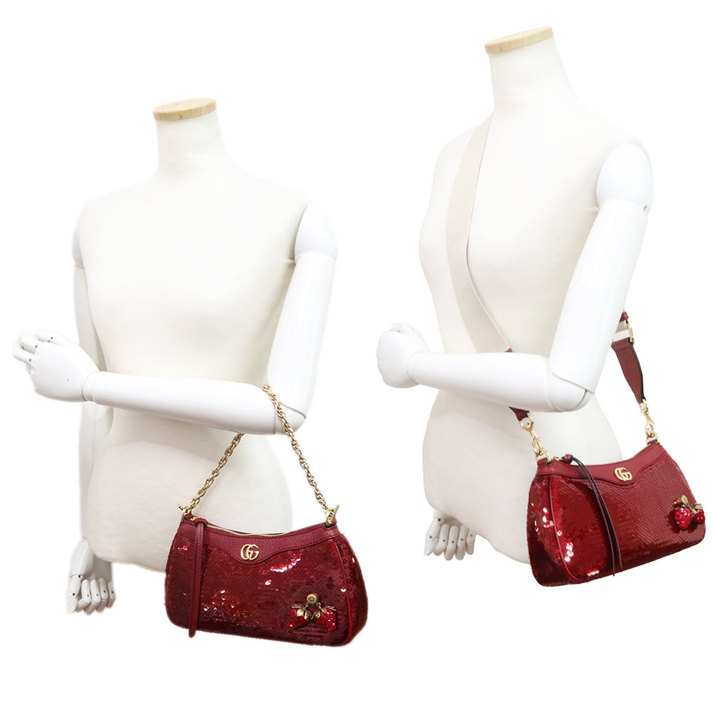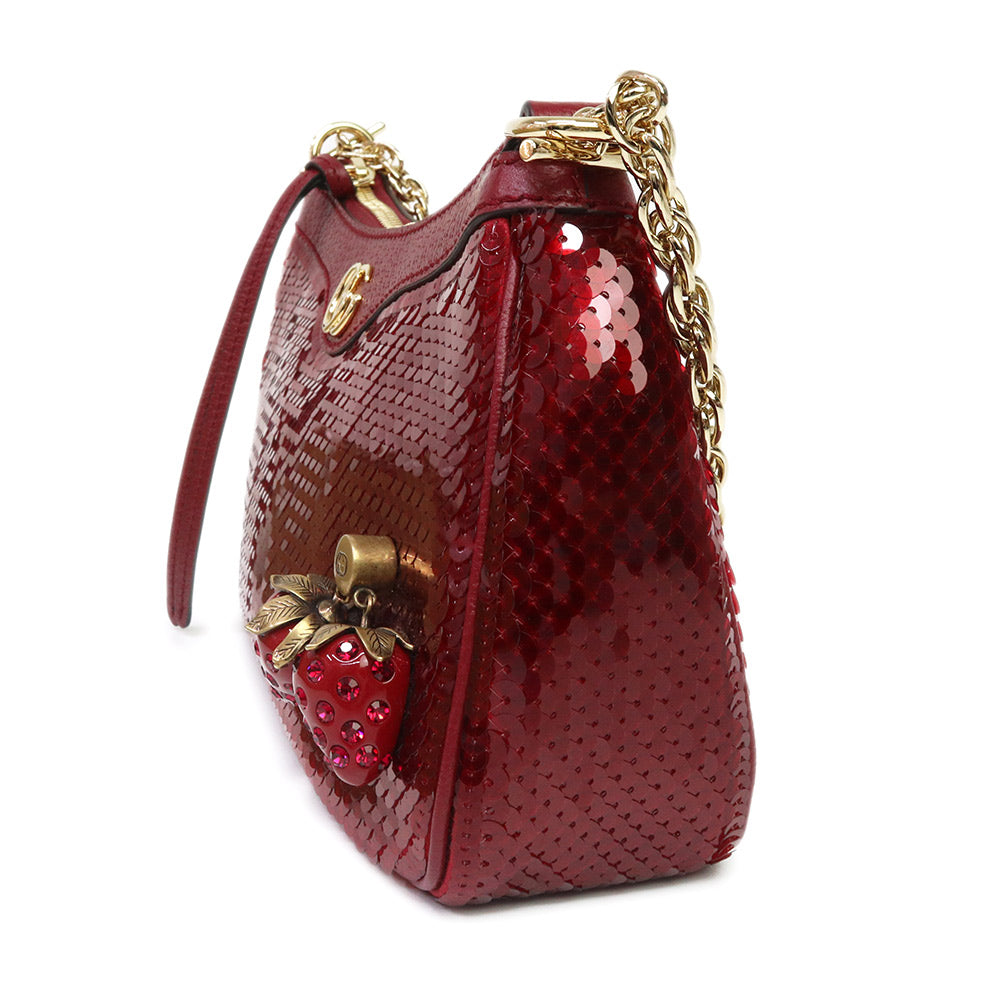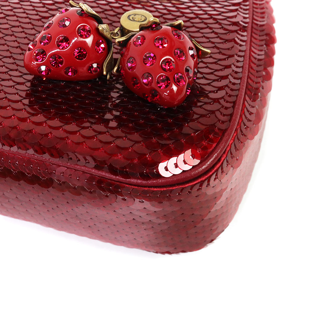 【新品・未使用品】GUCCI グッチ 735132 オフィディア スモール 2WAY ストロベリー 苺 スパンコール レザー レッド チェーン ショルダーハンドバッグ 斜め掛け ヴィンテージゴールド金具 735132