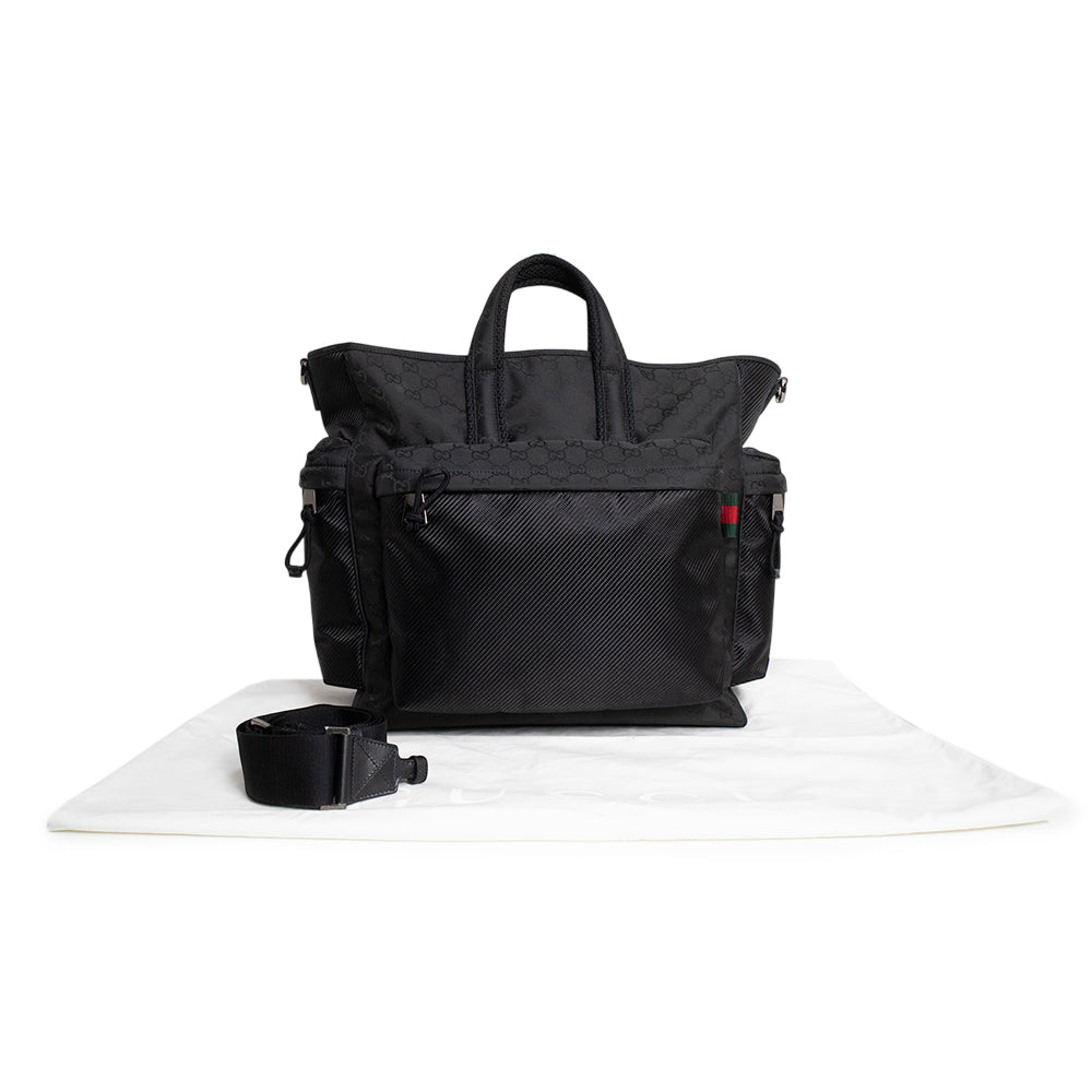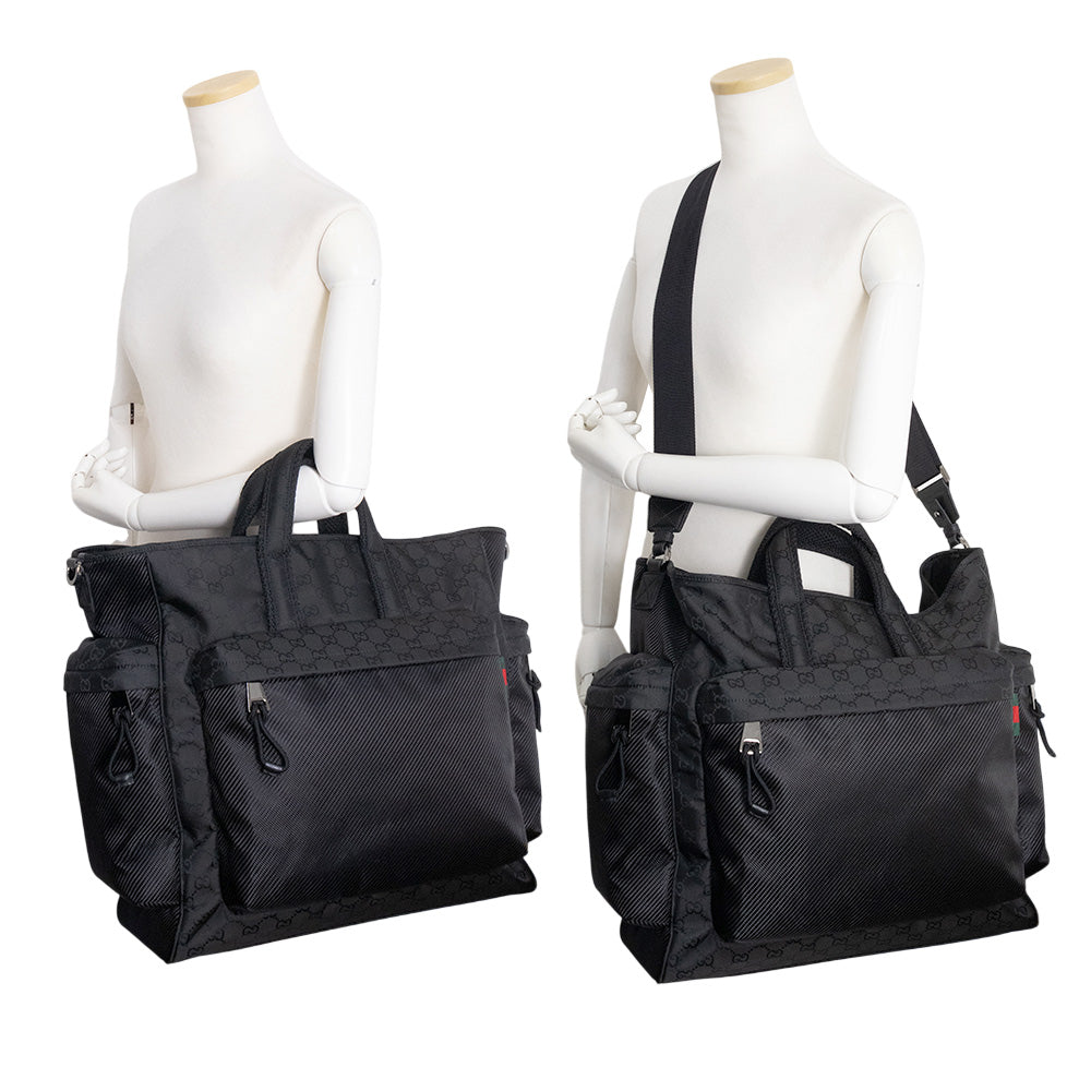 【新品・未使用品】GUCCI グッチ 818962 GG ラージ トート GGナイロン ブラック 2Way 斜め掛け ショルダー ハンドバッグ シルバー金具