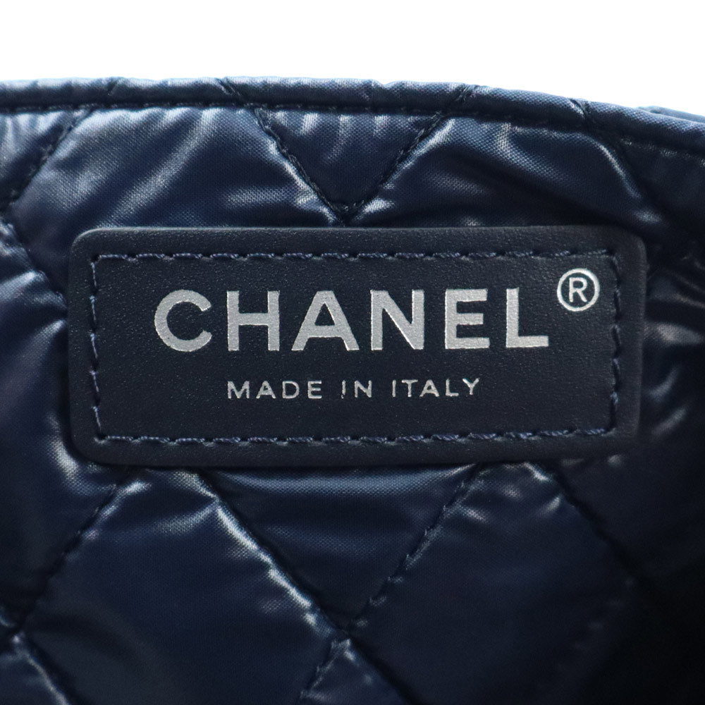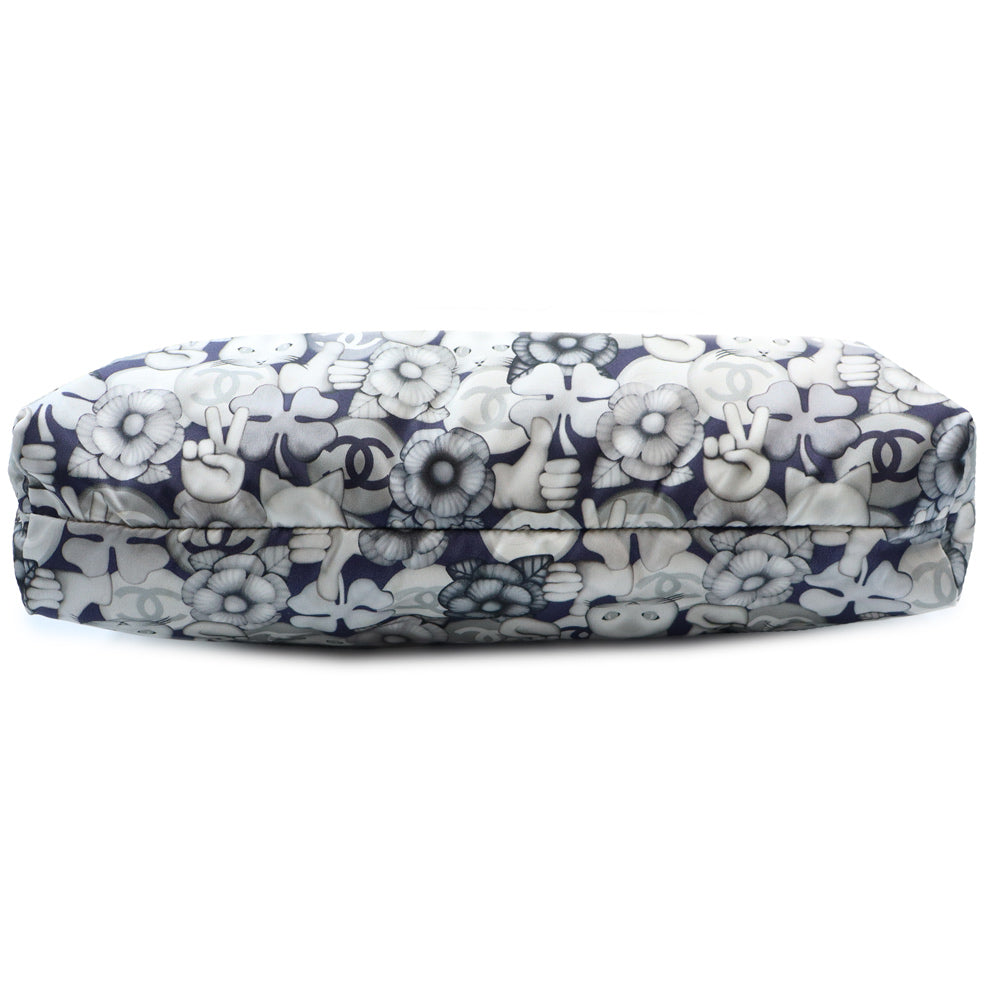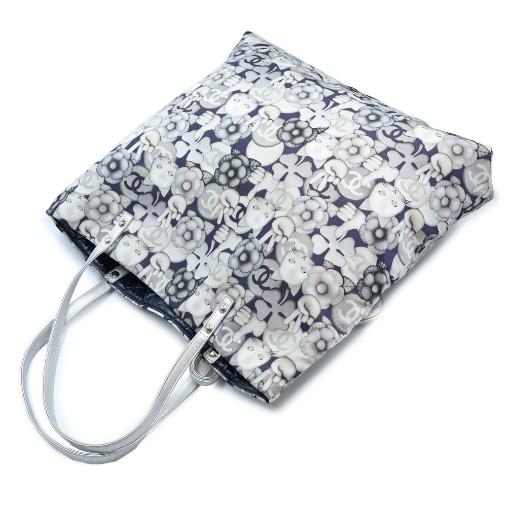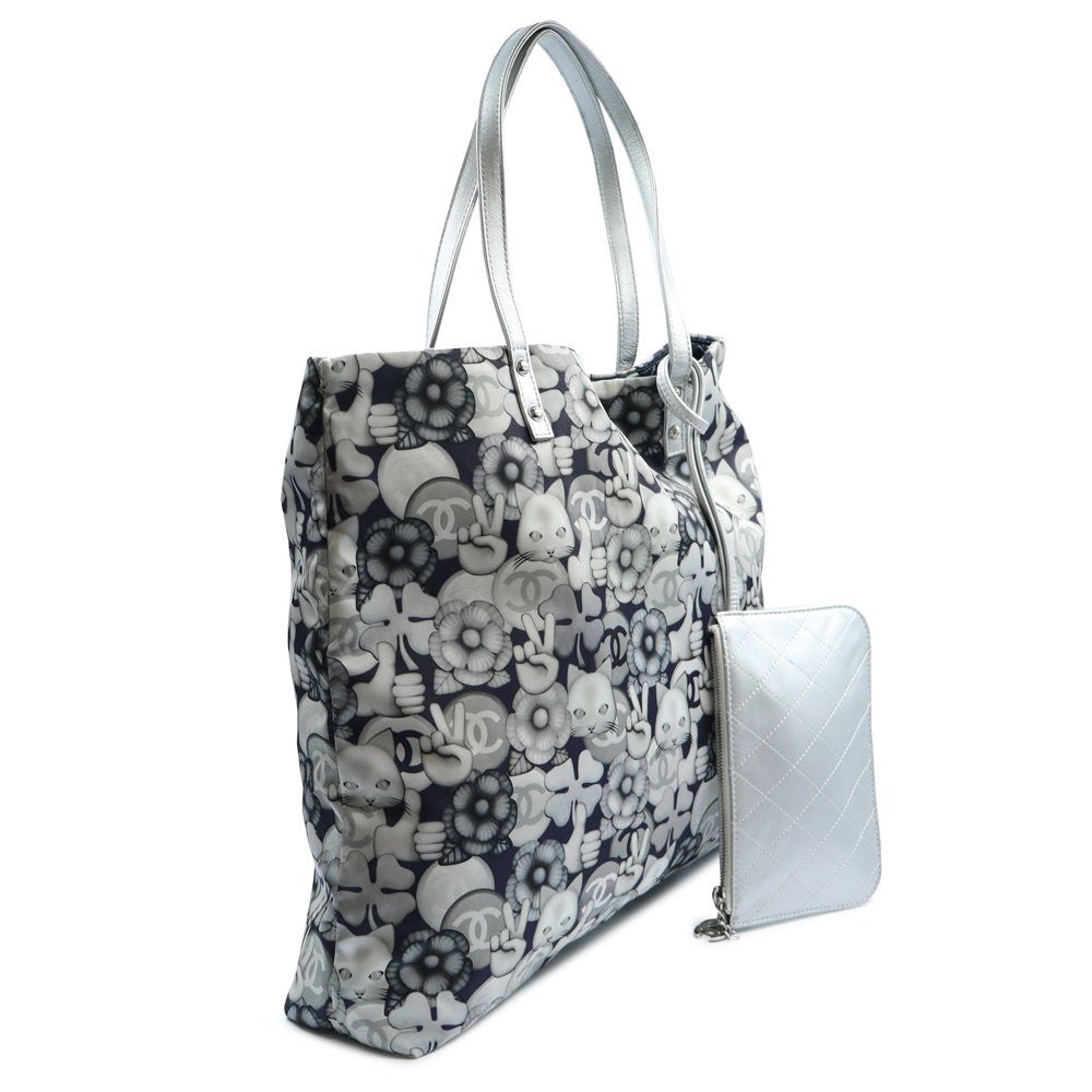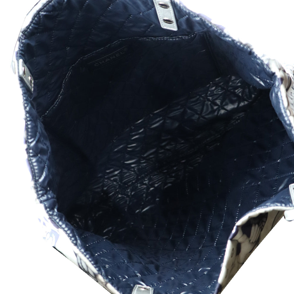 【美品】CHANEL シャネル A69928 シュペット 猫 ネコ柄 グラフィック トートバッグ プリントファブリック レザー ホワイト ネイビー ハンドバッグ シルバー金具 ポーチ付き