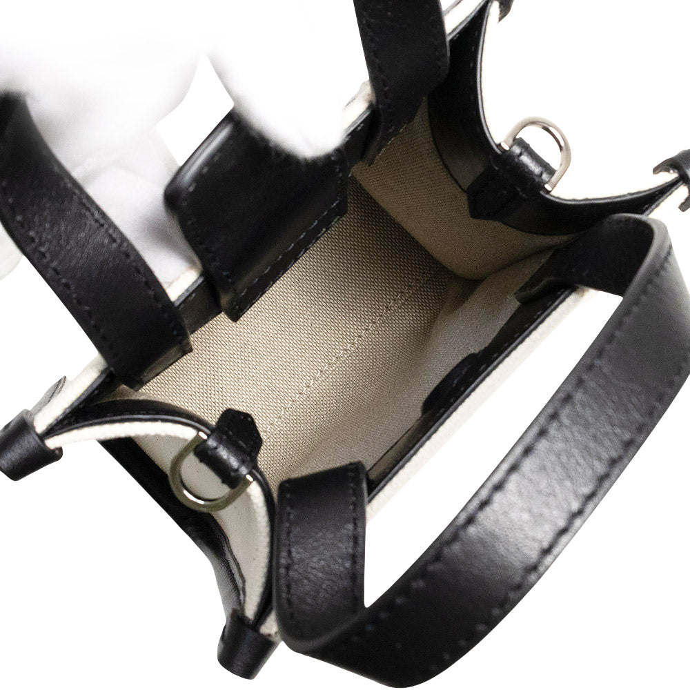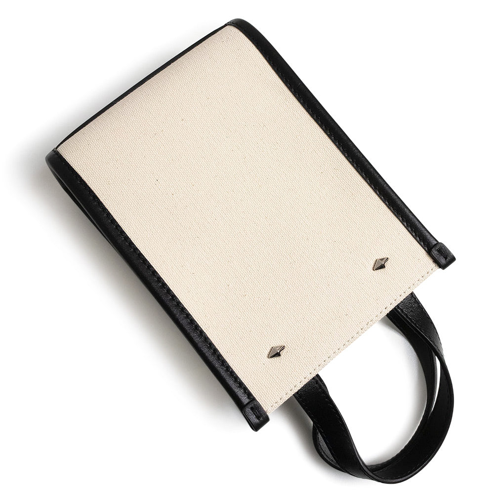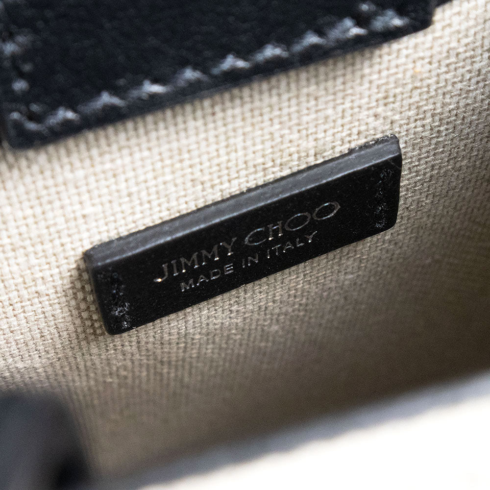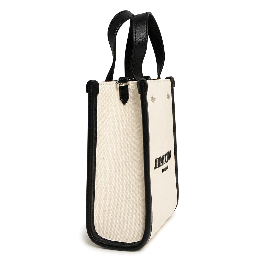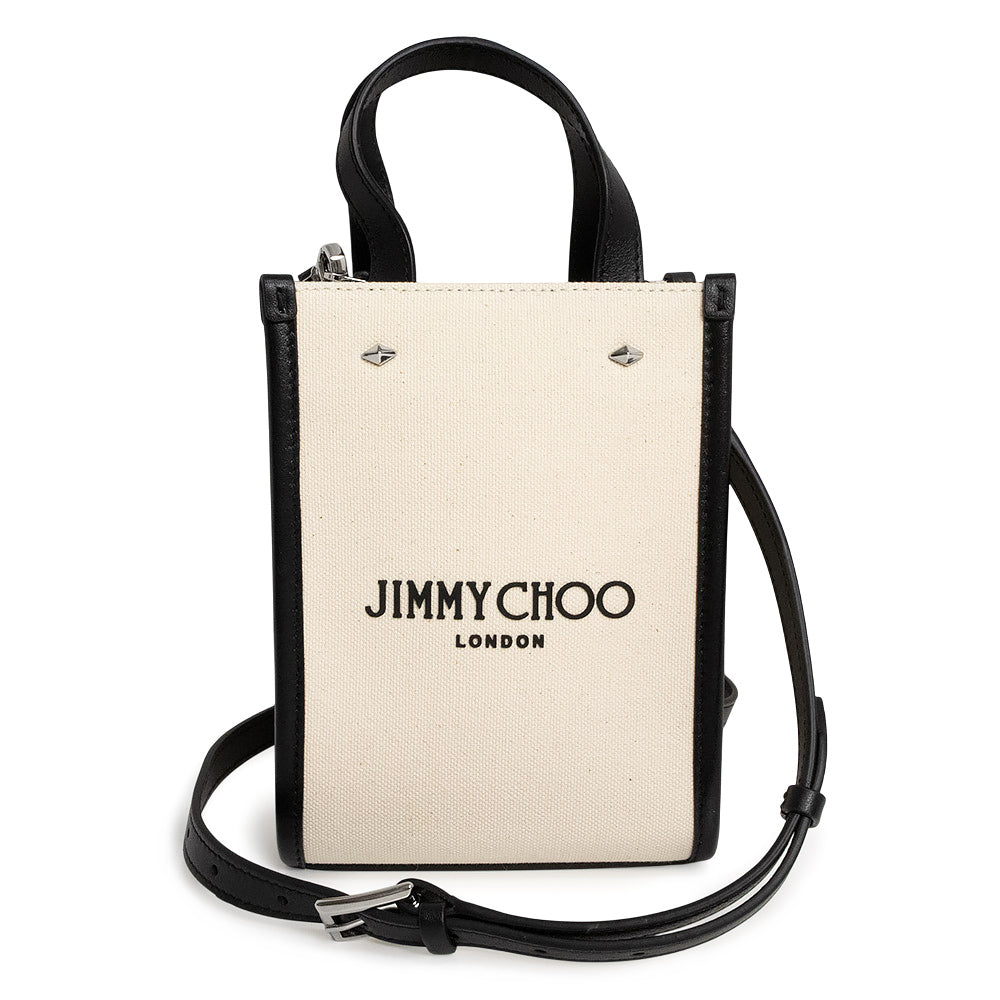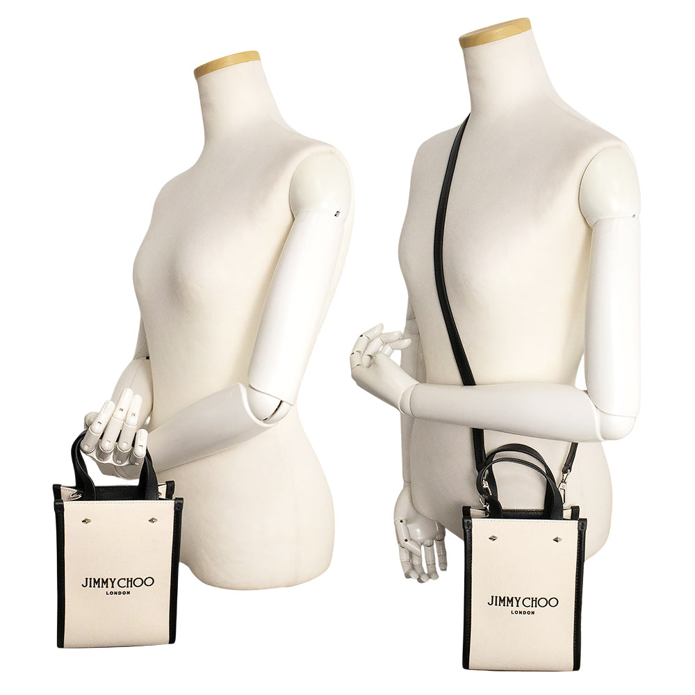 【新品・未使用品】JIMMY CHOO ジミーチュウ ミニ トート キャンバス レザー ナチュラル ブラック 2Way ショルダー ハンドバッグ 斜め掛け シルバー金具 MINI N/S TOTE CZM