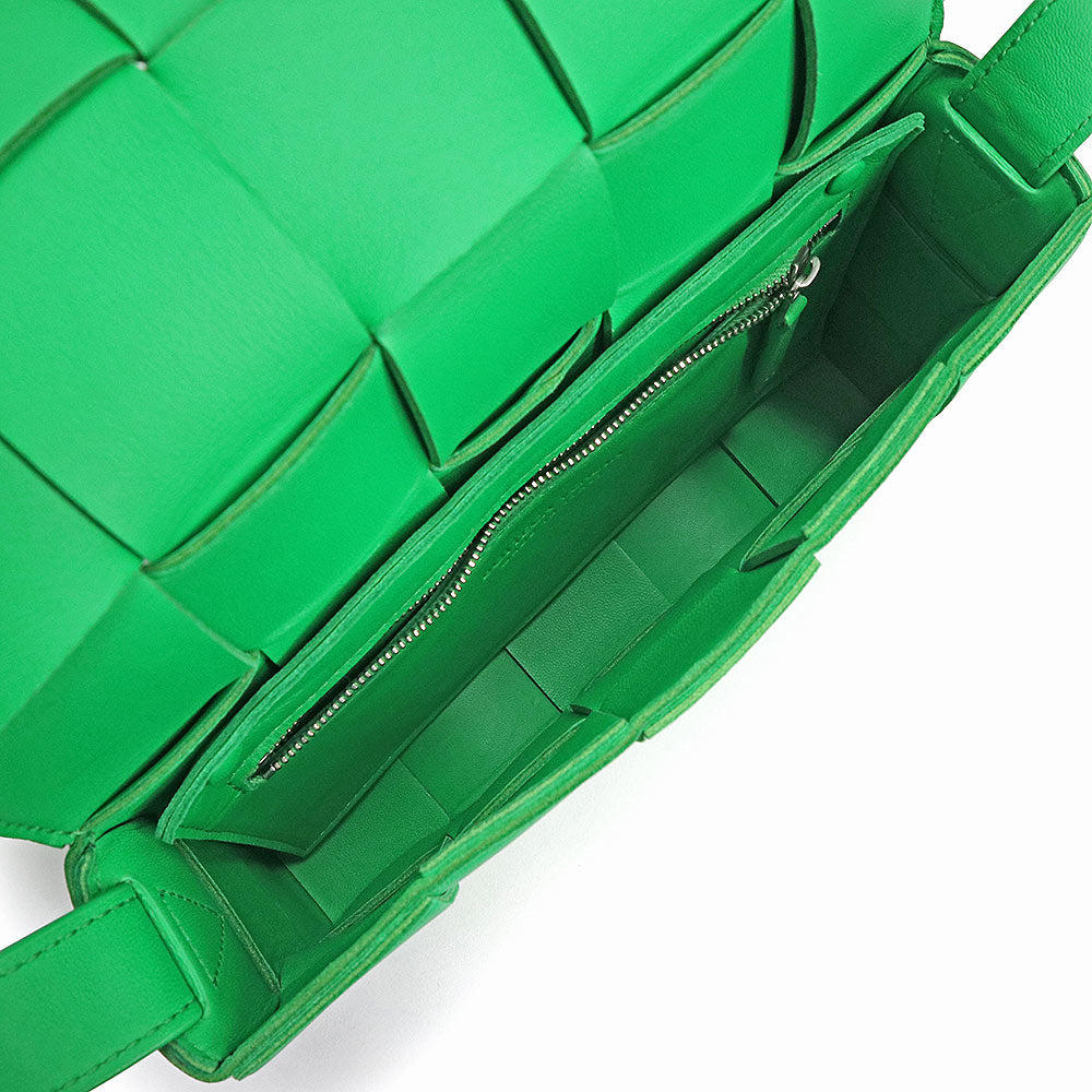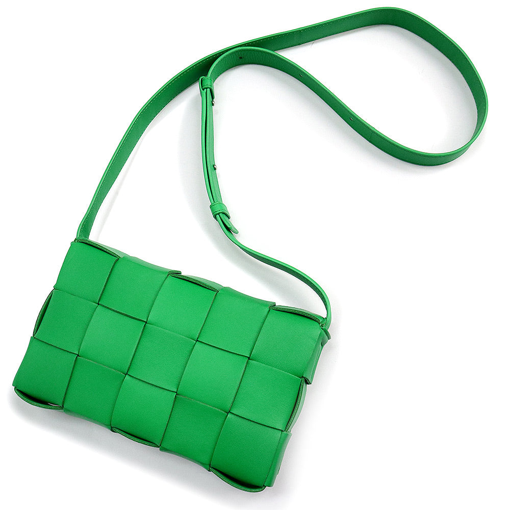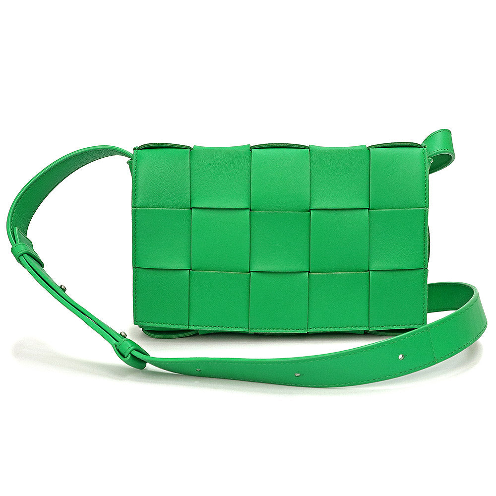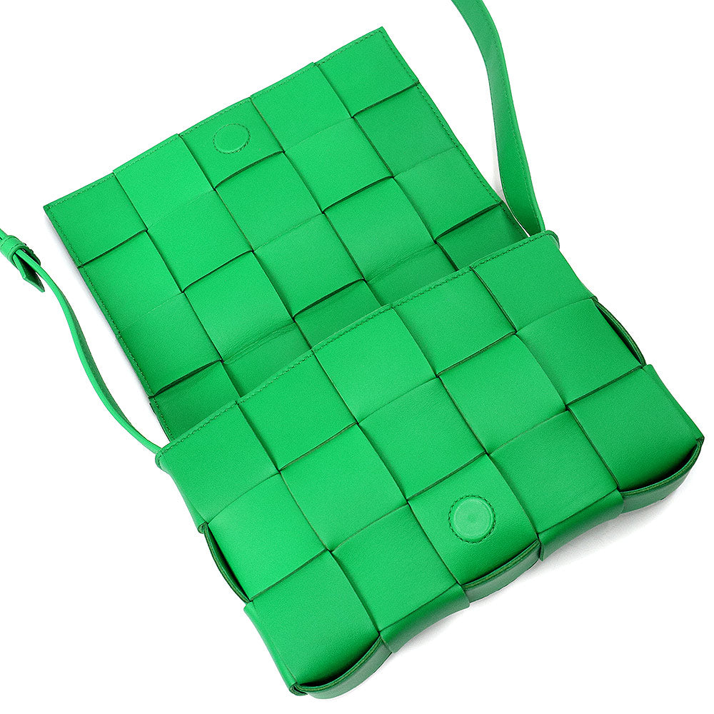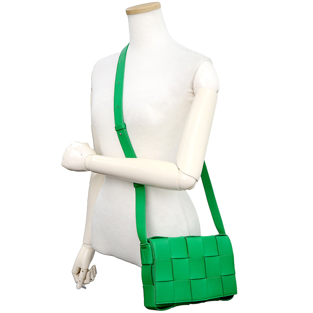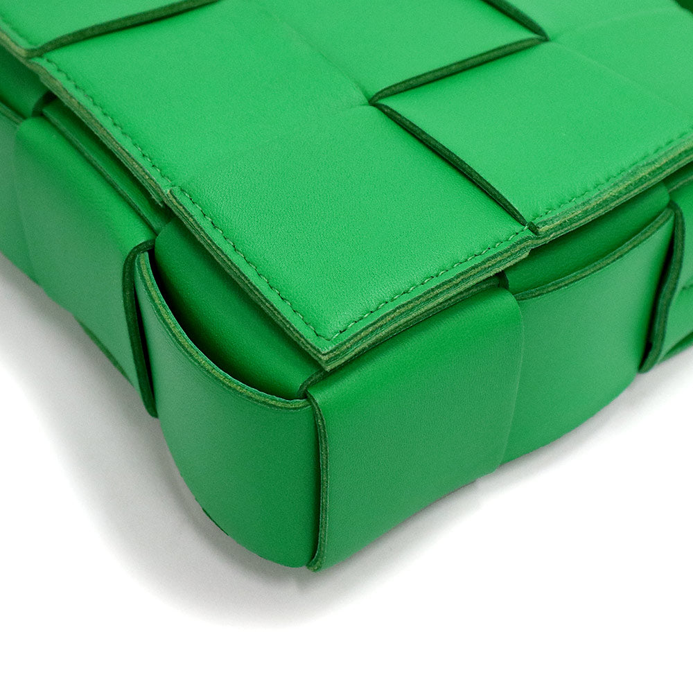 【未使用 展示品】BOTTEGA VENETA ボッテガヴェネタ 578004 マキシイントレチャート カセット ラムスキン グリーン ショルダーバッグ 斜め掛け レザー シルバー金具