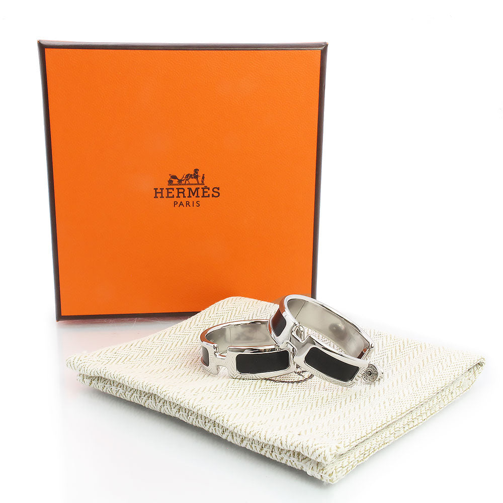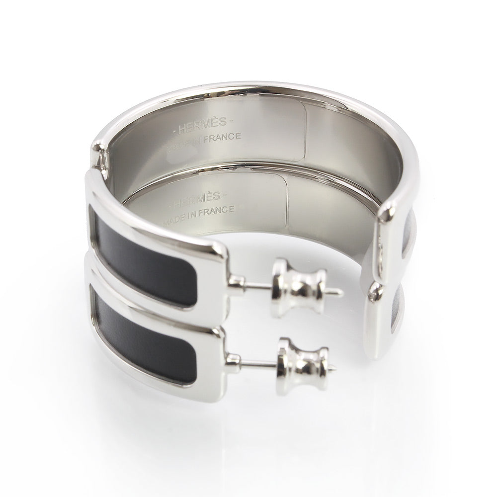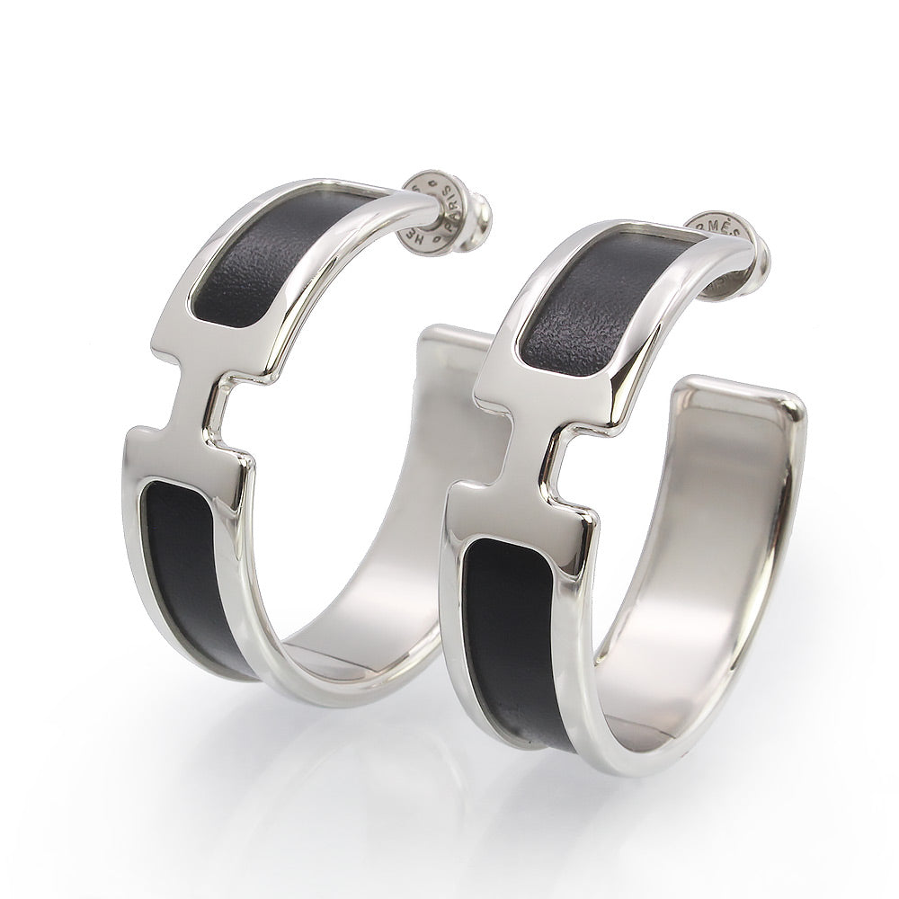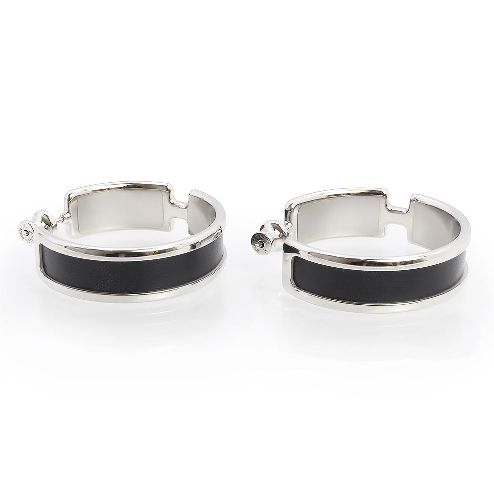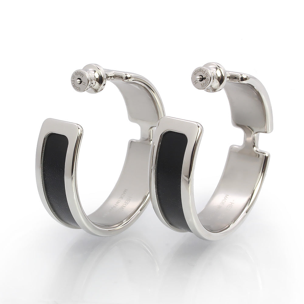 【新品・未使用品】HERMES エルメス オランプ ボックスカーフ ノワール ブラック フープ ピアス レザー シルバー金具 箱付