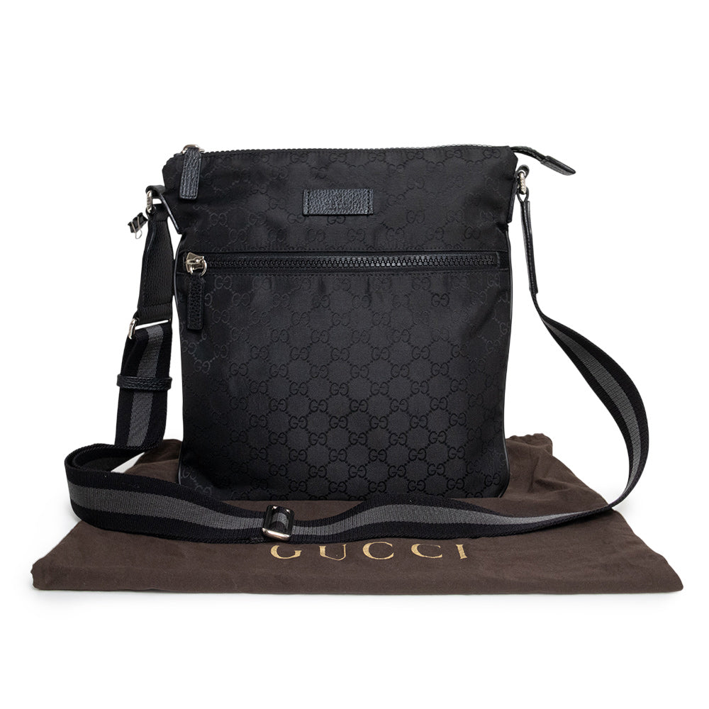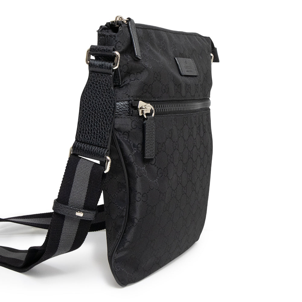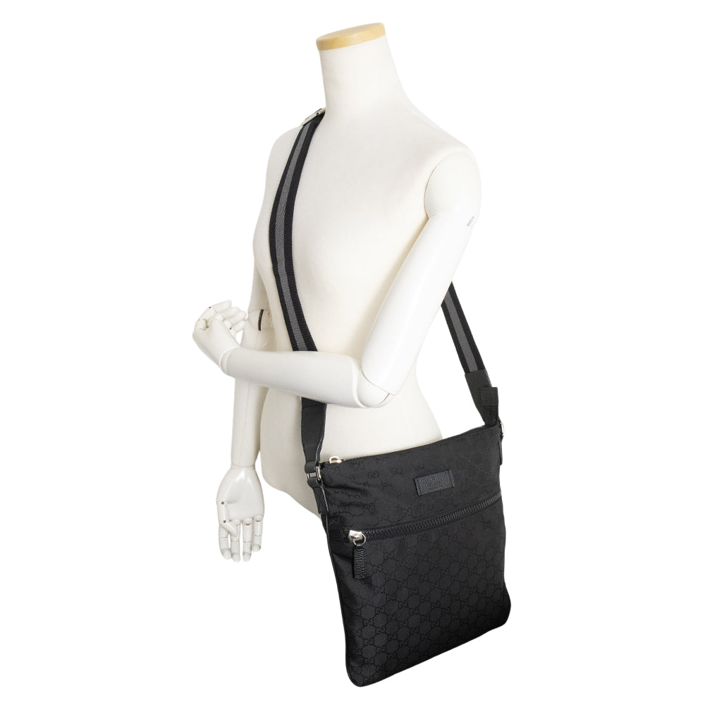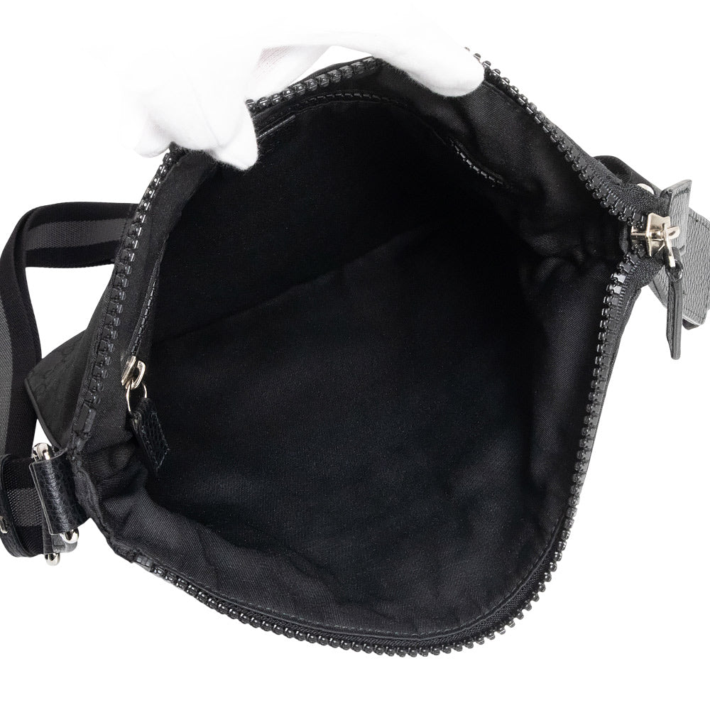 【美品】GUCCI グッチ 449184 メッセンジャー GGナイロン ブラック ショルダーバッグ 斜め掛け シルバー金具