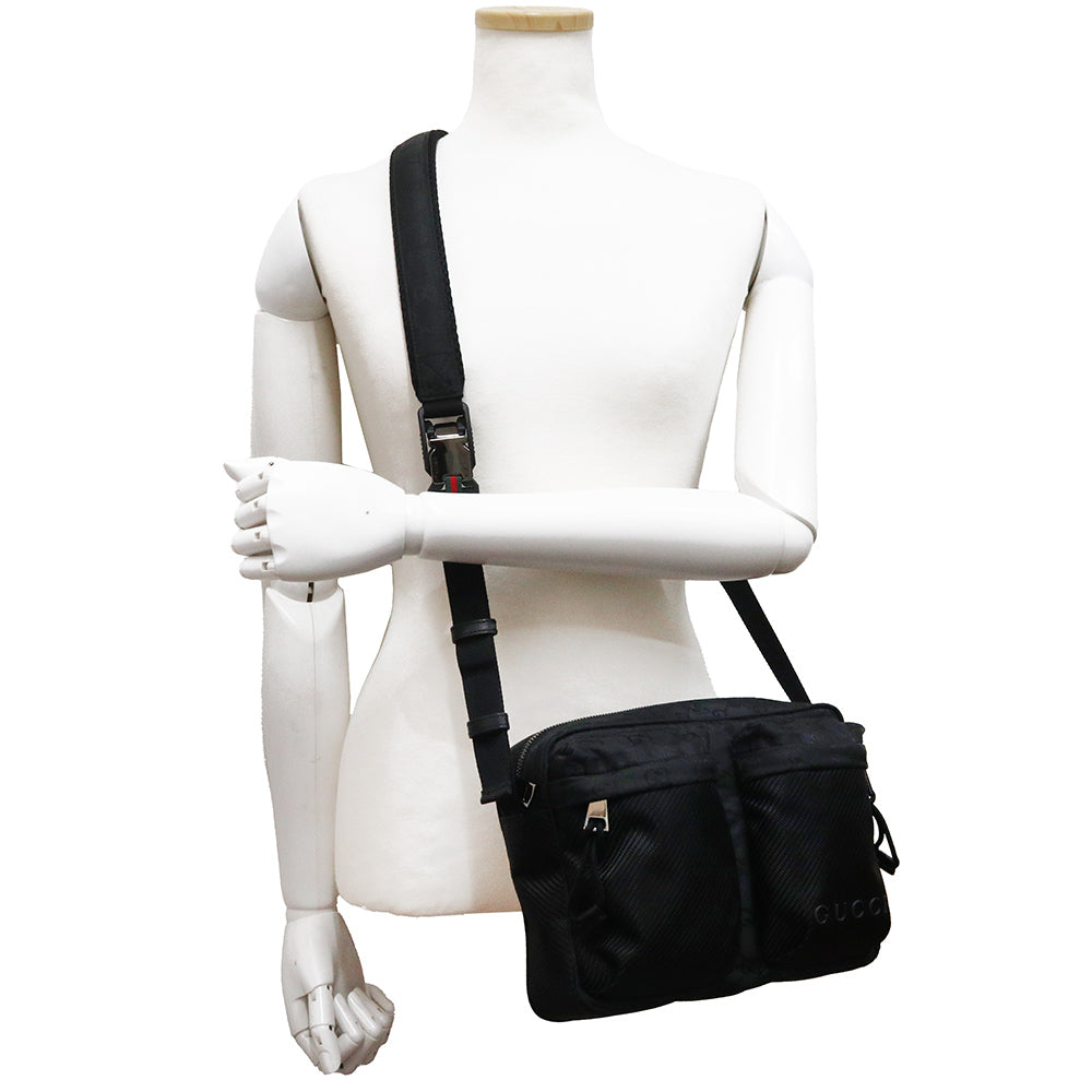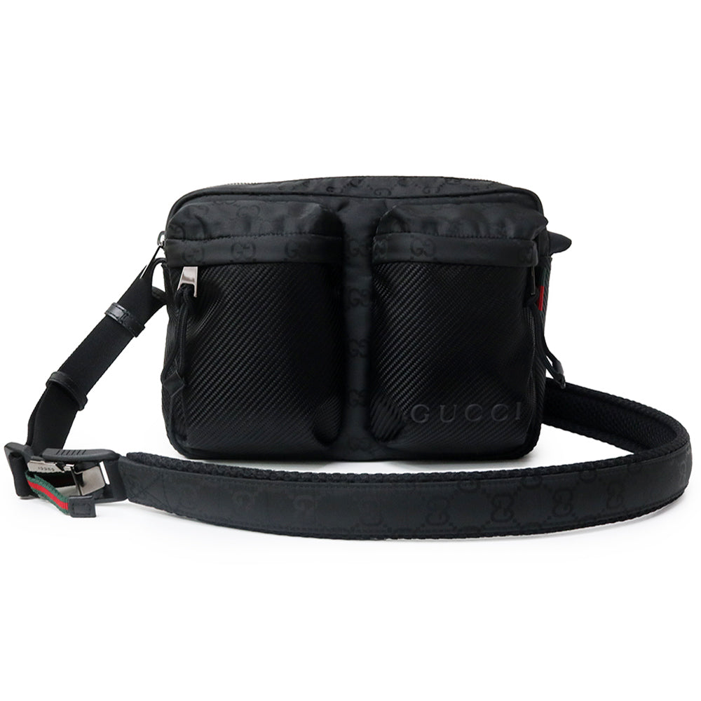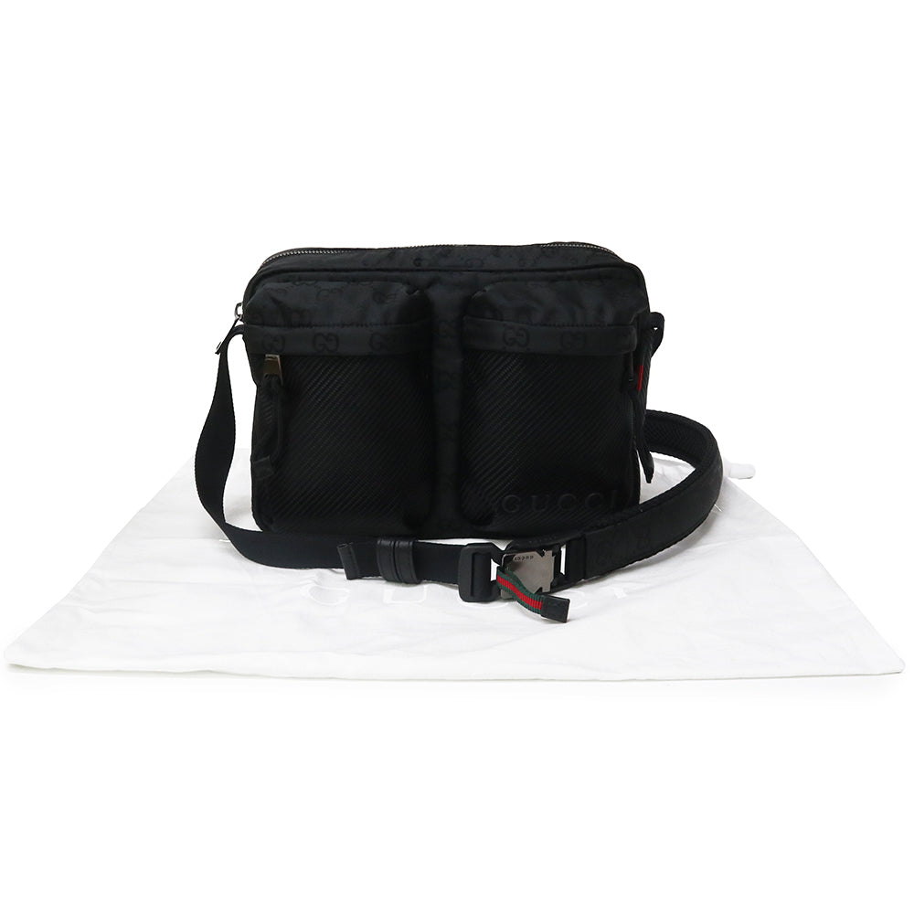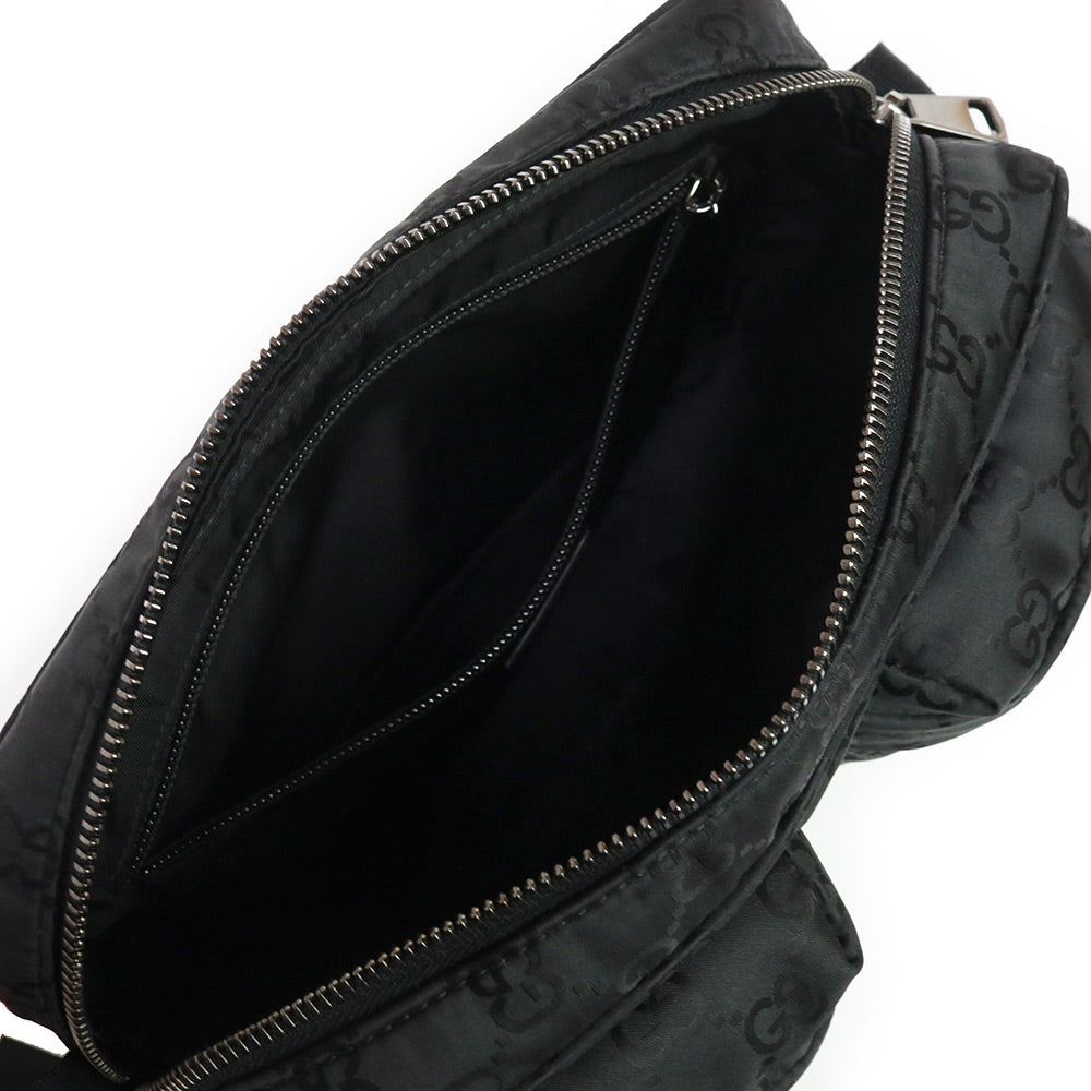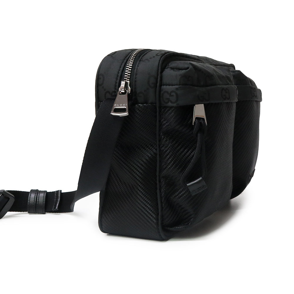 【未使用 展示品】GUCCI グッチ 834475 スモール クロス ボディバッグ GGナイロン ブラック ベルト ウエストバッグ 斜め掛け シルバー金具