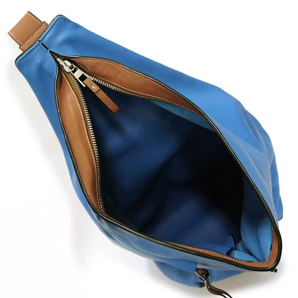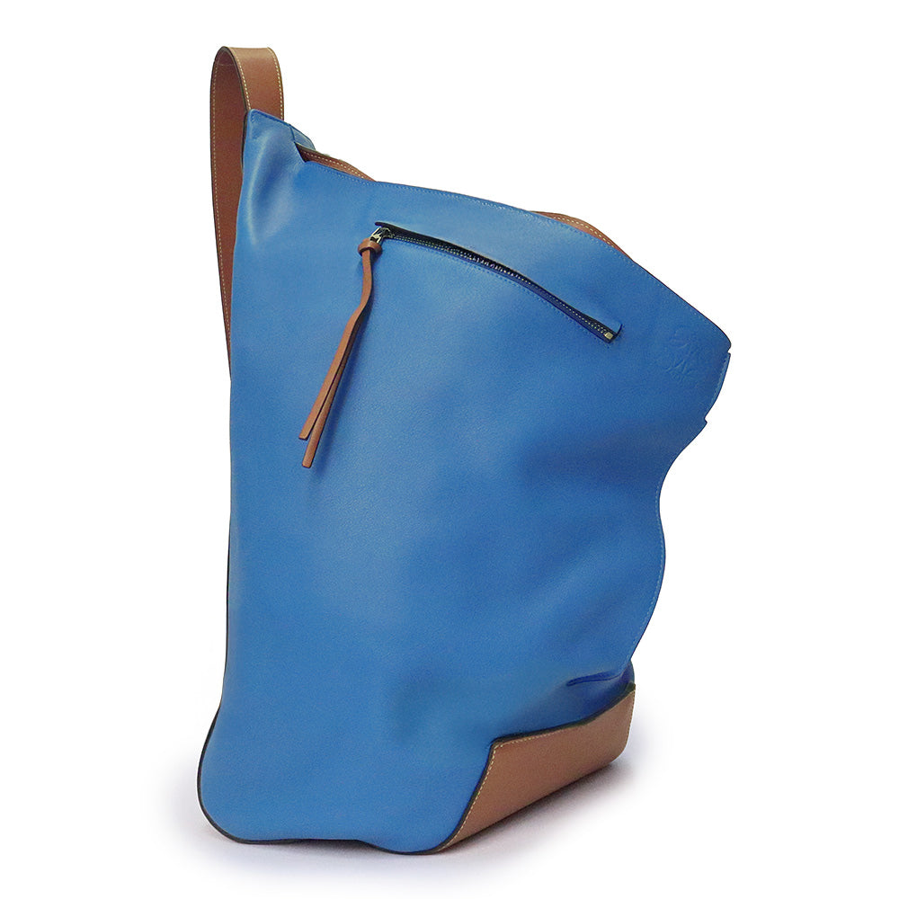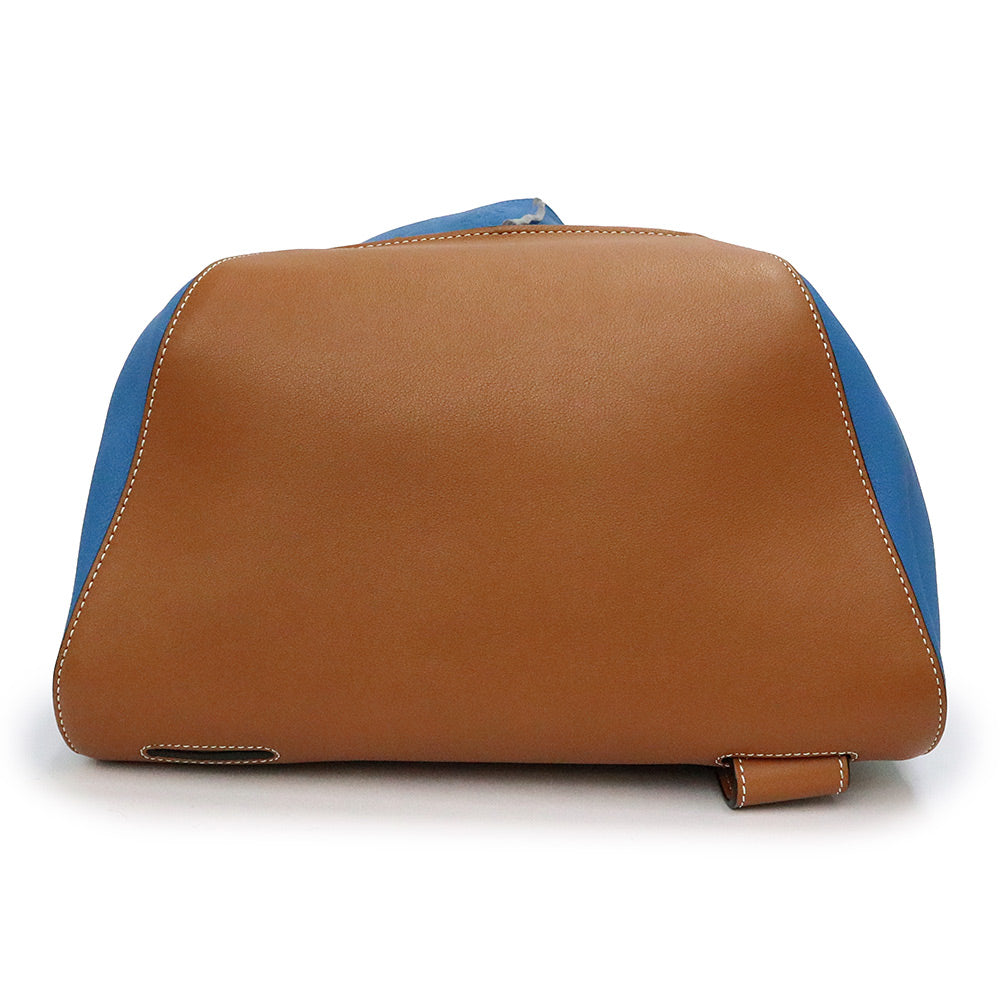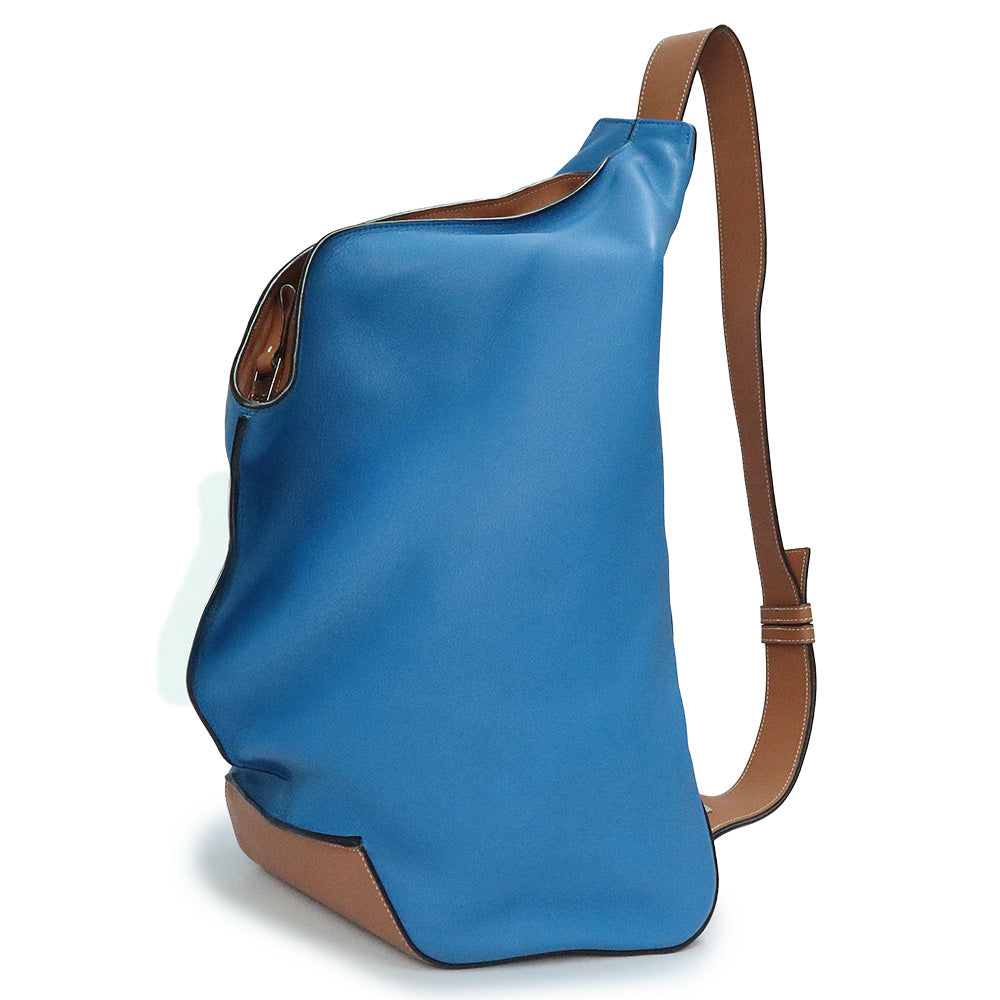 【美品】LOEWE ロエベ 307.30.J87 アントン バックパック カーフスキン バイカラー ブルー ブラウン ショルダーバッグ 斜め掛け リュック クロスボディバッグ レザー シルバー金具