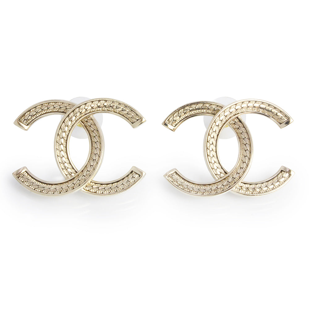 【新品・未使用品】CHANEL シャネル ABE250 ココマーク チェーンデザイン シャンパンゴールド ラージ ピアス 箱付