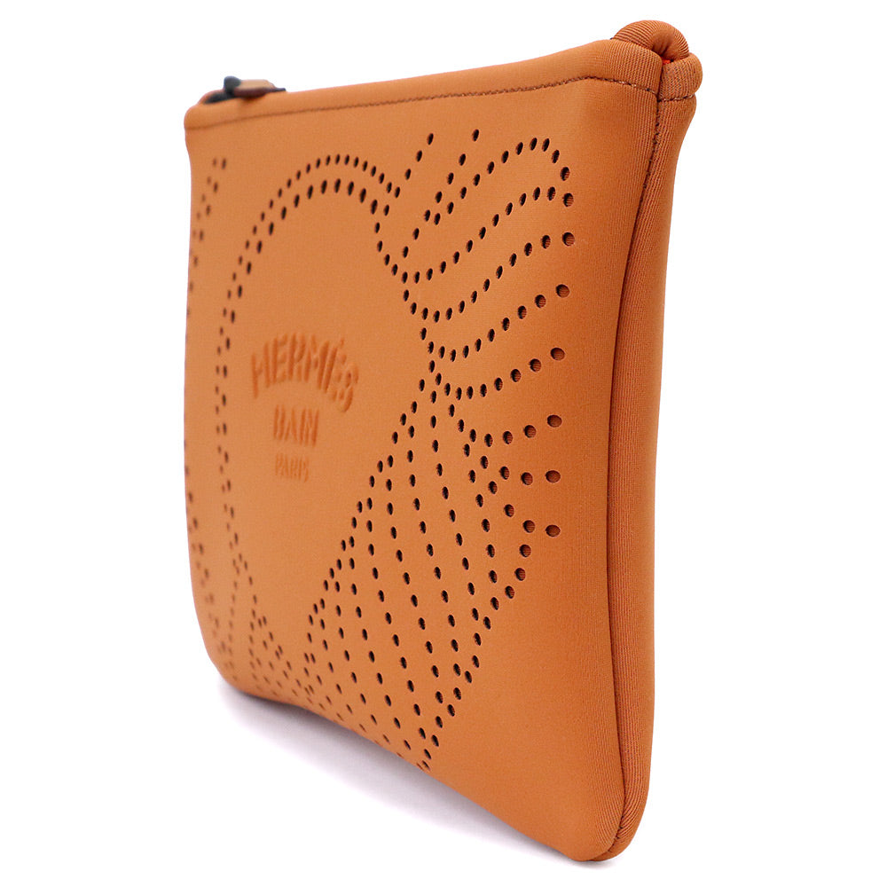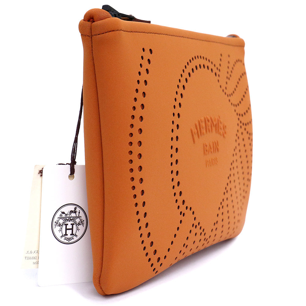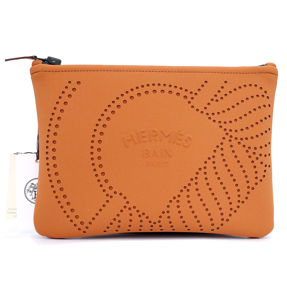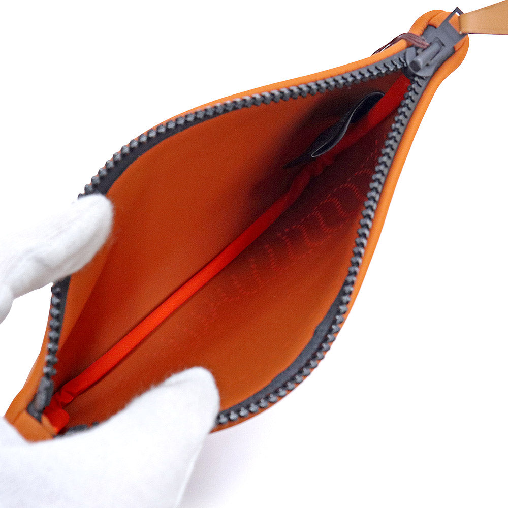 【未使用 展示品】HERMES エルメス ネオバン カノエH PM ポリアミド 80% エラスタン 20% オレンジ ポーチ シルバー金具