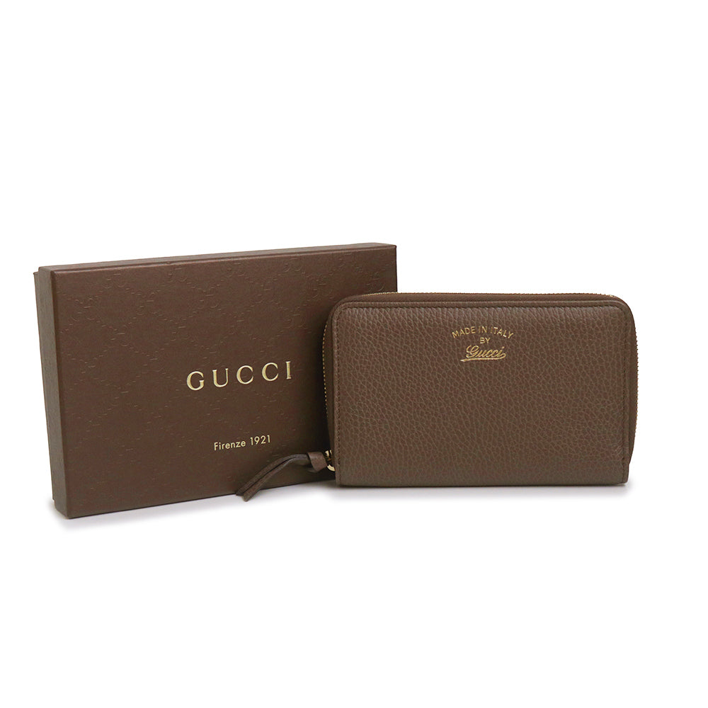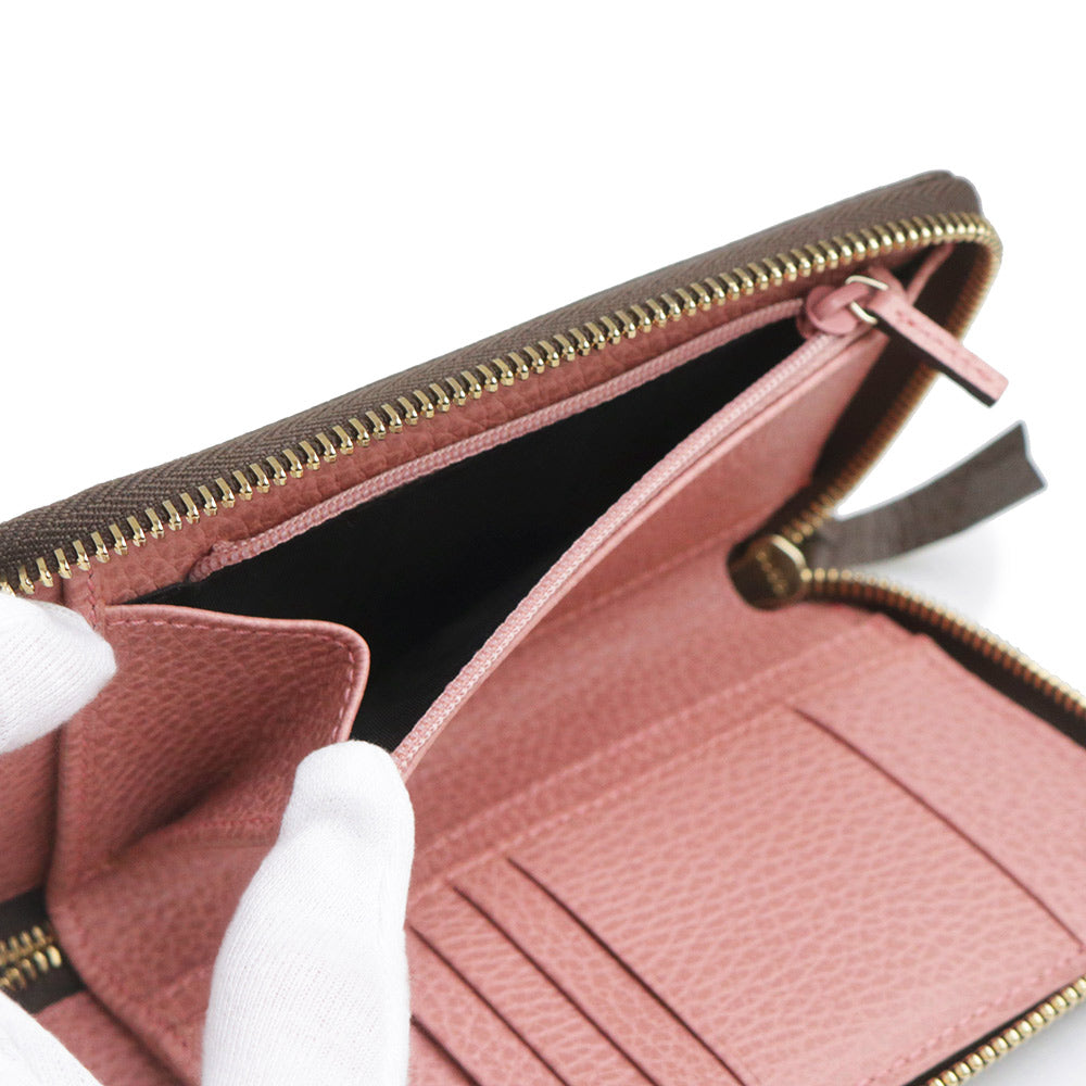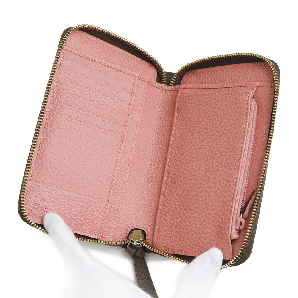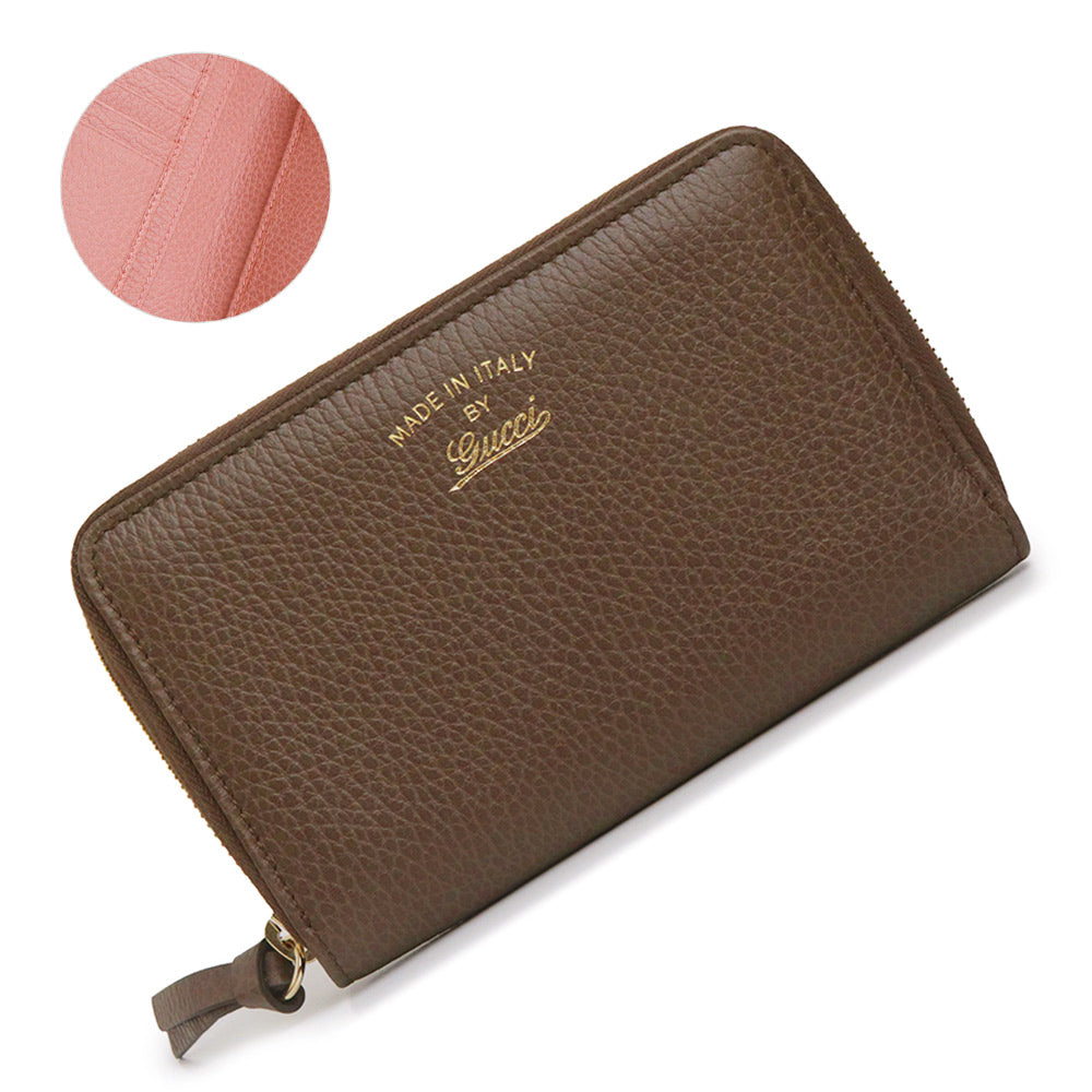 【新品・未使用品】GUCCI グッチ 354497 スウィング レザー ブラウン ピンク ラウンドファスナー 二つ折り財布 ゴールド金具