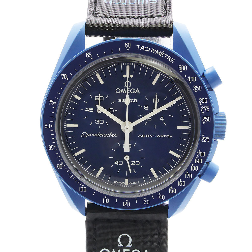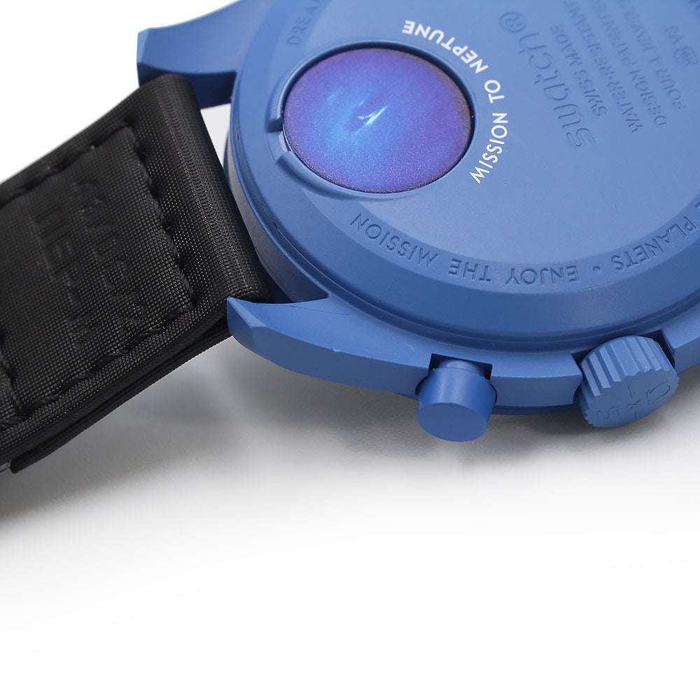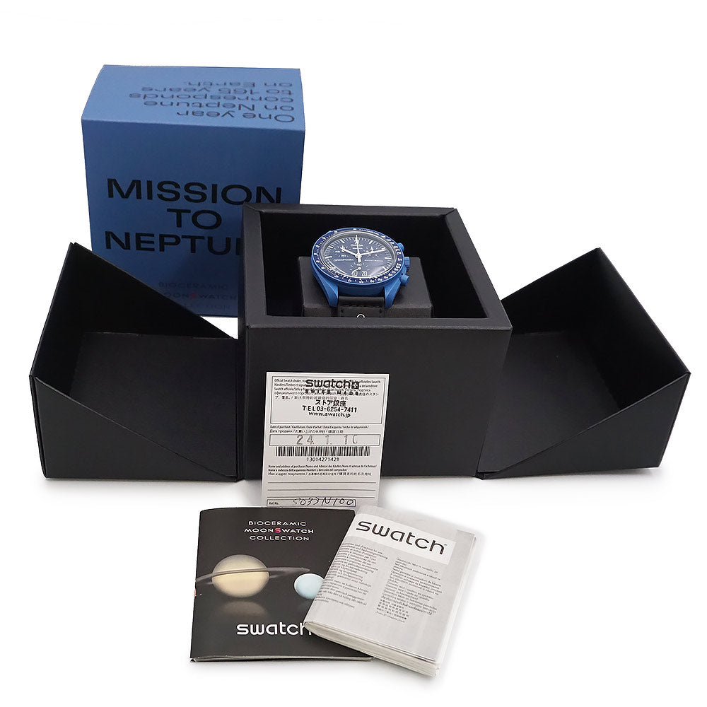 【未使用 展示品】OMEGA オメガ Swatch スウォッチ SO33N100 ミッション トゥ ネプチューン MISSION TO NEPTUNE スピードマスター ムーンスウォッチ クロノグラフ クオーツ ナイロン バイオセラミック ディープネイビーブルー ブラック 腕時計 箱付