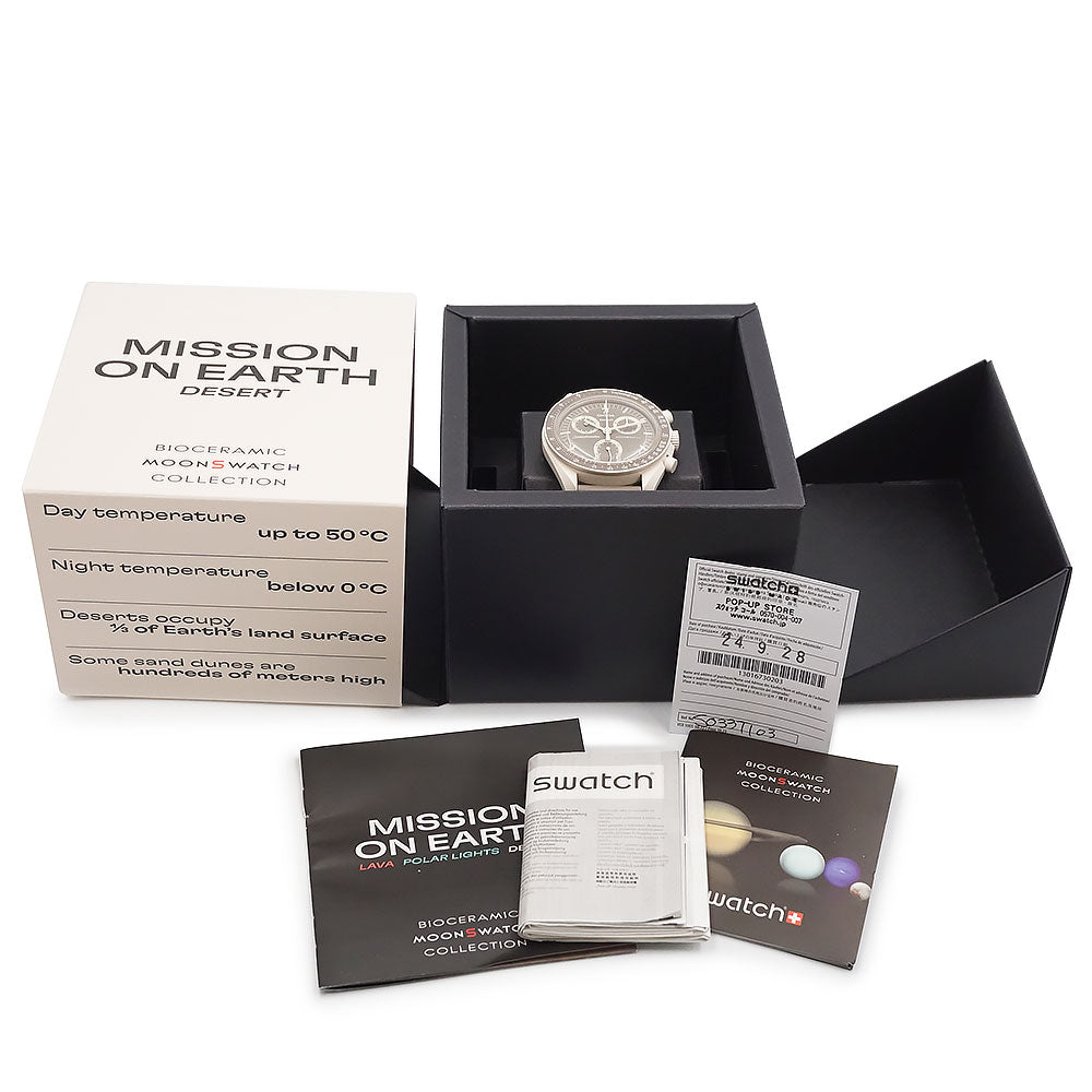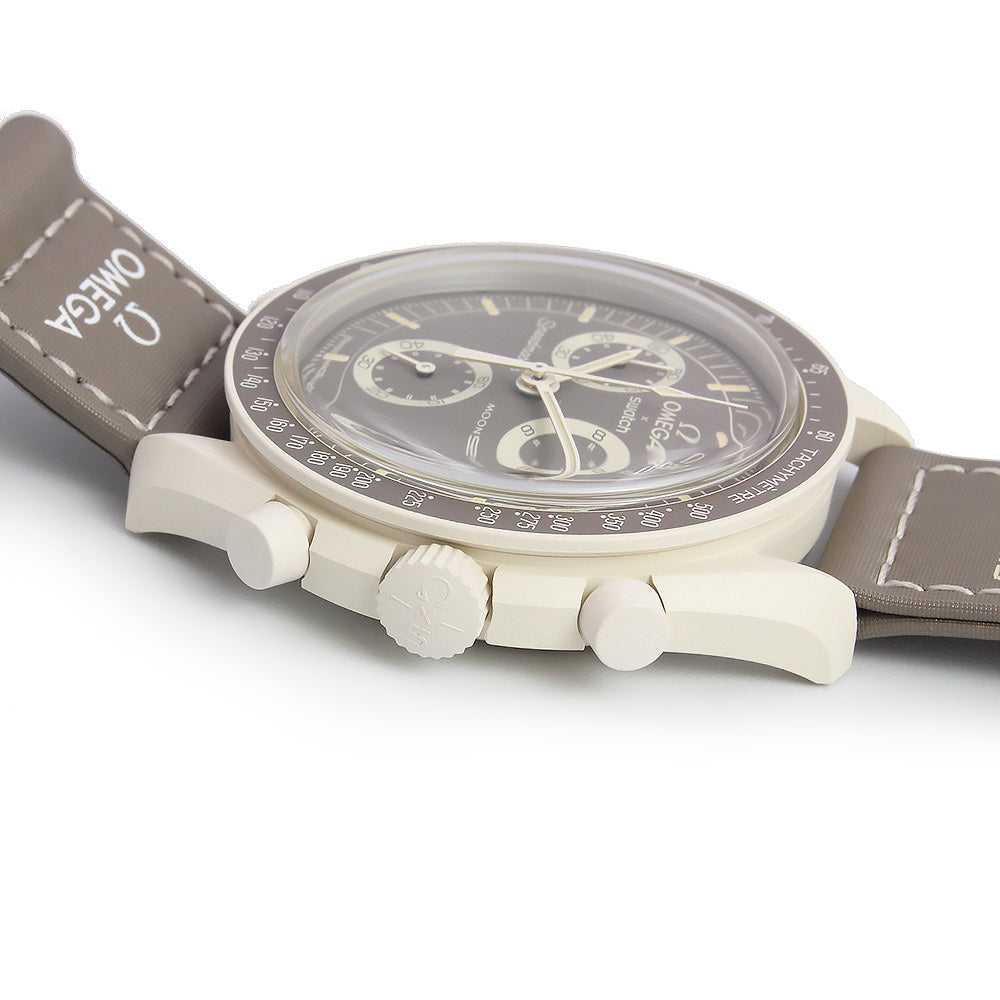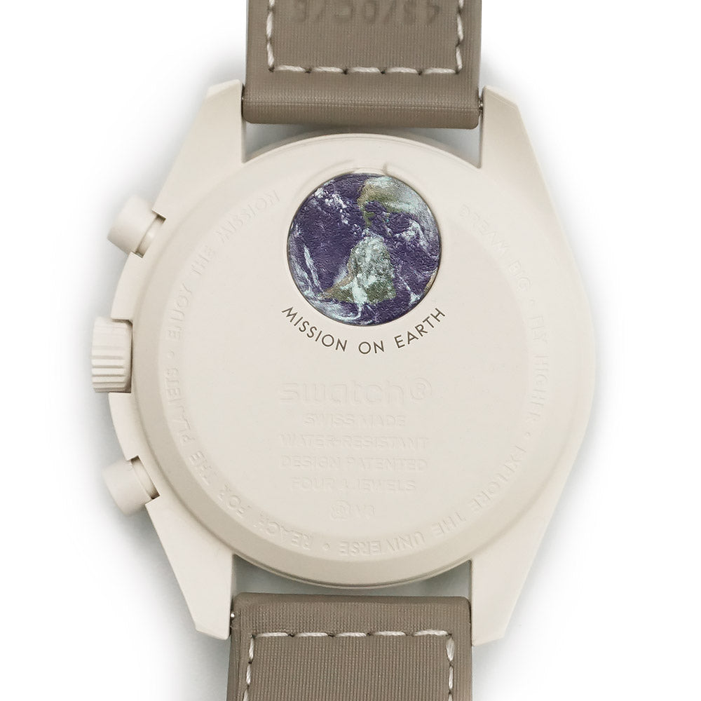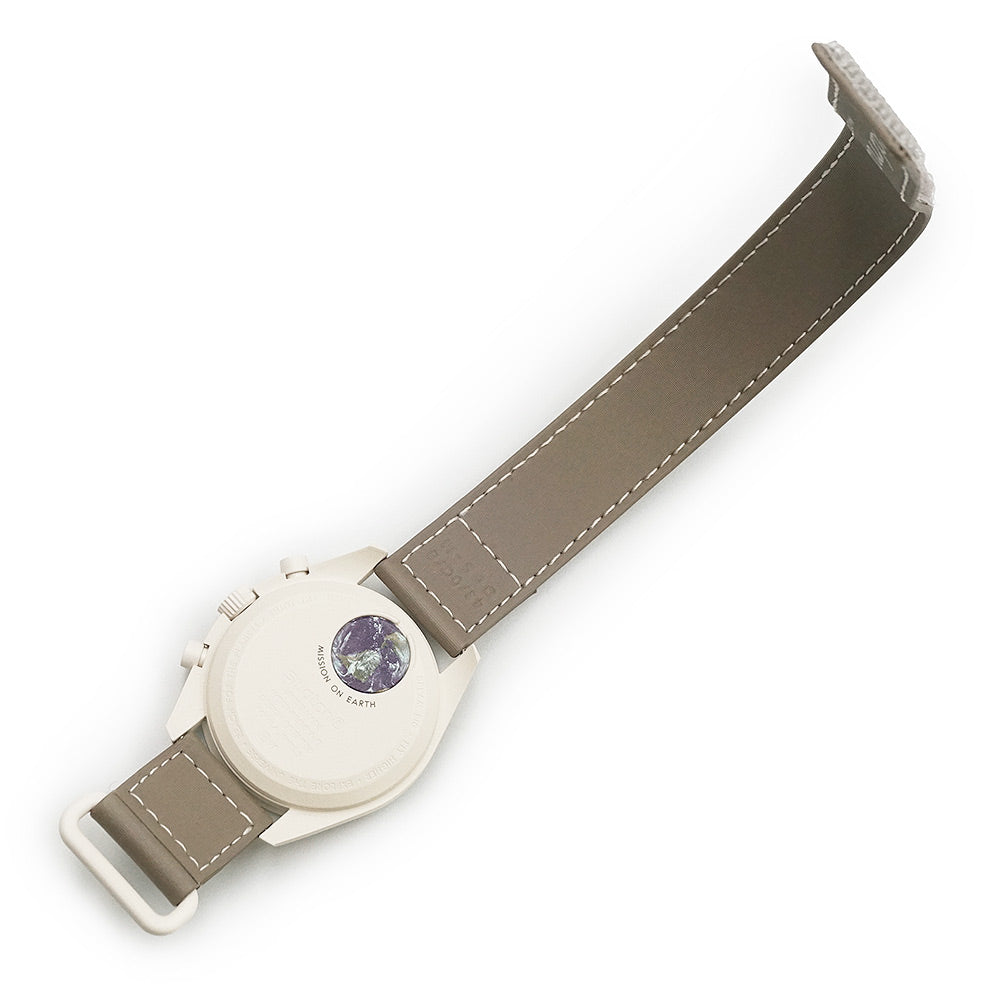 【未使用 展示品】OMEGA オメガ Swatch スウォッチ SO33T103 ミッション オン アース デザート MISSION ON EARTH DESERT スピードマスター ムーンスウォッチ クロノグラフ クオーツ ナイロン バイオセラミック グレージュ トープ サンド 腕時計 箱付