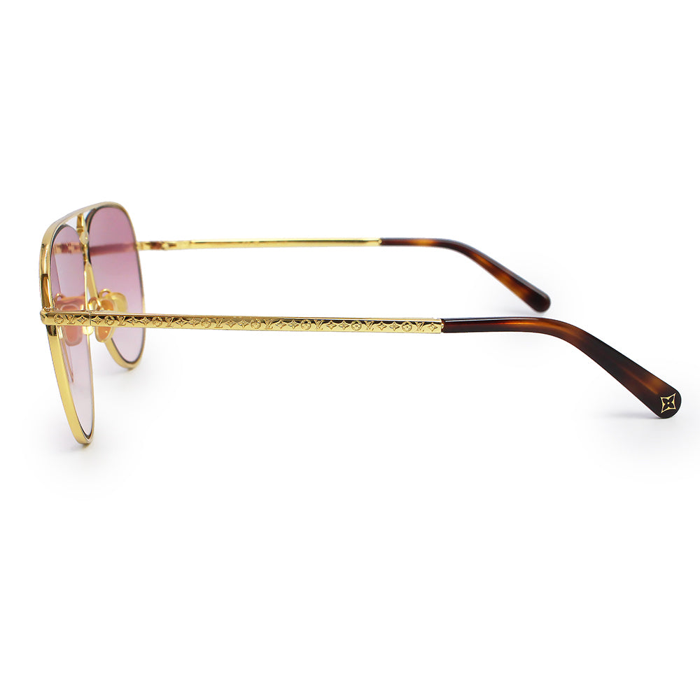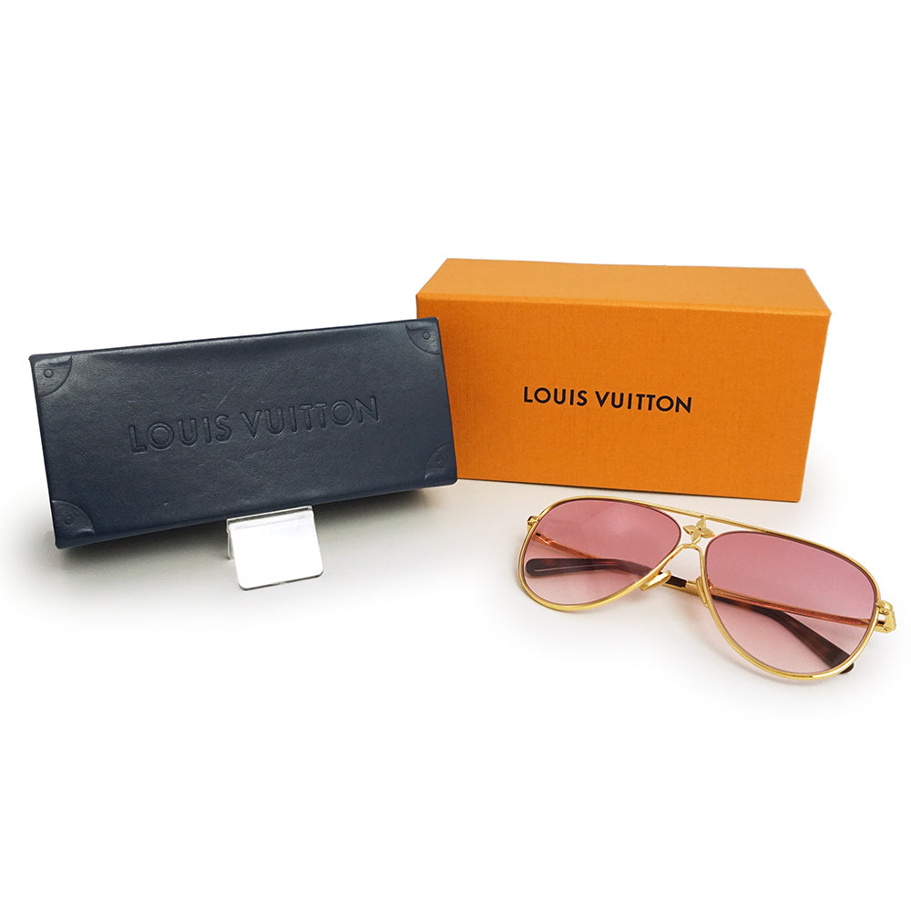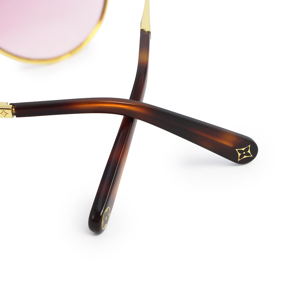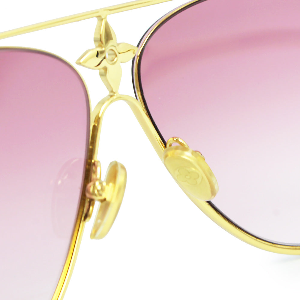 【中古】LOUIS VUITTON ルイ ヴィトン Z1868U LV スター パイロット メタル ゴールド ピンクグラデーション アイウェア メガネ 眼鏡 サングラス 箱付