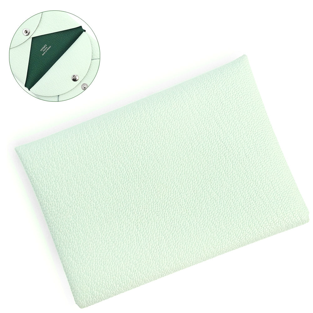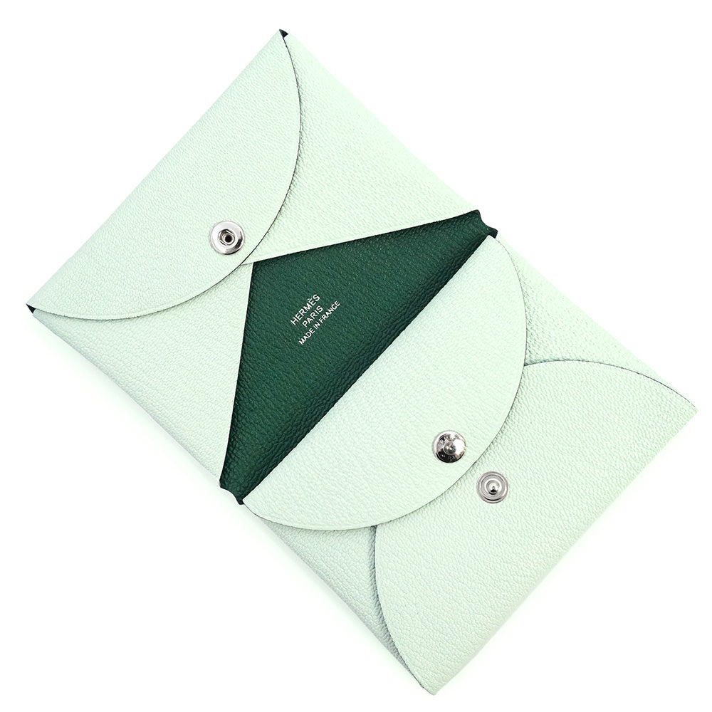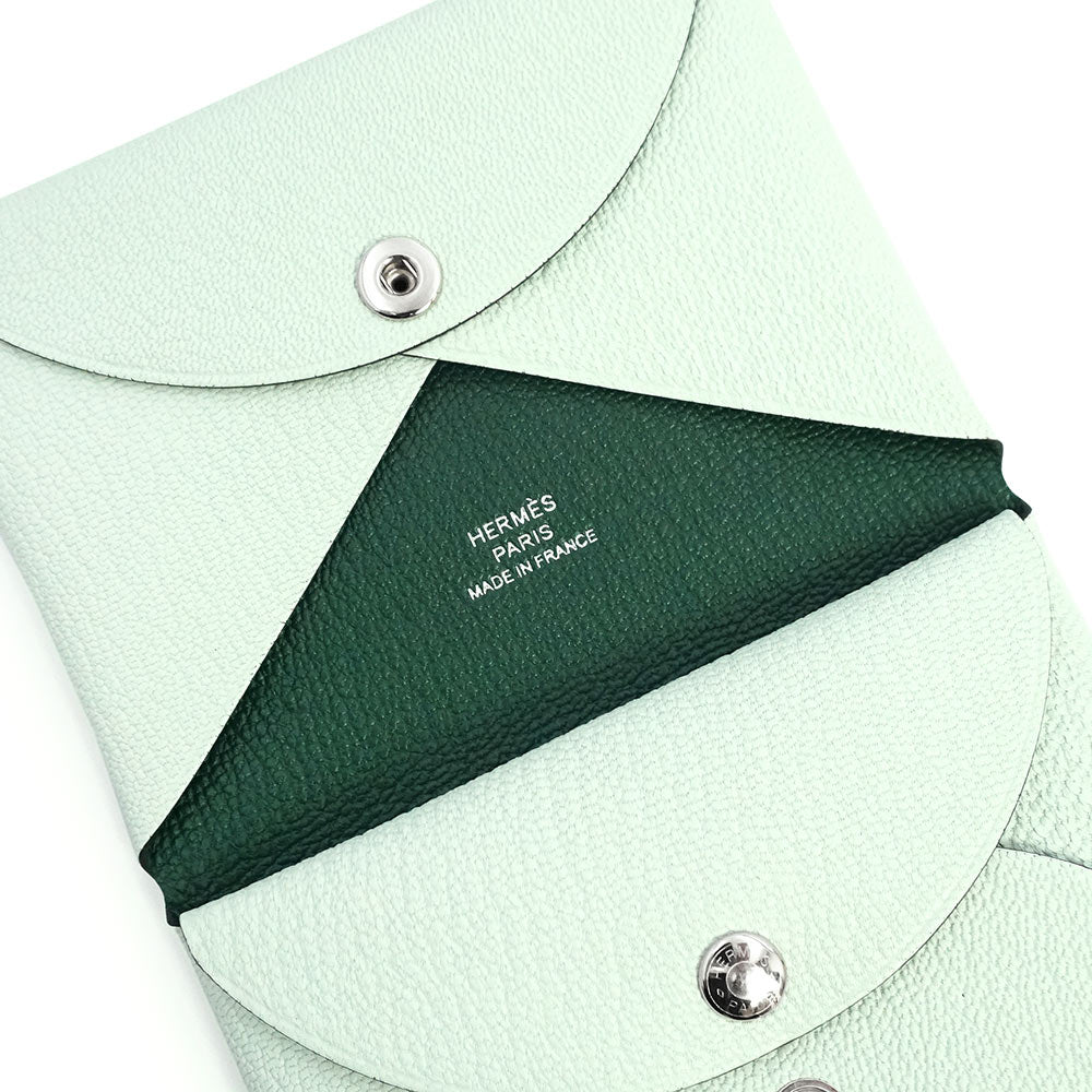 【新品・未使用品】HERMES エルメス カルヴィ デュオ コンパクト ヴェルソ シェブル シェーブルミゾール ヴェールペパーミント ヴェールモワイヤン グリーン W刻印 コインケース カードケース パスケース 名刺 定期入れ 小銭入れ 財布 レザー シルバー金具 箱付