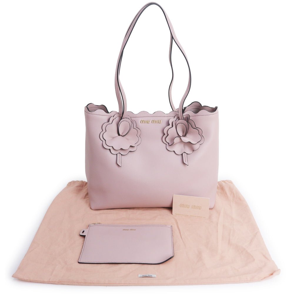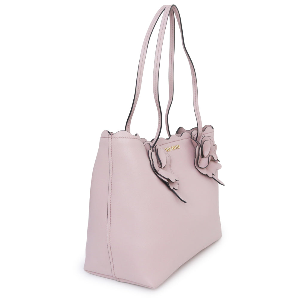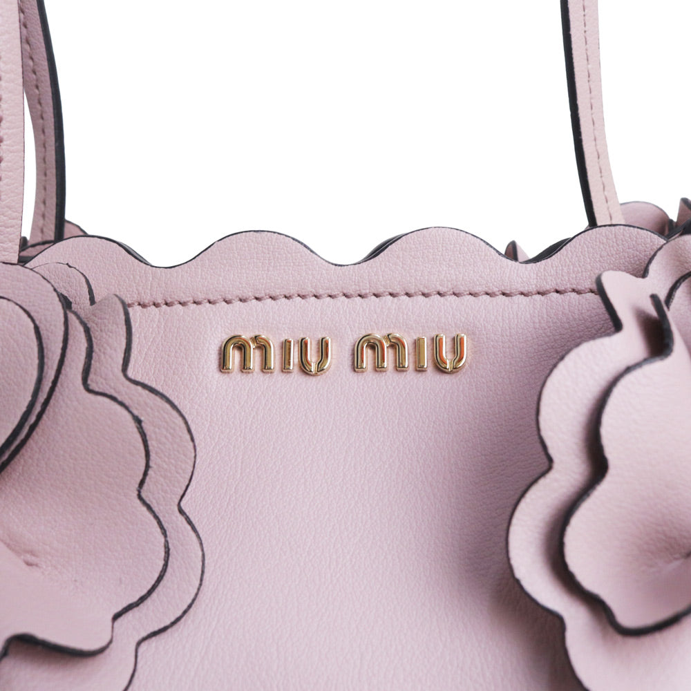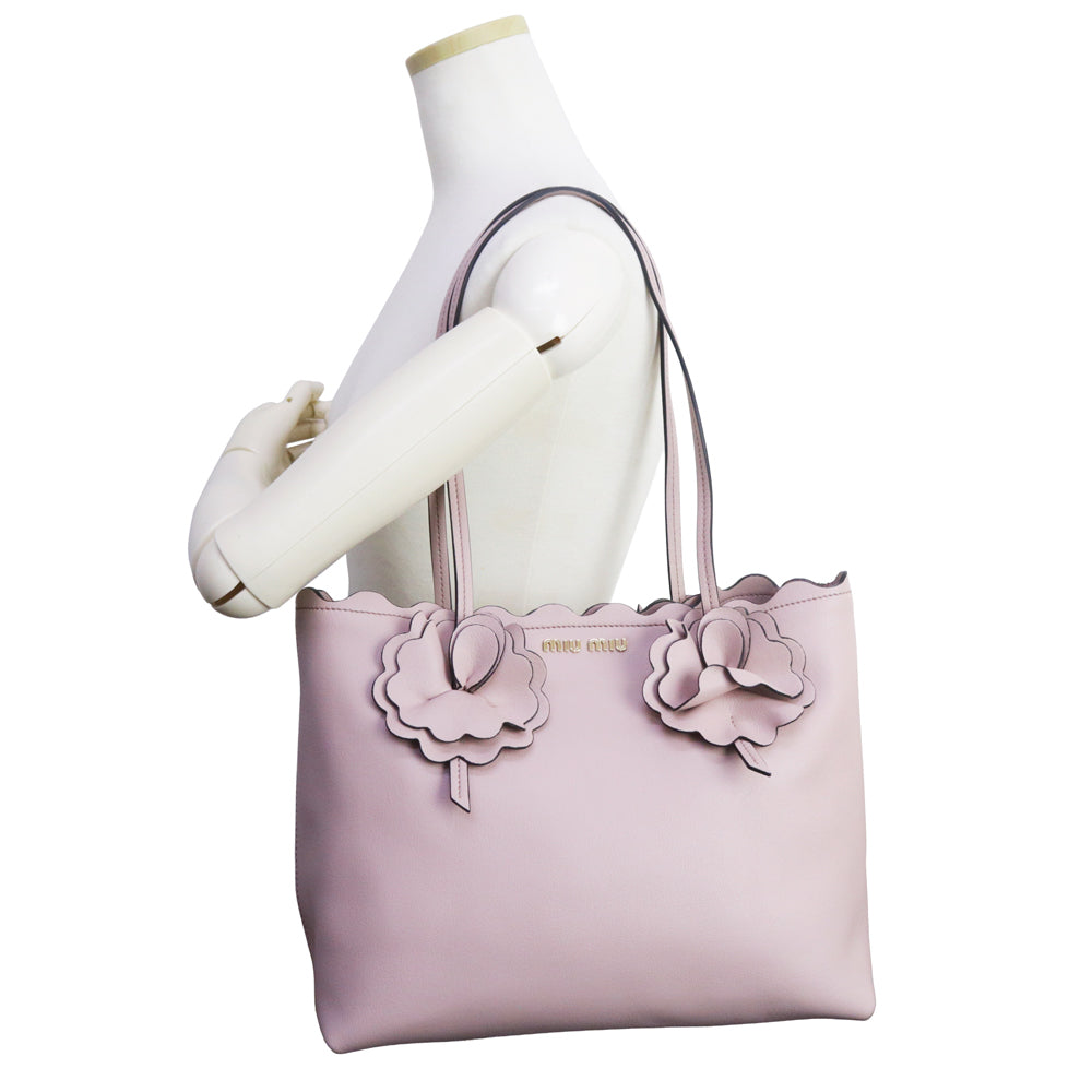 【未使用 展示品】miu miu ミュウミュウ 5BG054 フラワー グレインカーフ レザー MUGHETTO ピンク トートバッグ ゴールド金具
