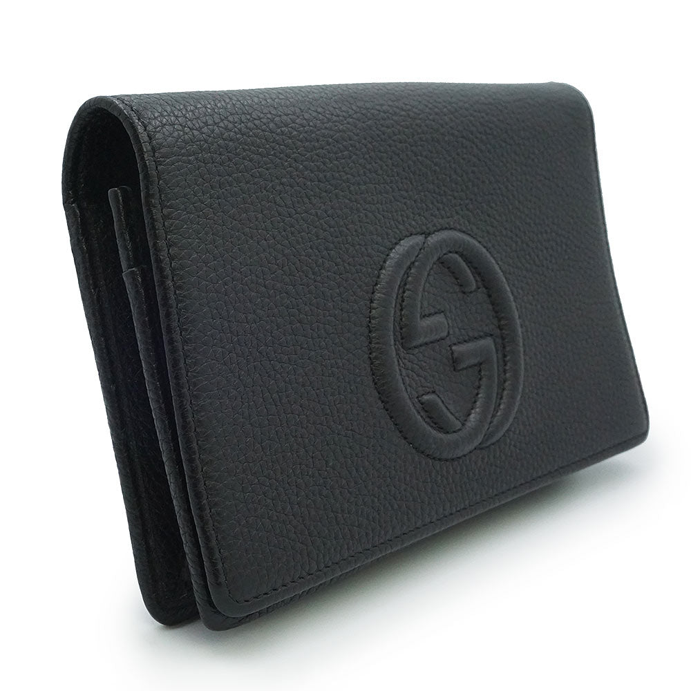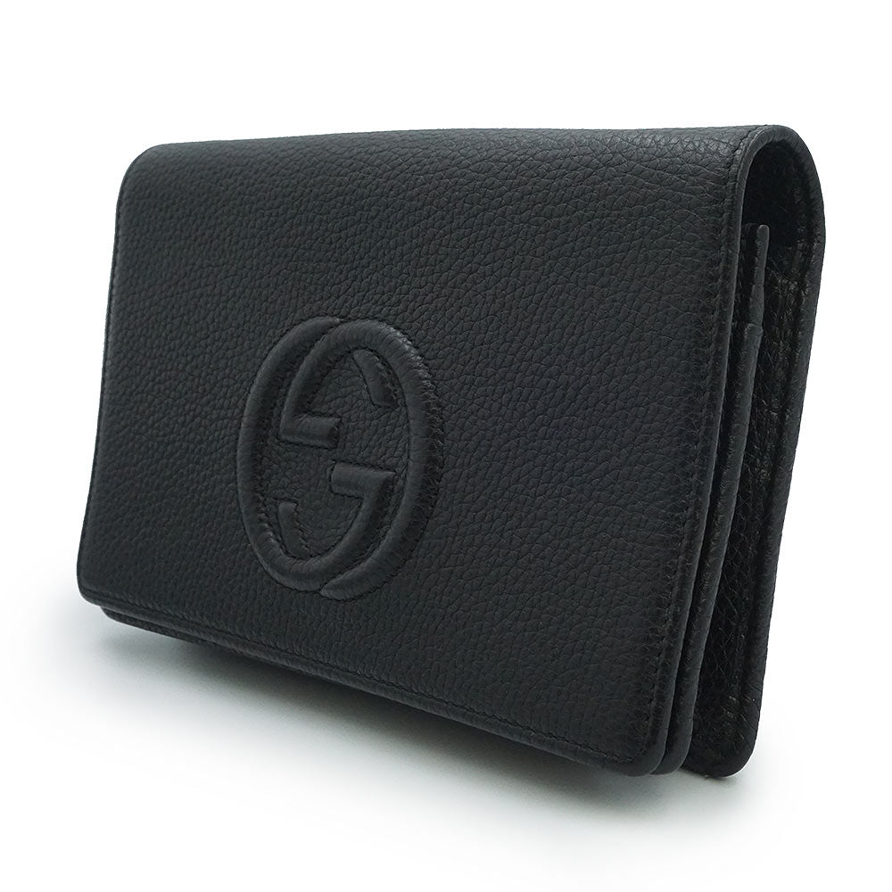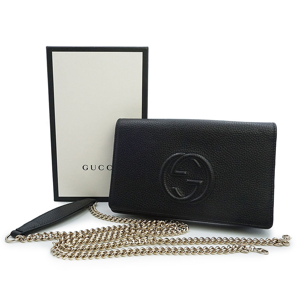 【未使用 展示品】GUCCI グッチ 598211 ソーホー インターロッキングG カーフスキン ブラック チェーンウォレット 長財布 ショルダーバッグ 斜め掛け レザー ゴールド金具 箱付
