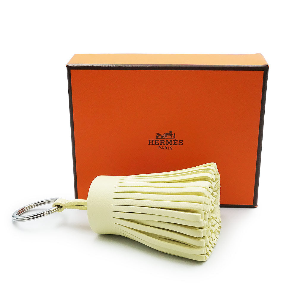 【新品・未使用品】HERMES エルメス カルメン アニューミロ ジョーヌミルトン イエロー W刻印 キーリング キーホルダー バッグチャーム ラムスキン レザー シルバー金具 箱付