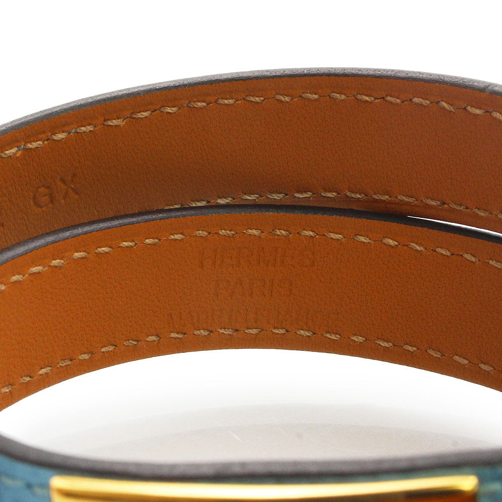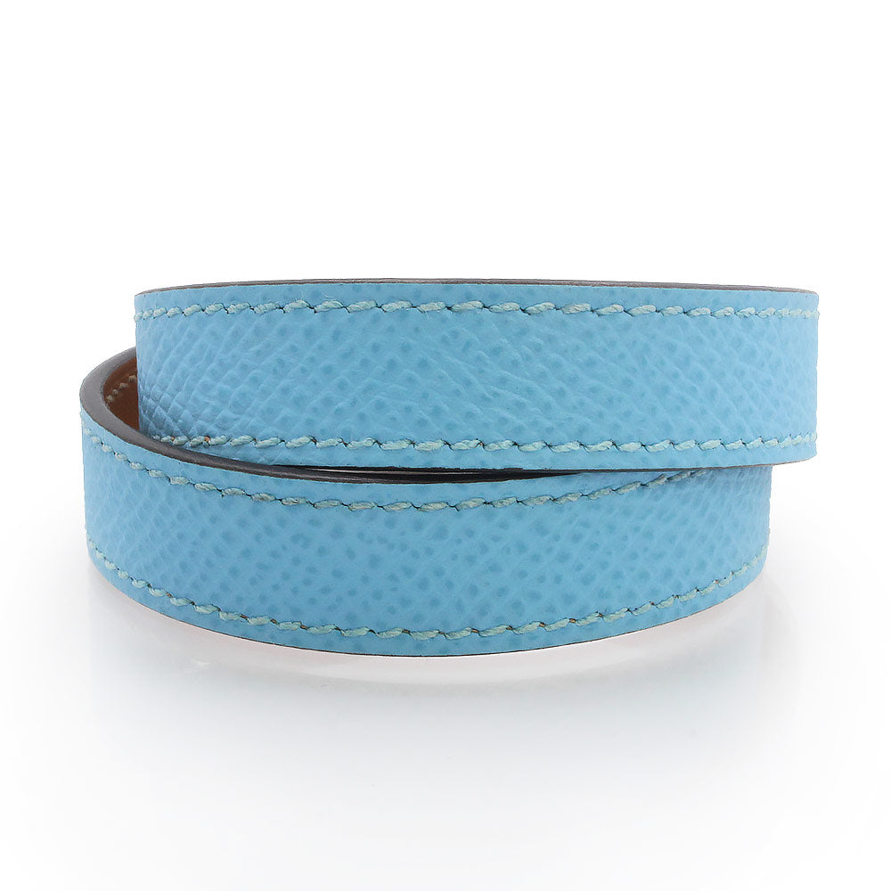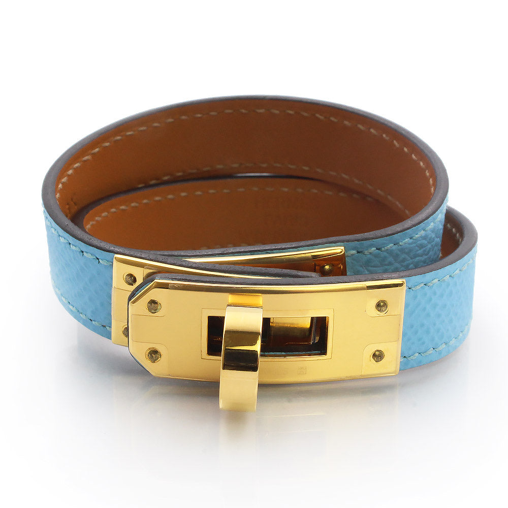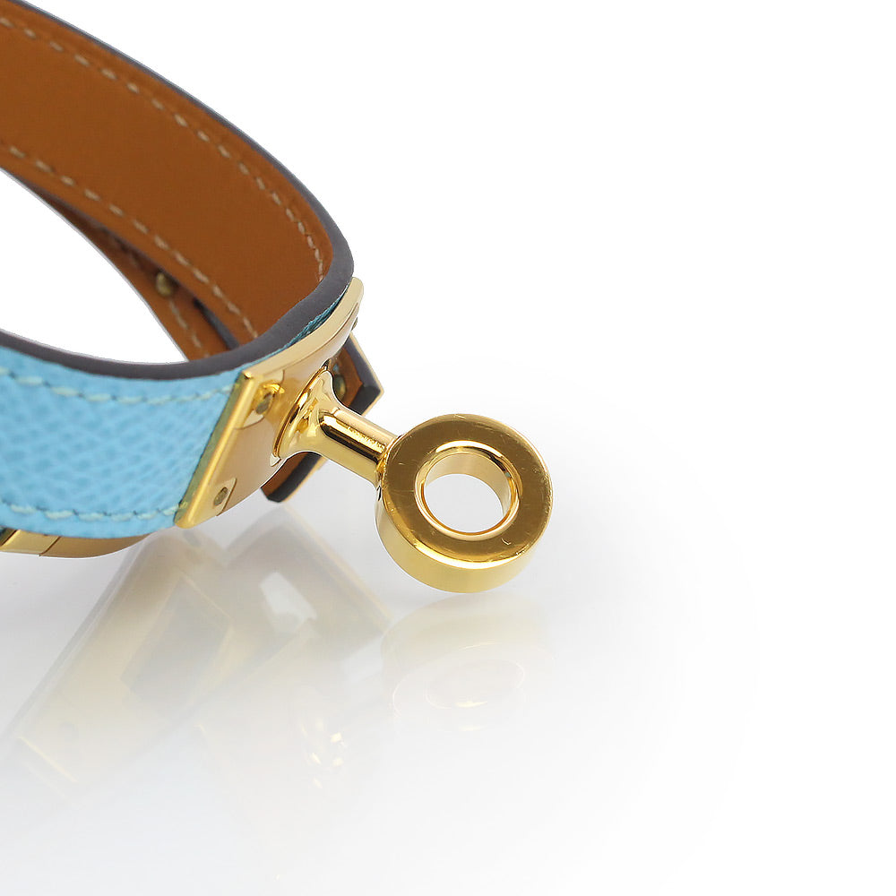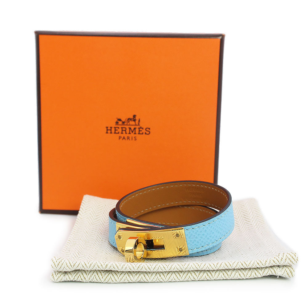【未使用 展示品】HERMES エルメス ケリー ドゥブルトゥール ヴォーエプソン セレスト セレステ ライトブルー U刻印 2連 ブレスレット #T1 レザー ゴールド金具 箱付