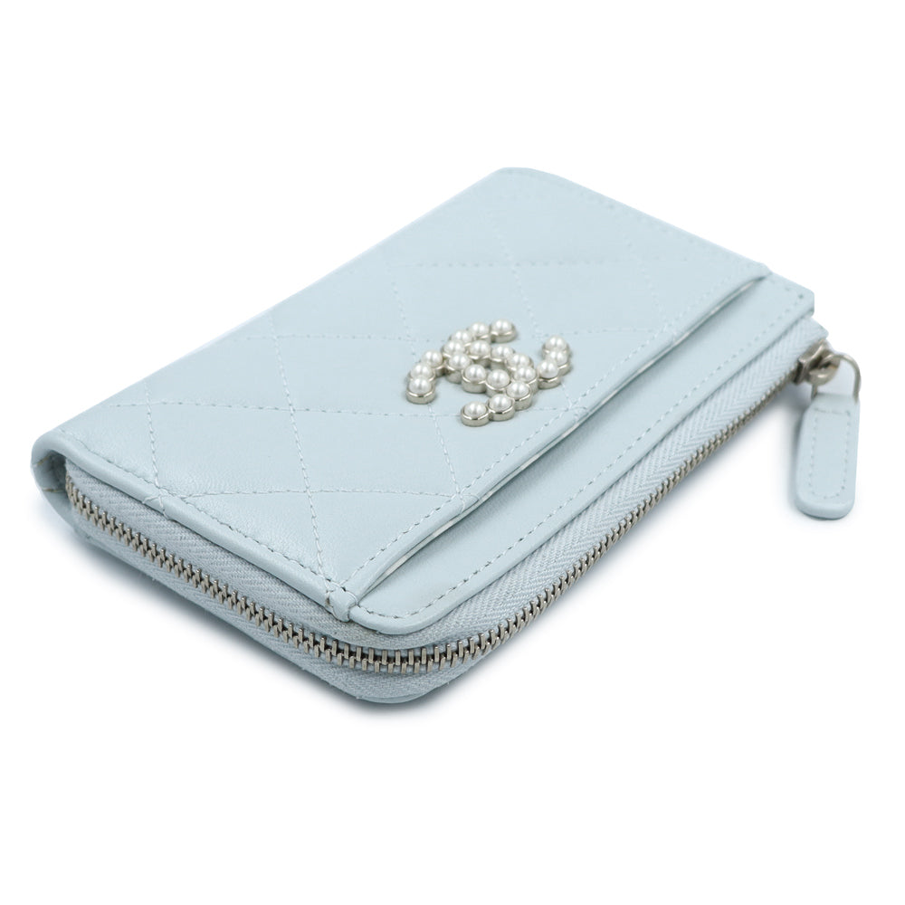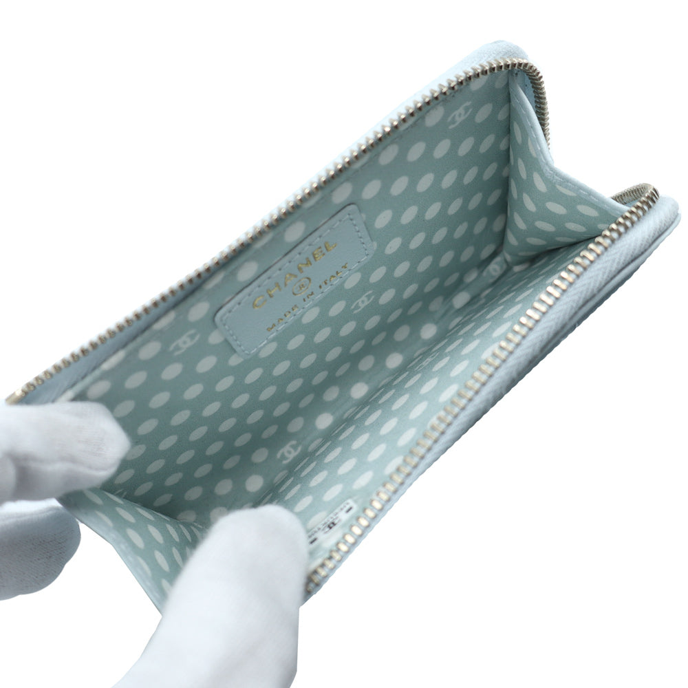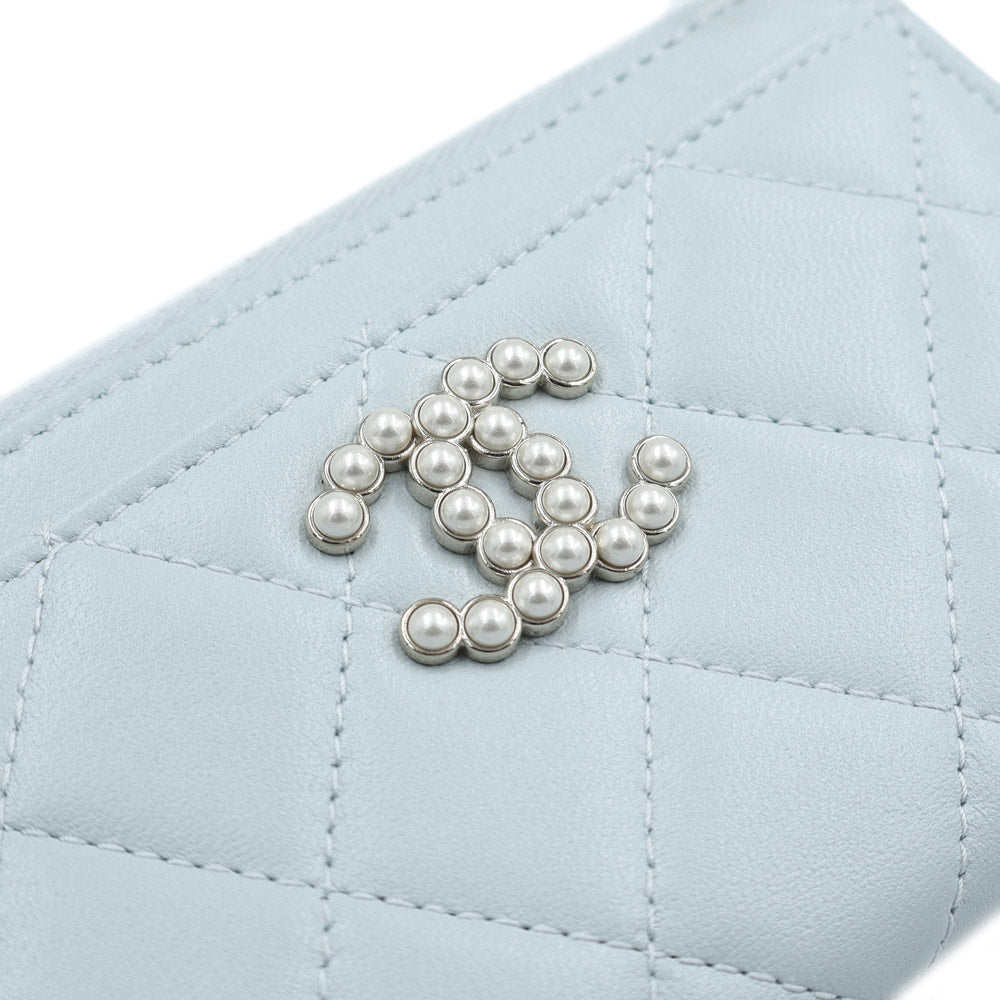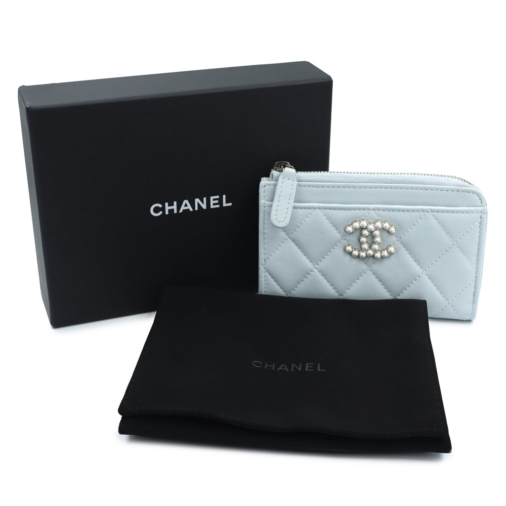 【新品・未使用品】CHANEL シャネル AP3816 マトラッセ ココマーク パール ラムスキン ライトブルー カードケース 名刺入れ 定期入れ パスケース レザー ゴールド金具 箱付