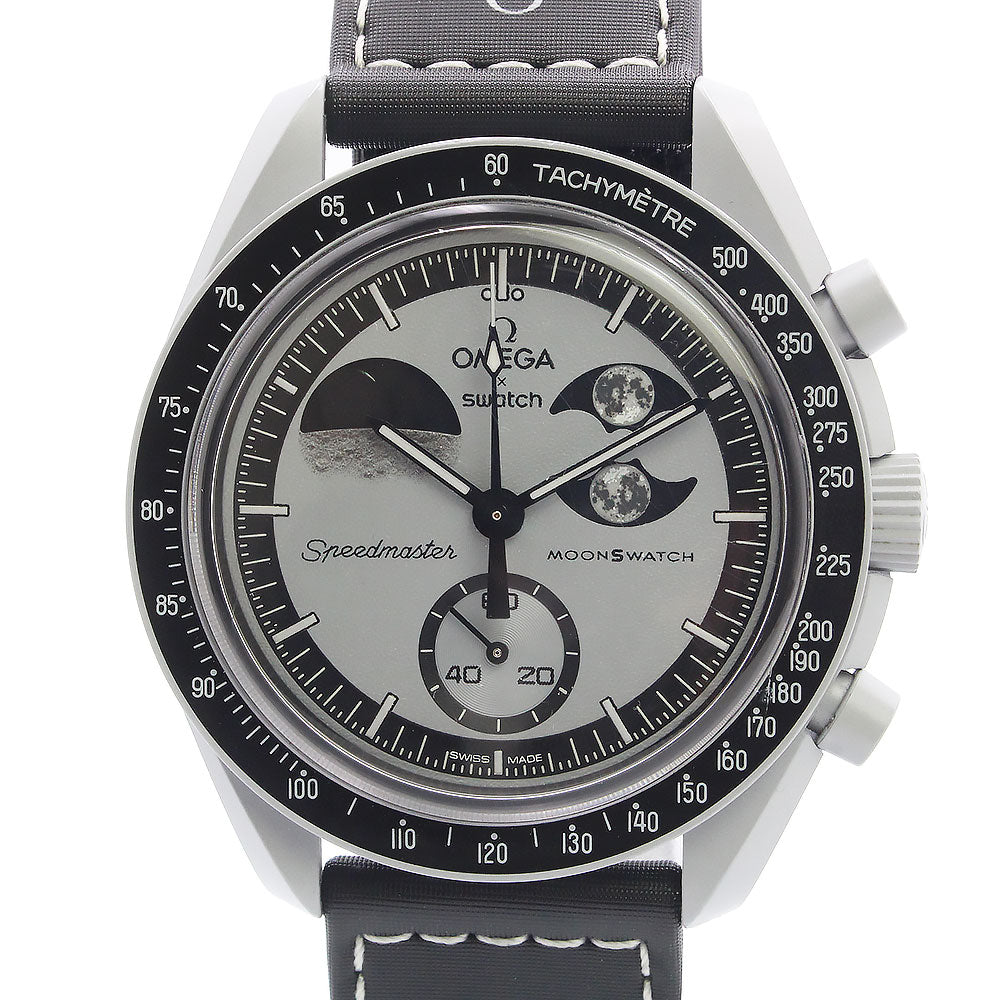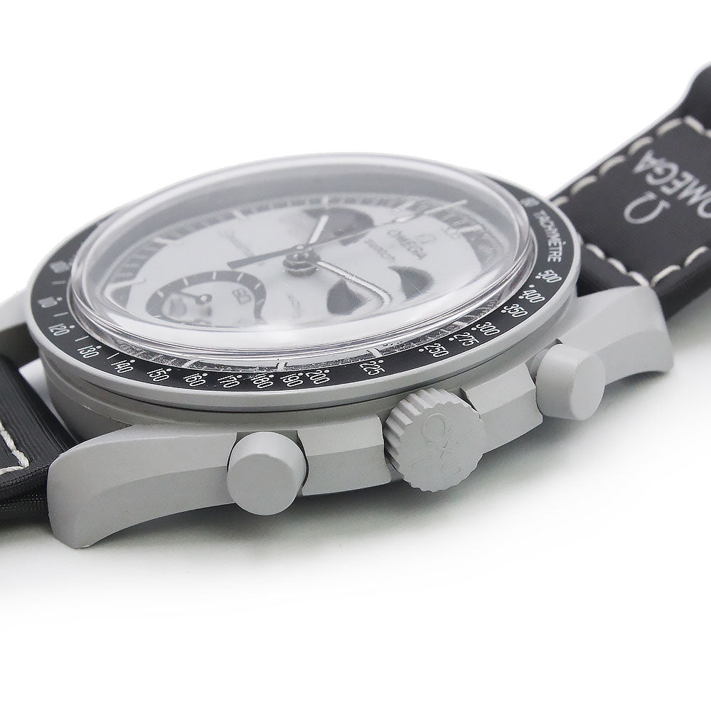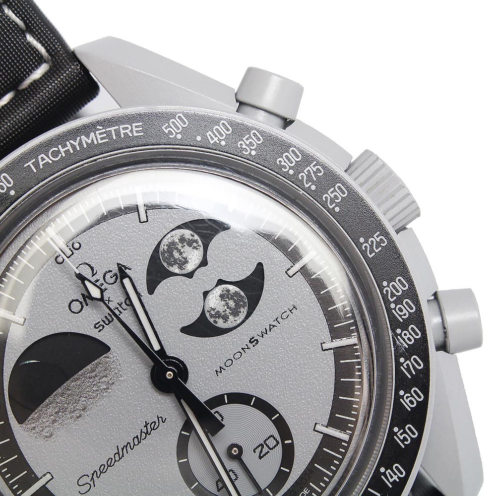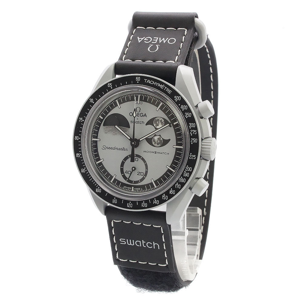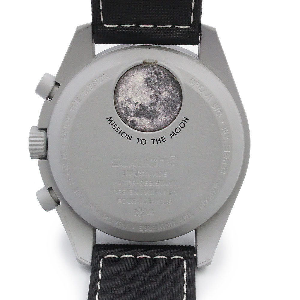 【美品】OMEGA オメガ Swatch スウォッチ SO33M700 ミッション トゥ アースフェイズ MISSION TO EARTHPHASE スピードマスター ムーンスウォッチ クロノグラフ クオーツ ナイロン バイオセラミック ライトグレー ブラック 腕時計 箱付