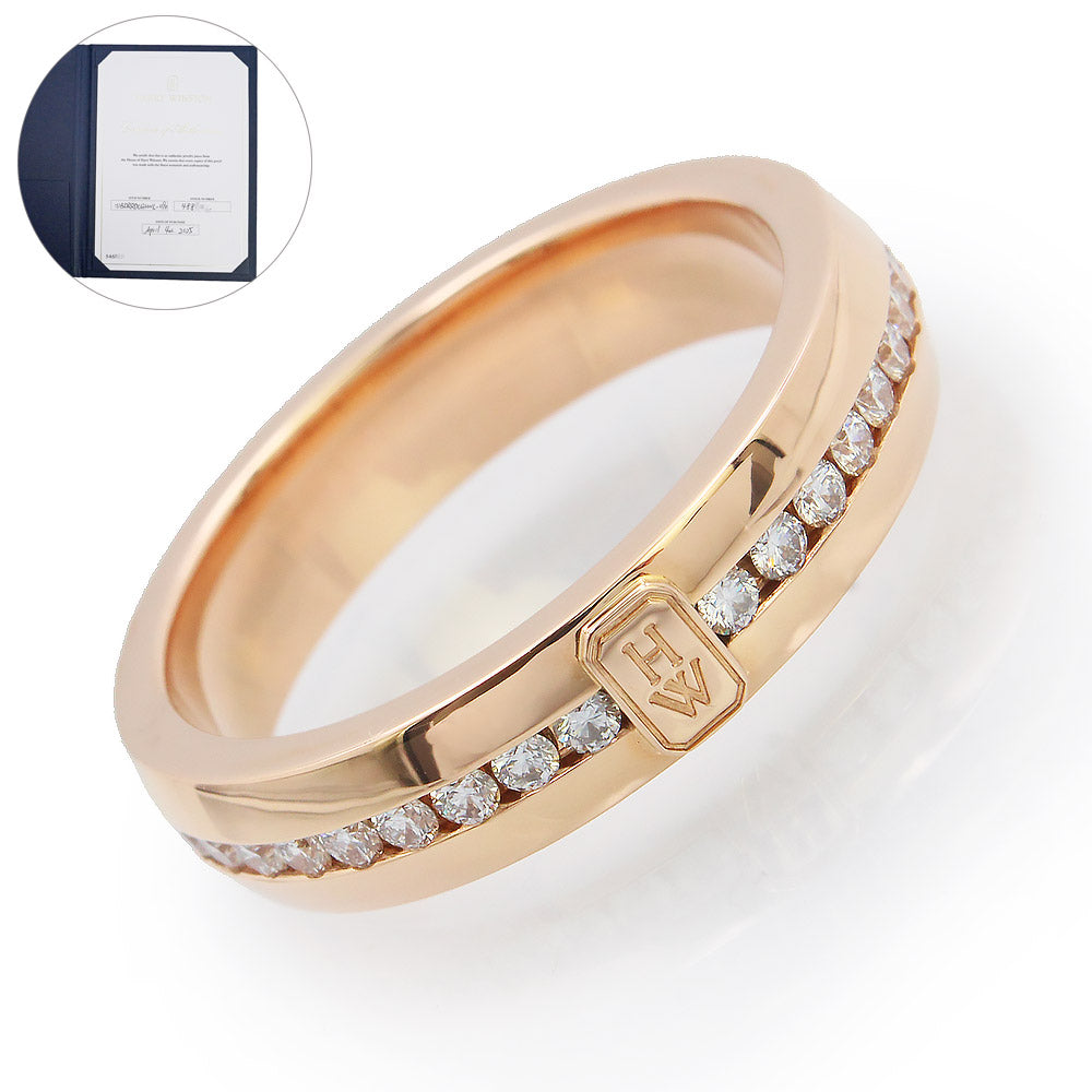 【美品】HARRY WINSTON ハリーウィンストン WBDRRDLGHWL HWロゴ K18RG 750 ダイヤモンド ローズゴールド リング 指輪 #18.5号 保証書付