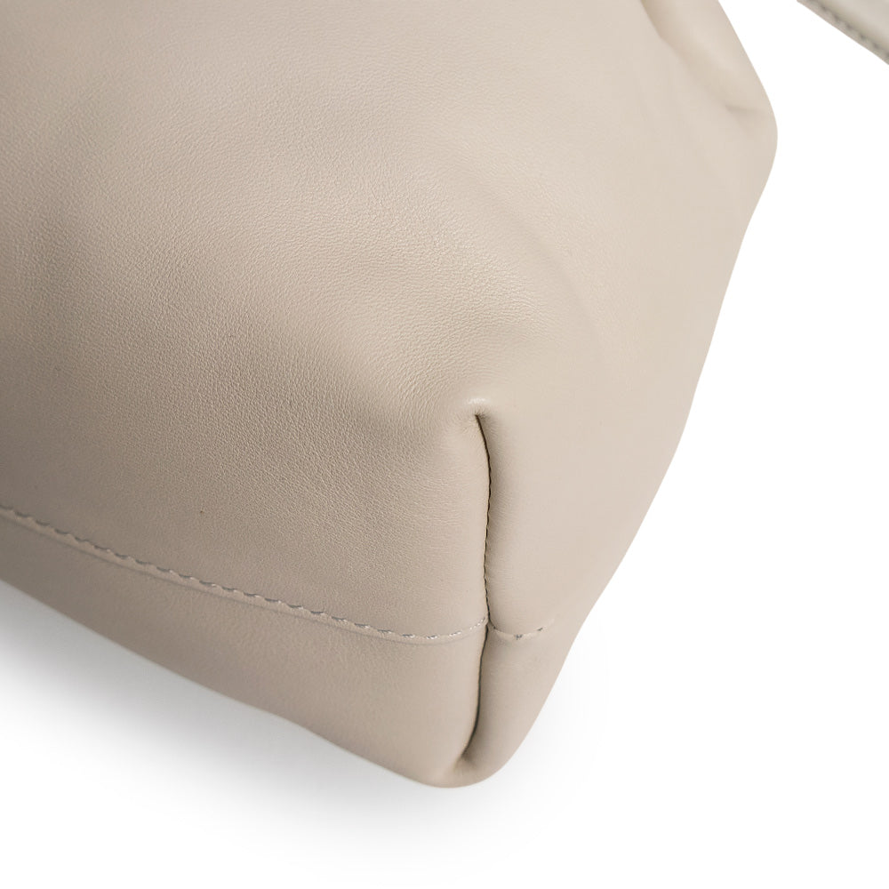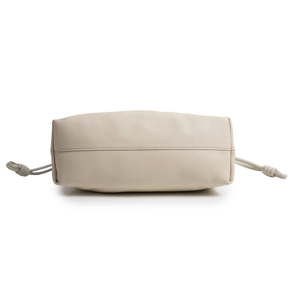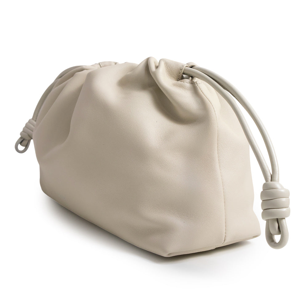 フラメンコパースはドレープしたボディとサイドにあしらわれたシグネチャーの結び目とドーナツチェーンが特徴です。本製品はメローナパラムスキンが採用されたミディアムサイズです。 |