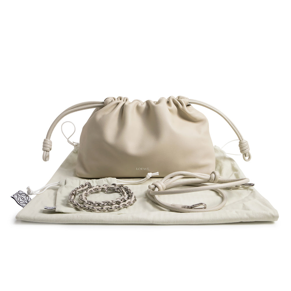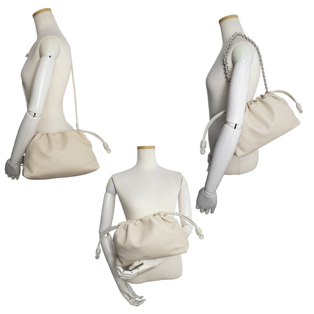 【新品・未使用品】LOEWE ロエベ A411FCRX02 フラメンコパース メローナパラム シーソルト オフホワイト 3way チェーン ショルダー クラッチバッグ 斜め掛け レザー シルバー金具