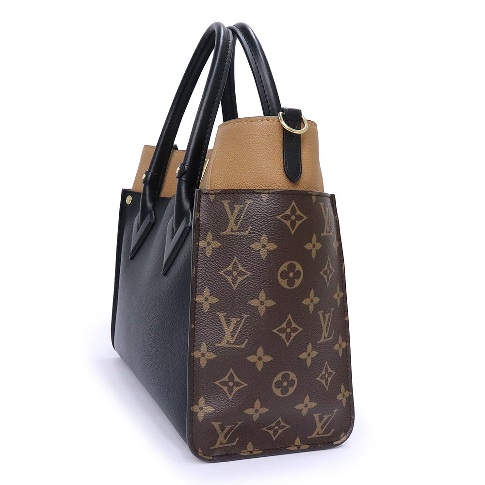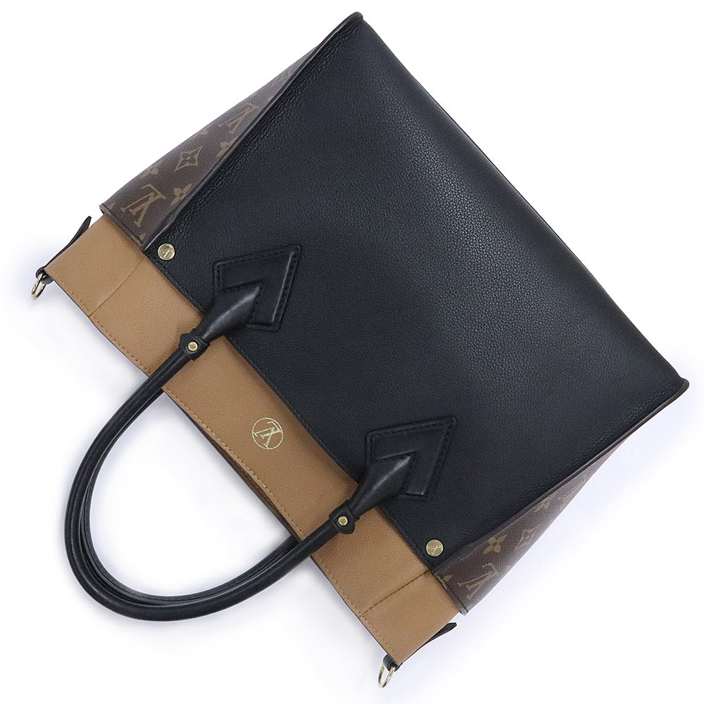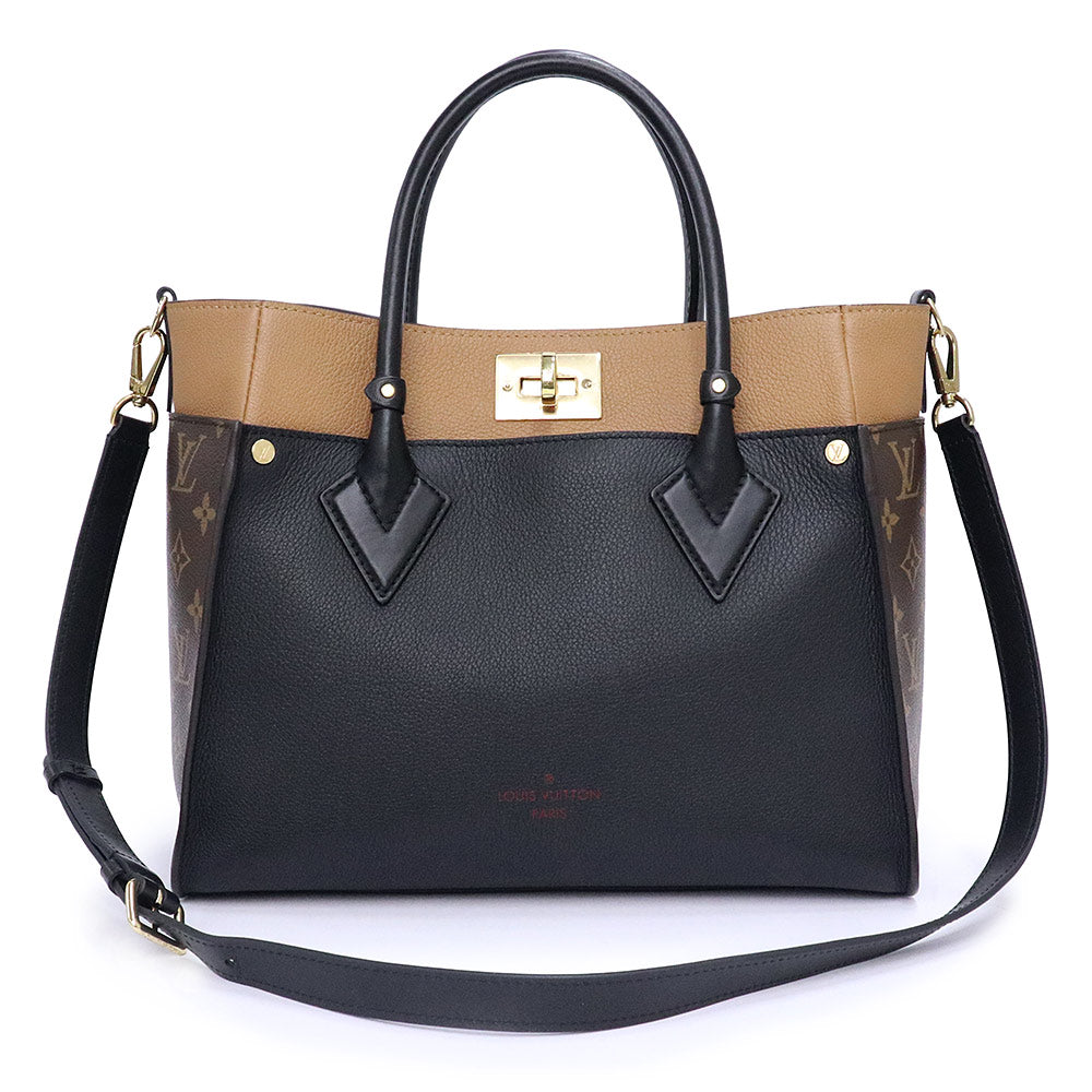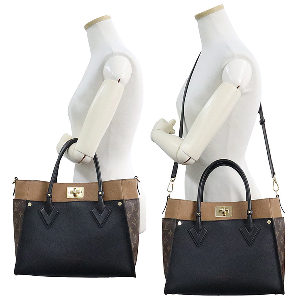 【美品】LOUIS VUITTON ルイ ヴィトン M53823 オンマイサイド MM グレインカーフレザー モノグラム ノワール ブラック 2way ショルダー ハンドバッグ 斜め掛け ゴールド金具