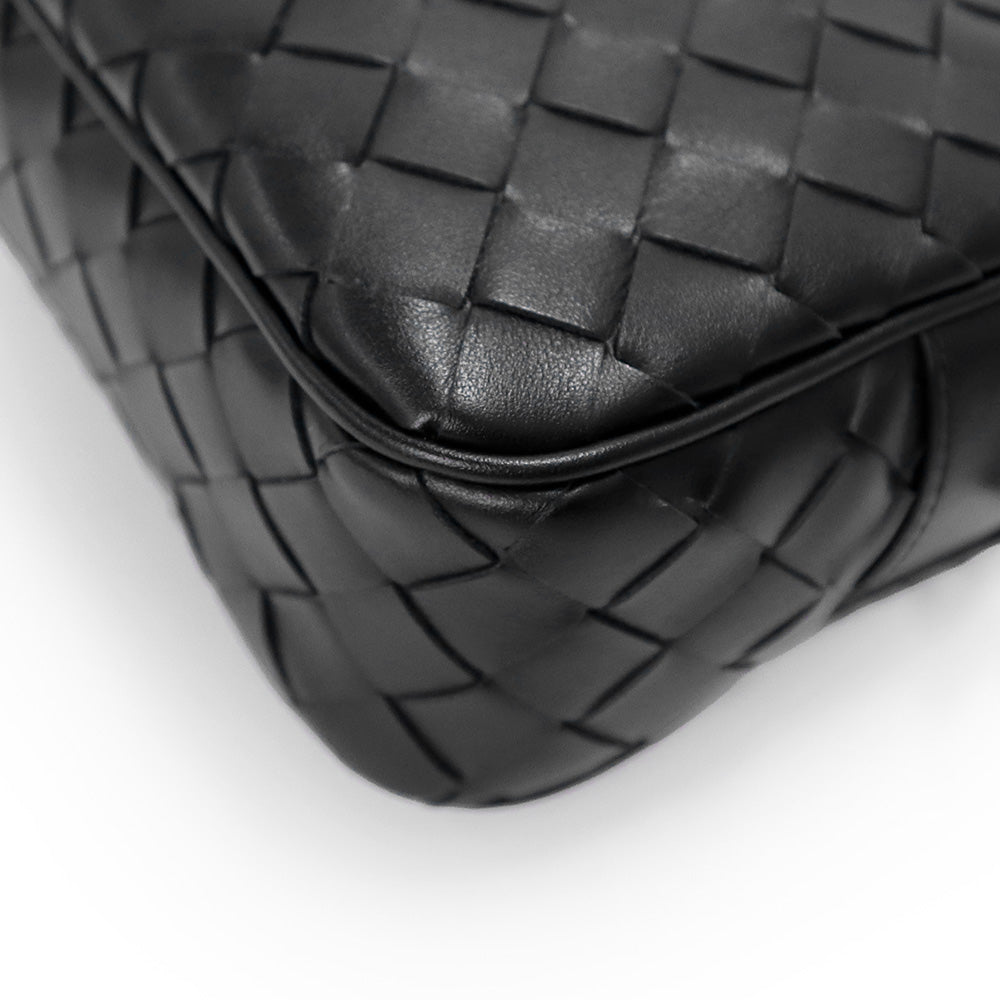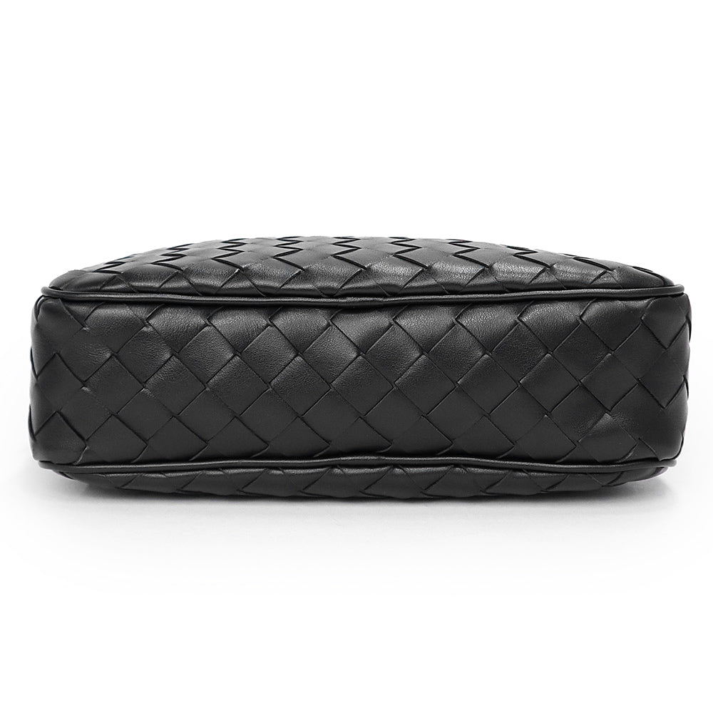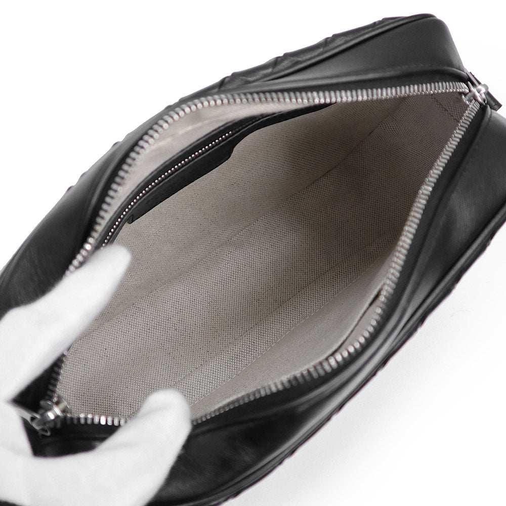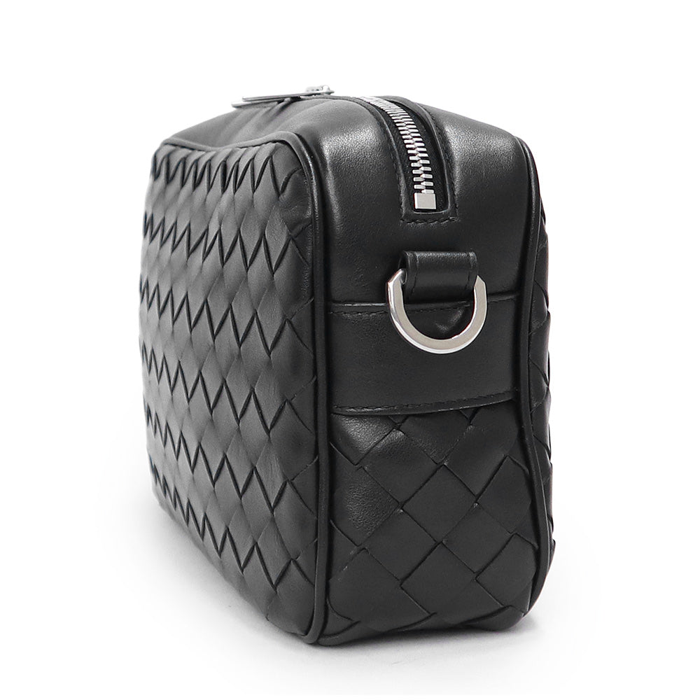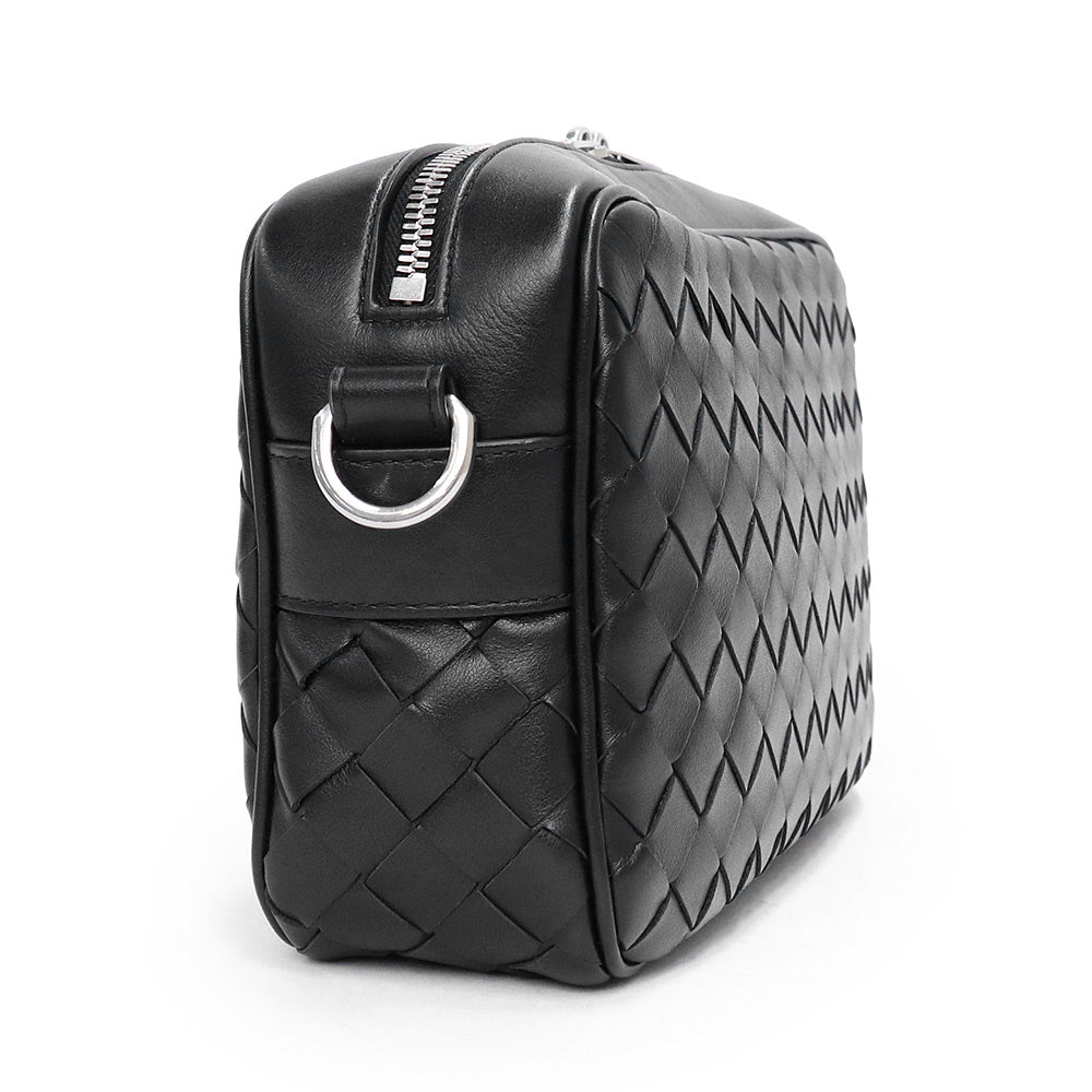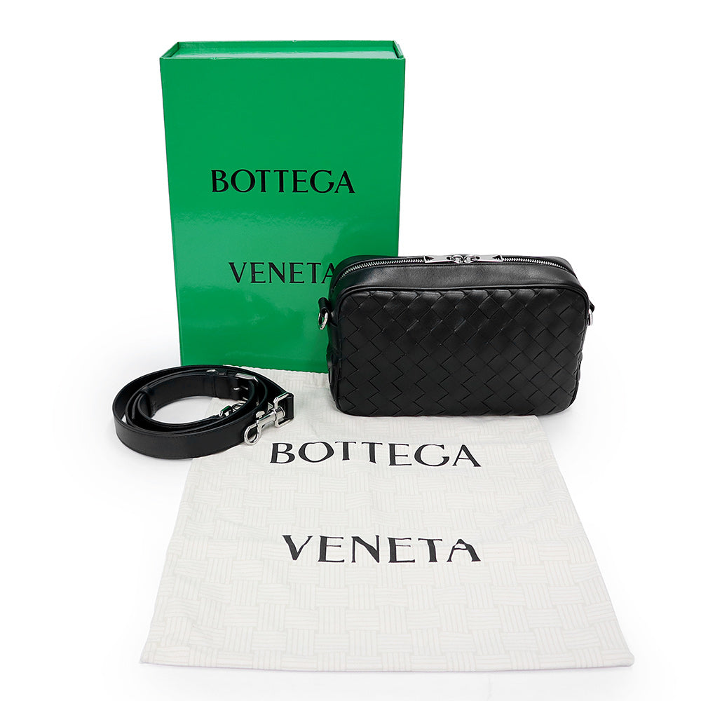 【未使用 展示品】BOTTEGA VENETA ボッテガヴェネタ 755923 スモール イントレチャート カメラバッグ カーフスキン ブラック ショルダーバッグ 斜め掛け レザー シルバー金具 箱付