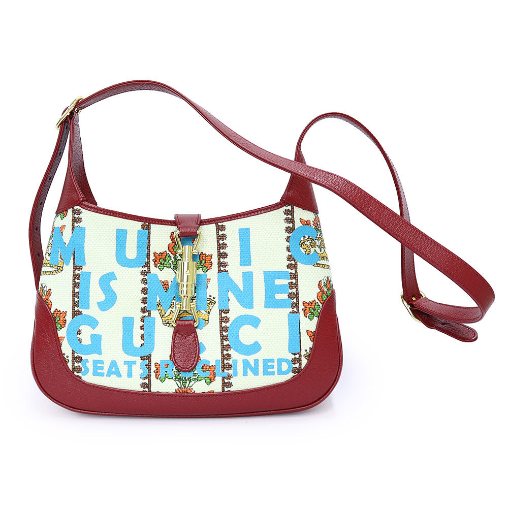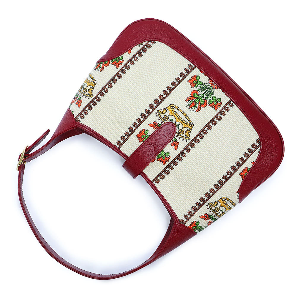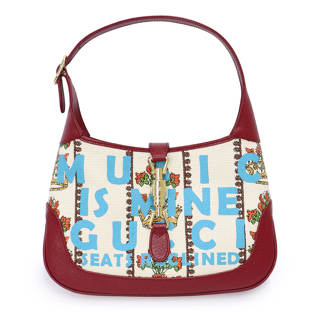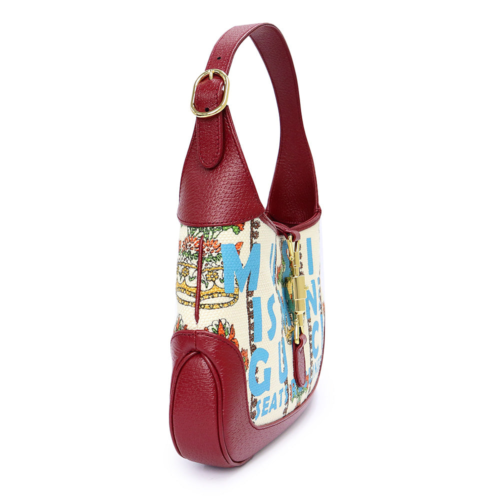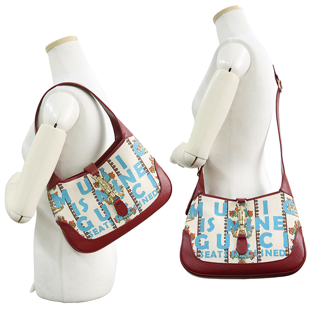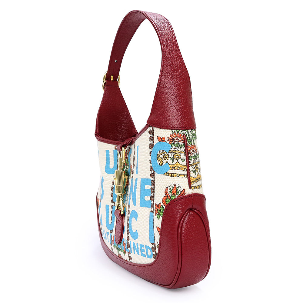 【未使用 展示品】GUCCI グッチ 636706 ジャッキー 1961 100周年記念 レザー トリム クラウン ジャカード レッド アイボリー フラワー ショルダー ハンドバッグ 2way 斜め掛け ゴールド金具