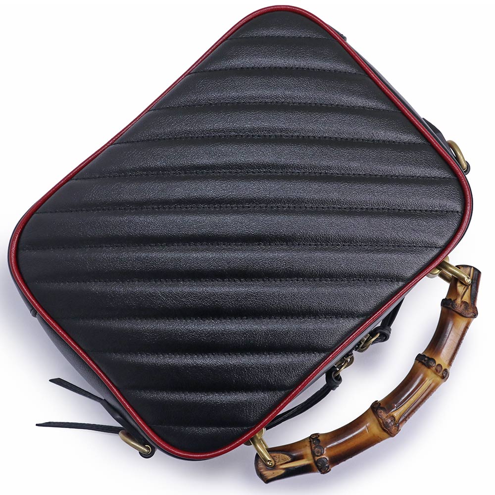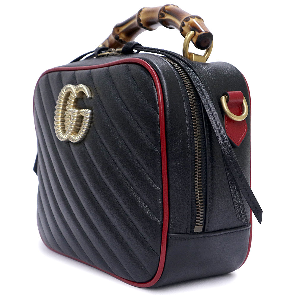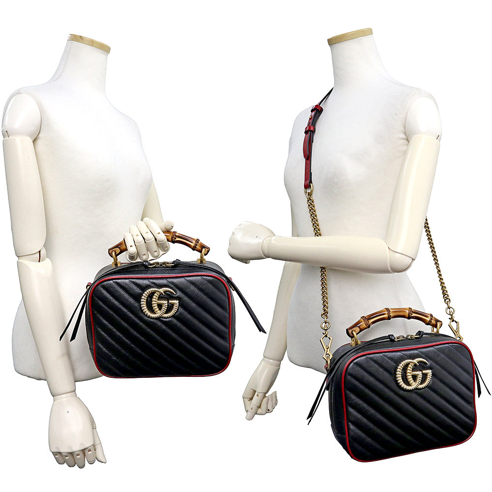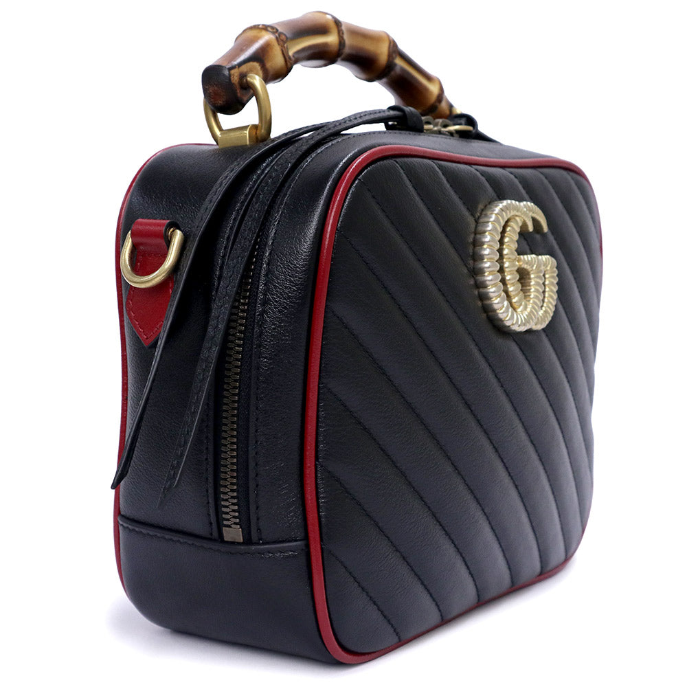 【未使用 展示品】GUCCI グッチ 602270 GGマーモント バンブー レザー ブラック レッド 2way 斜め掛け ショルダー ハンドバッグ アンティークゴールド金具