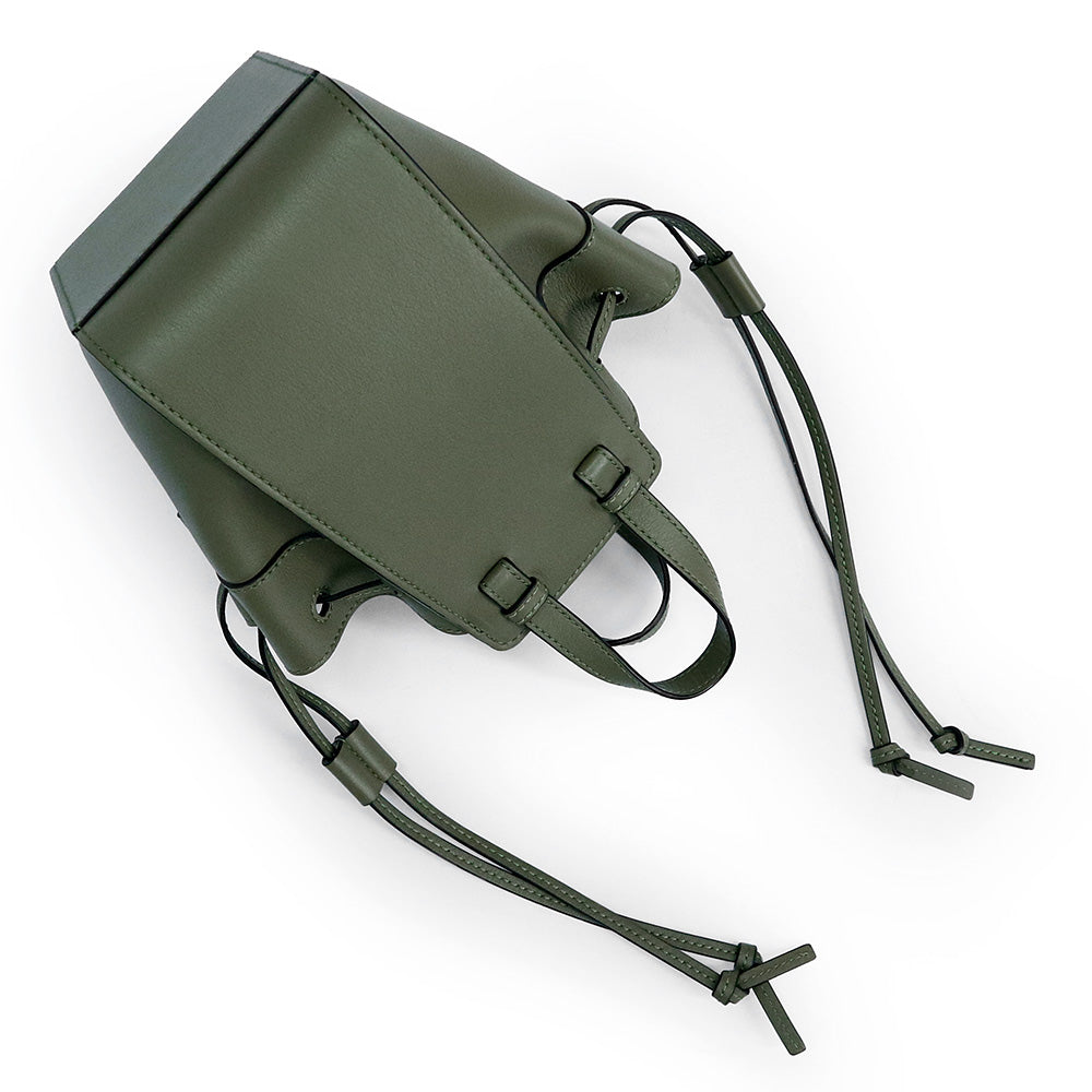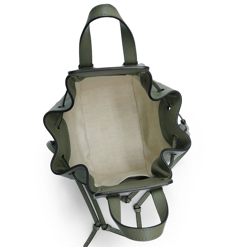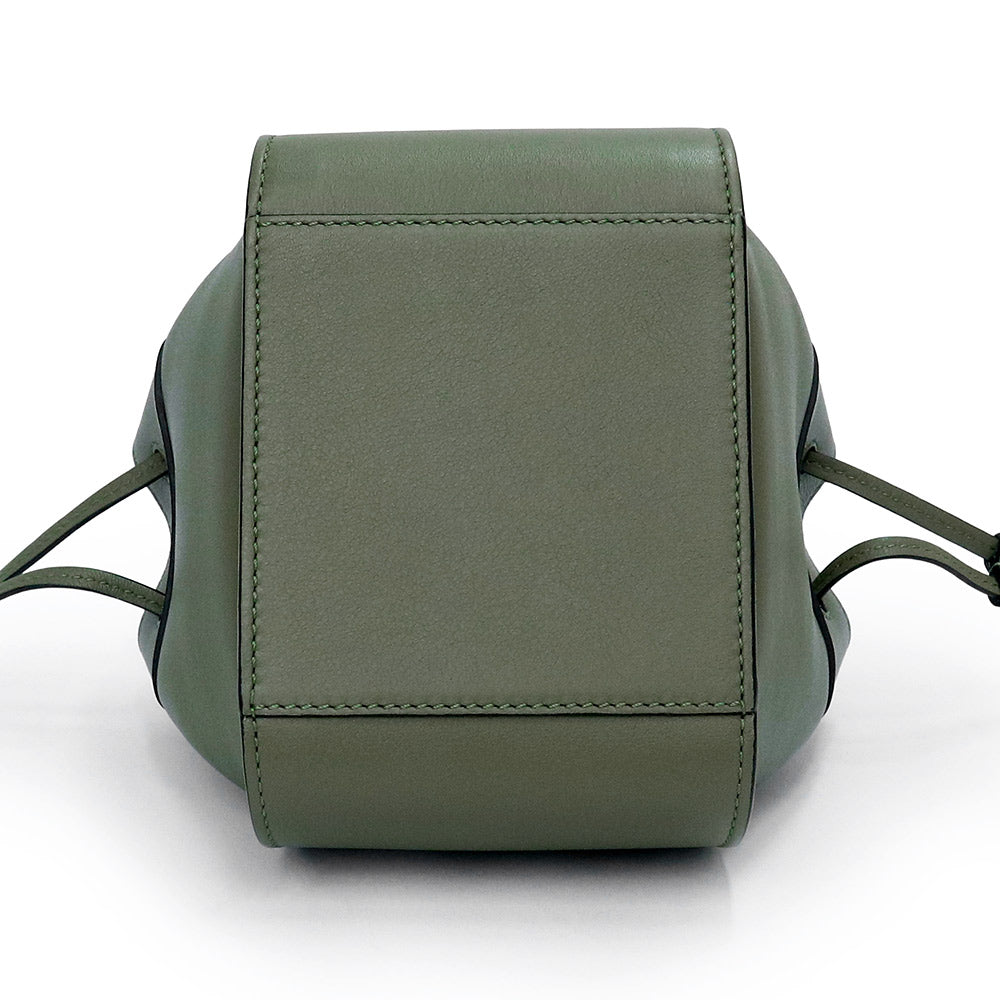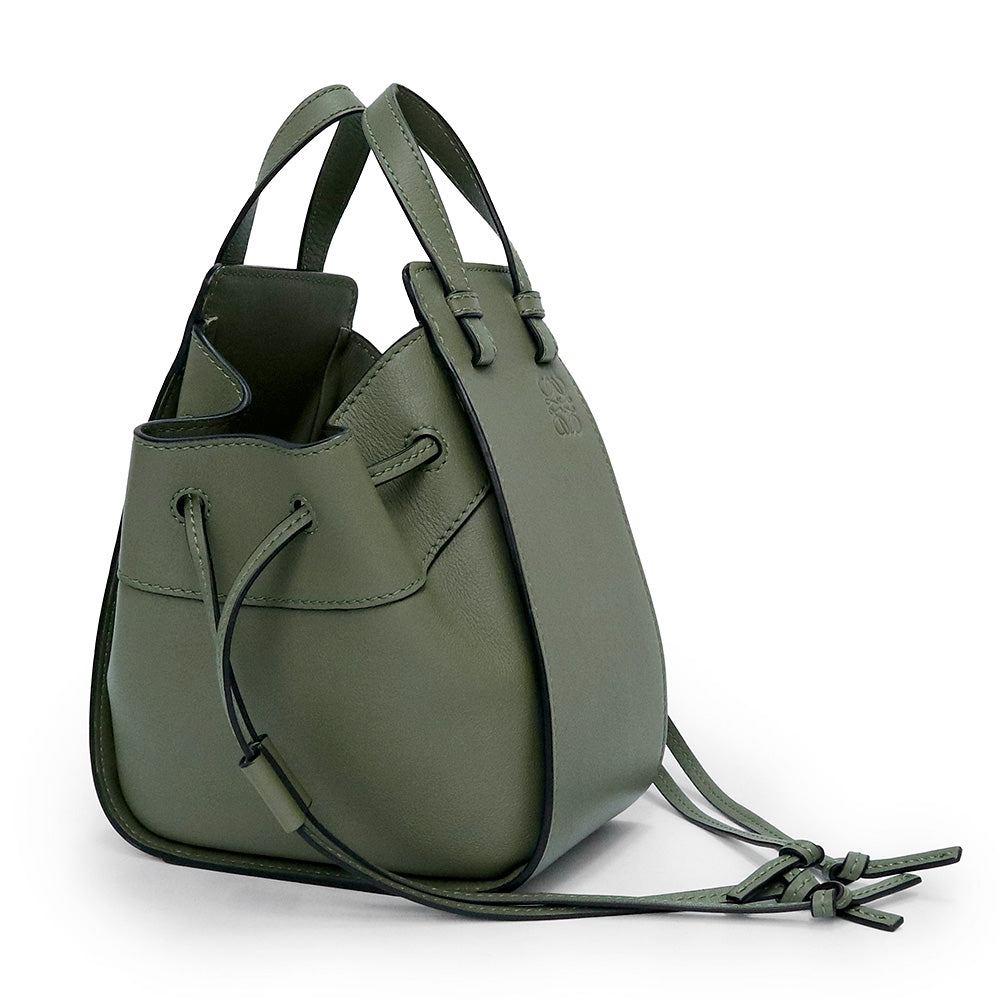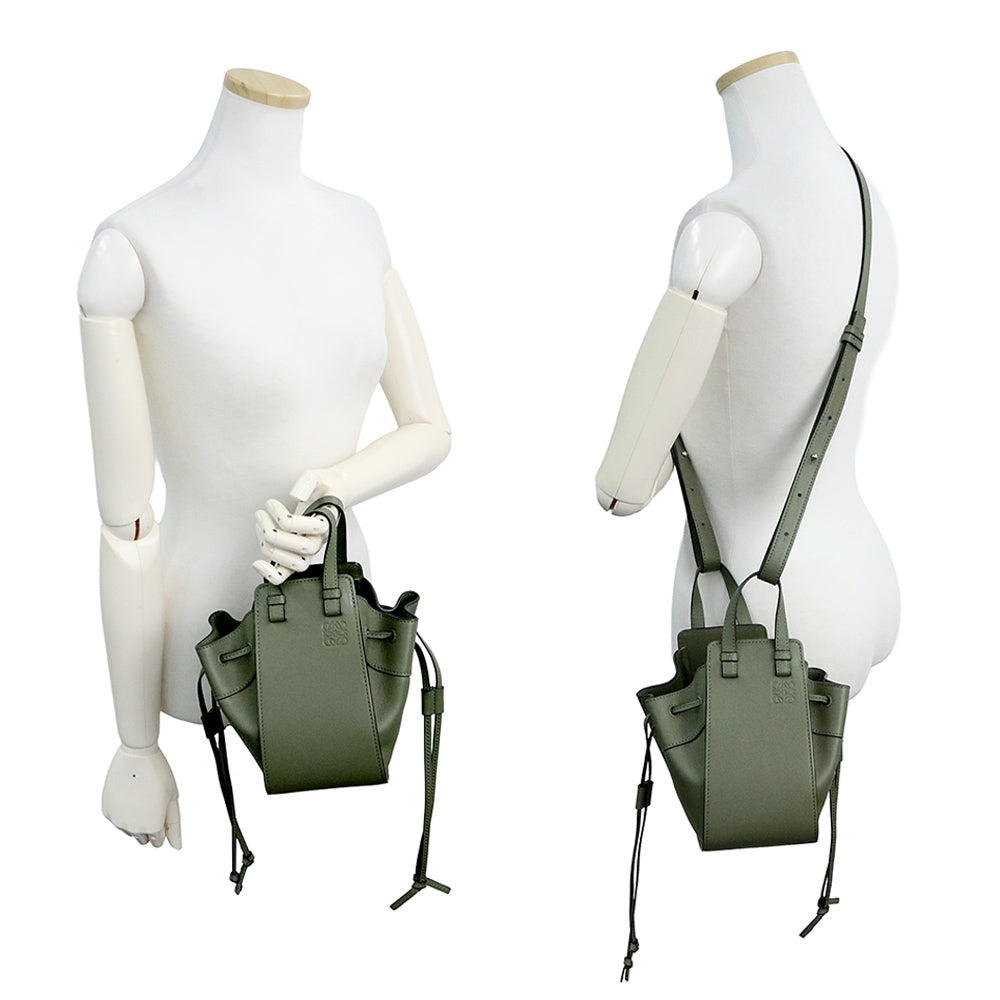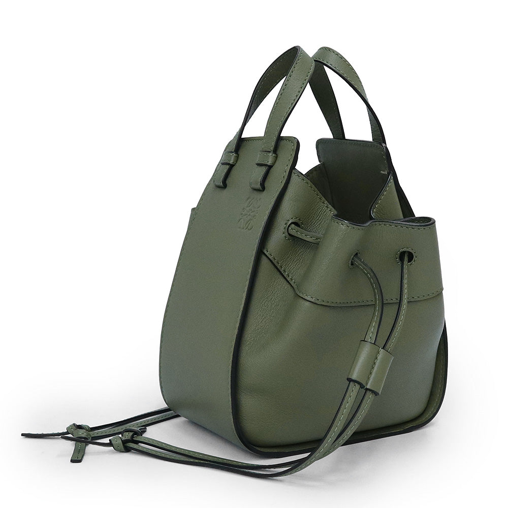 【美品】LOEWE ロエベ 314.30.V07 ハンモック ドローストリング ミニ カーフスキン アボカド グリーン 2way ショルダー ハンドバッグ 斜め掛け レザー シルバー金具