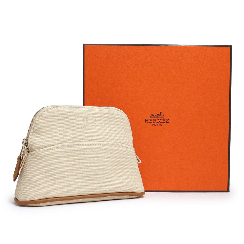 【新品・未使用品】HERMES エルメス ボリード 16 ミニミニ コットン100% キャンバス ナチュラル ベージュ 化粧 コスメ ポーチ シルバー金具 箱付