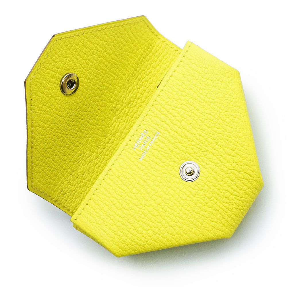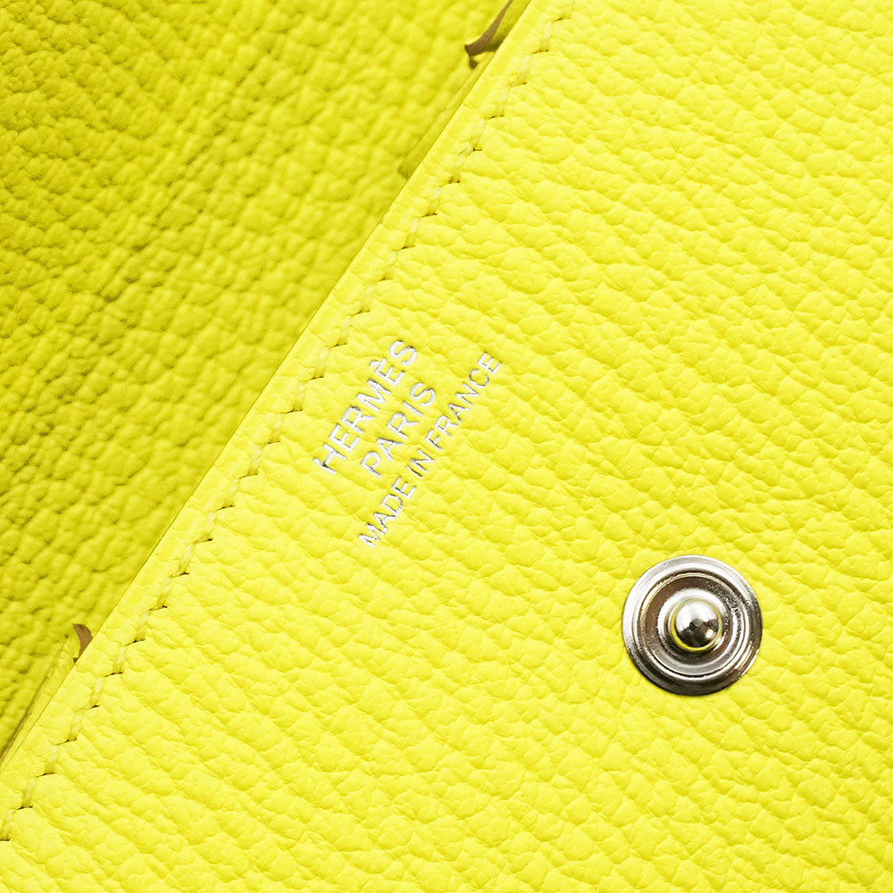 【新品・未使用品】HERMES エルメス ル ヴァンキャトル 24 シェーブルミゾール ライム イエロー X刻印 コインケース 小銭入れ 財布 シェブル レザー シルバー金具 箱付